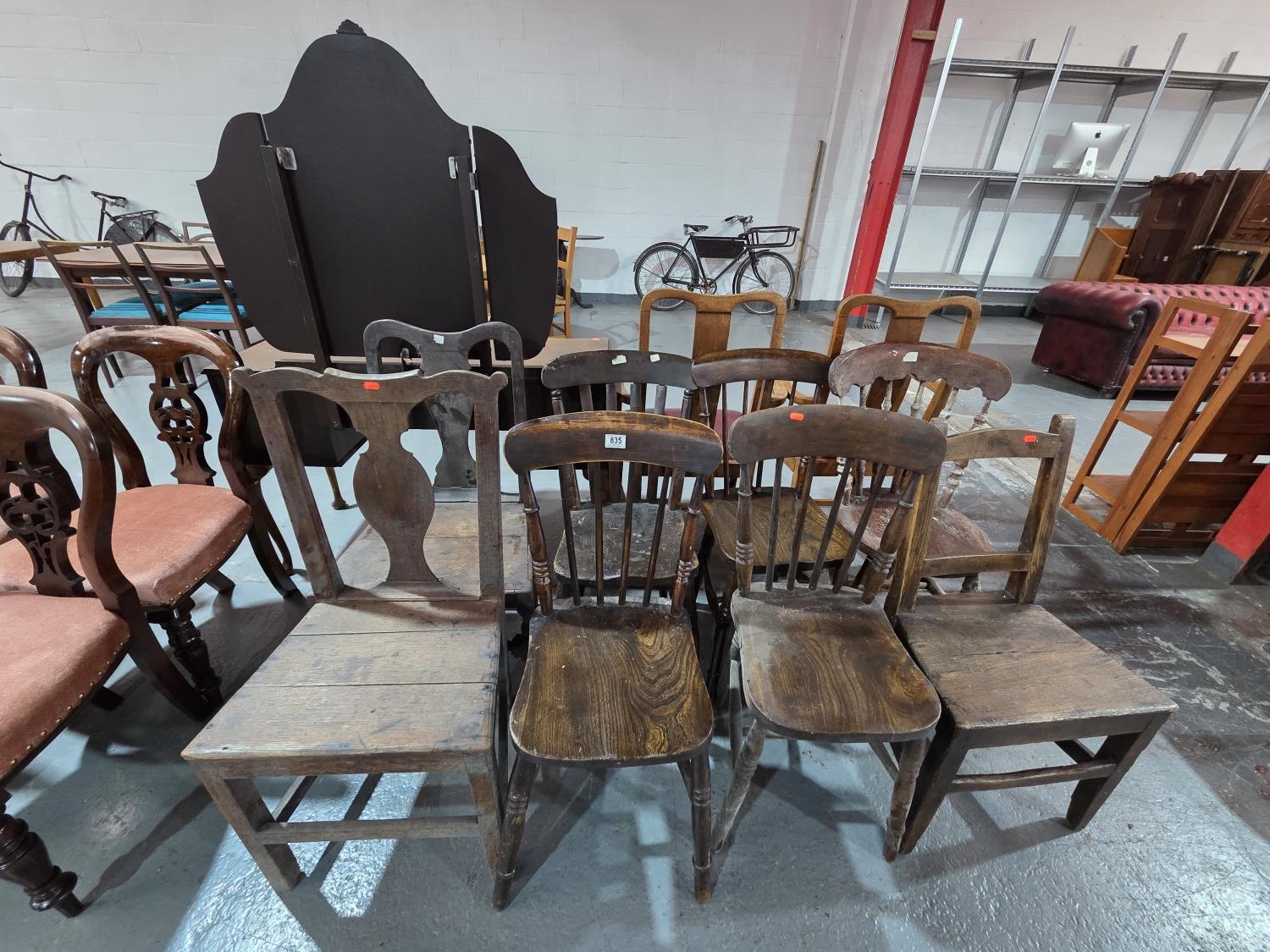 An assortment of oak chairs