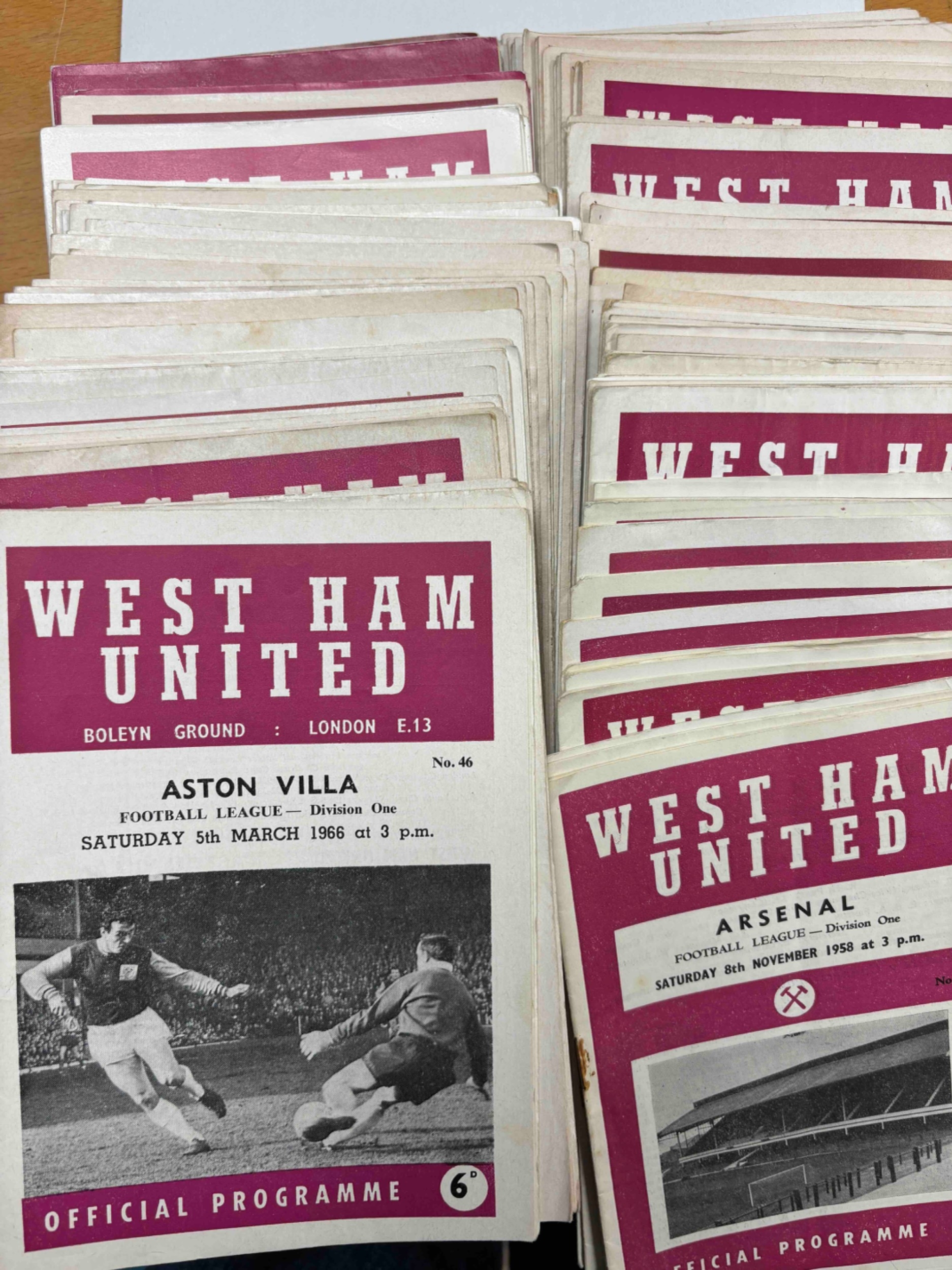 West Ham United x 178 home programmes. 1958 – 1969. 21 x 50s; 63 x 60/61 to 64/65; 94 x 65/66 to 69/70. Includes a few friendlies, European etc. None have writing on the cover. Only a few have neat writing inside. No tears. VG