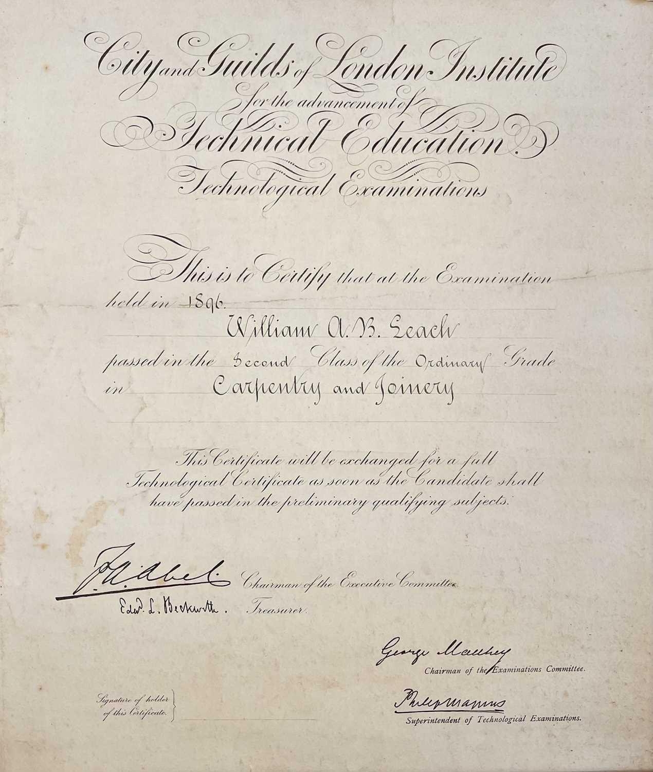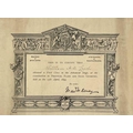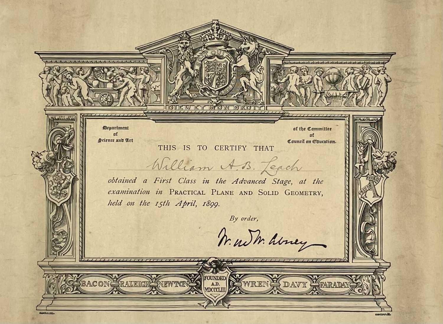 A Chinese silk embroidered parasol, early 20th century. And two certificates awarded to William Leach dated 1896 and 1899. (3)