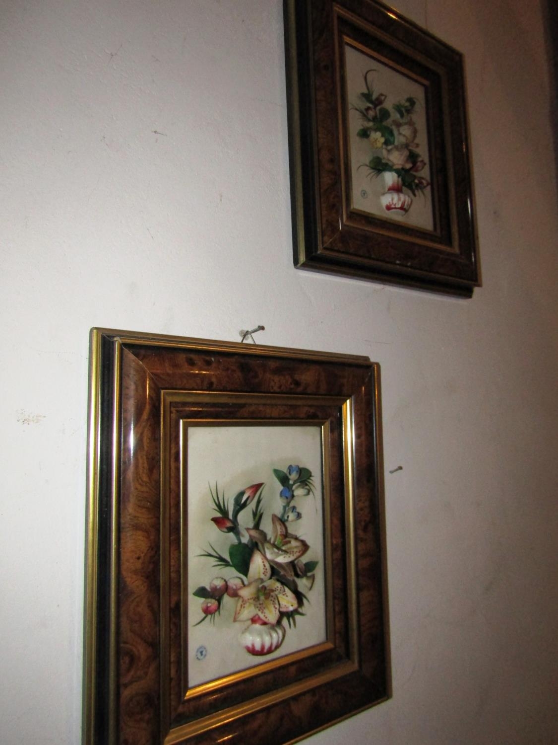 Pair of Full Relief Capo Di Monte Floral Scenes Each Approximately 12 Inches High x 9 Inches Wide Each Signed with Workshop Marks