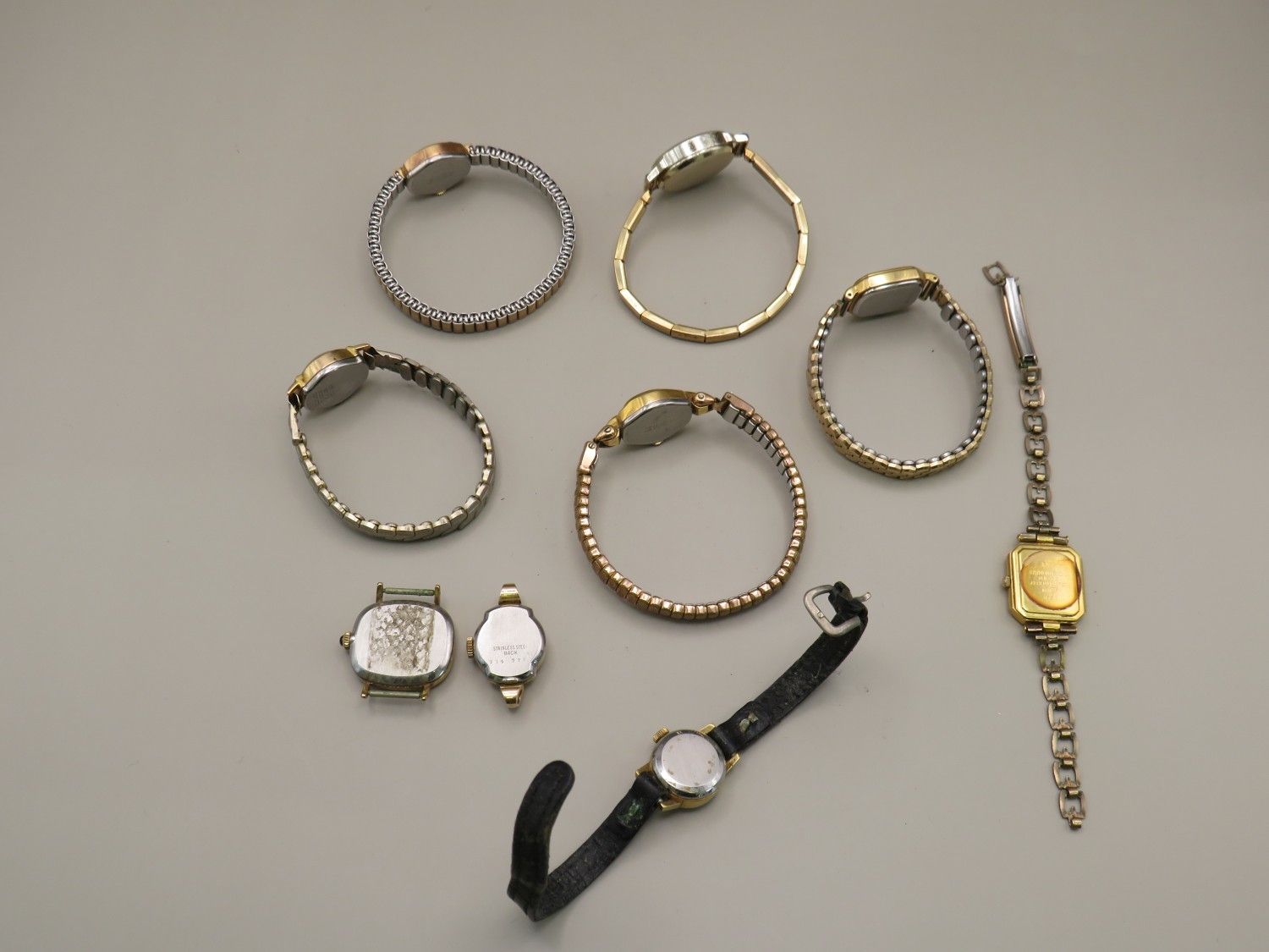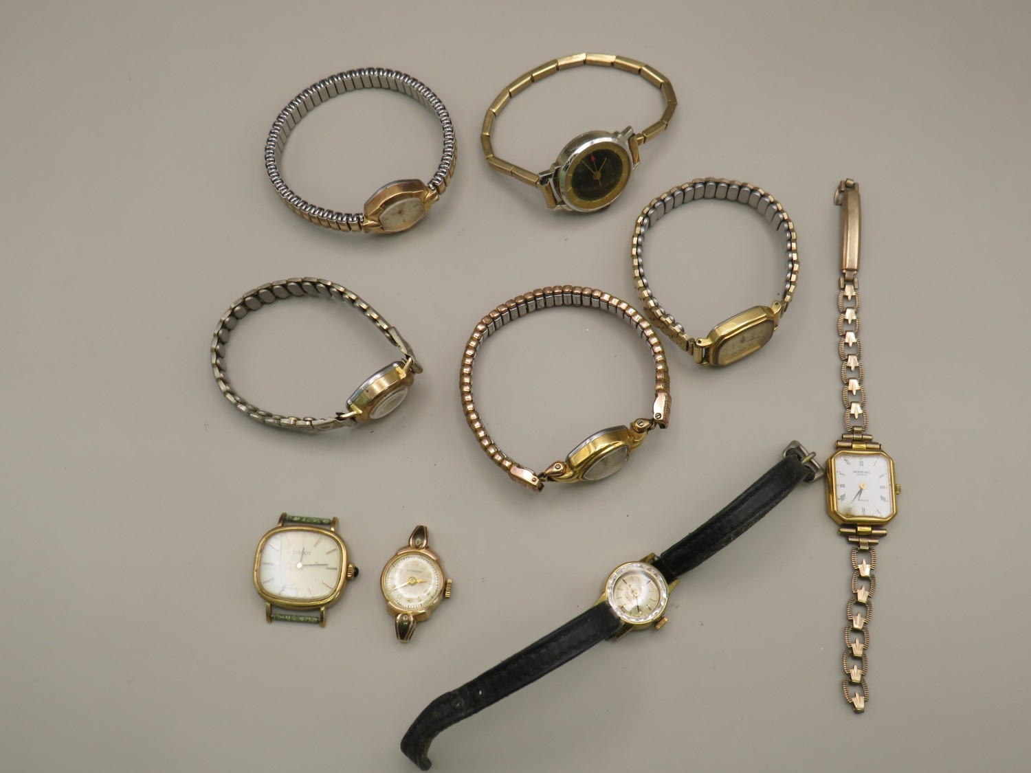 Sevn assorted vintage ladies watches and two vintage watch heads to include Tissot, Bucherer, Raymond Weil etc
