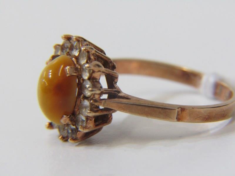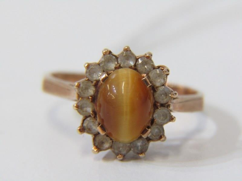 9ct YELLOW GOLD TIGER'S EYE RING, size L