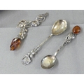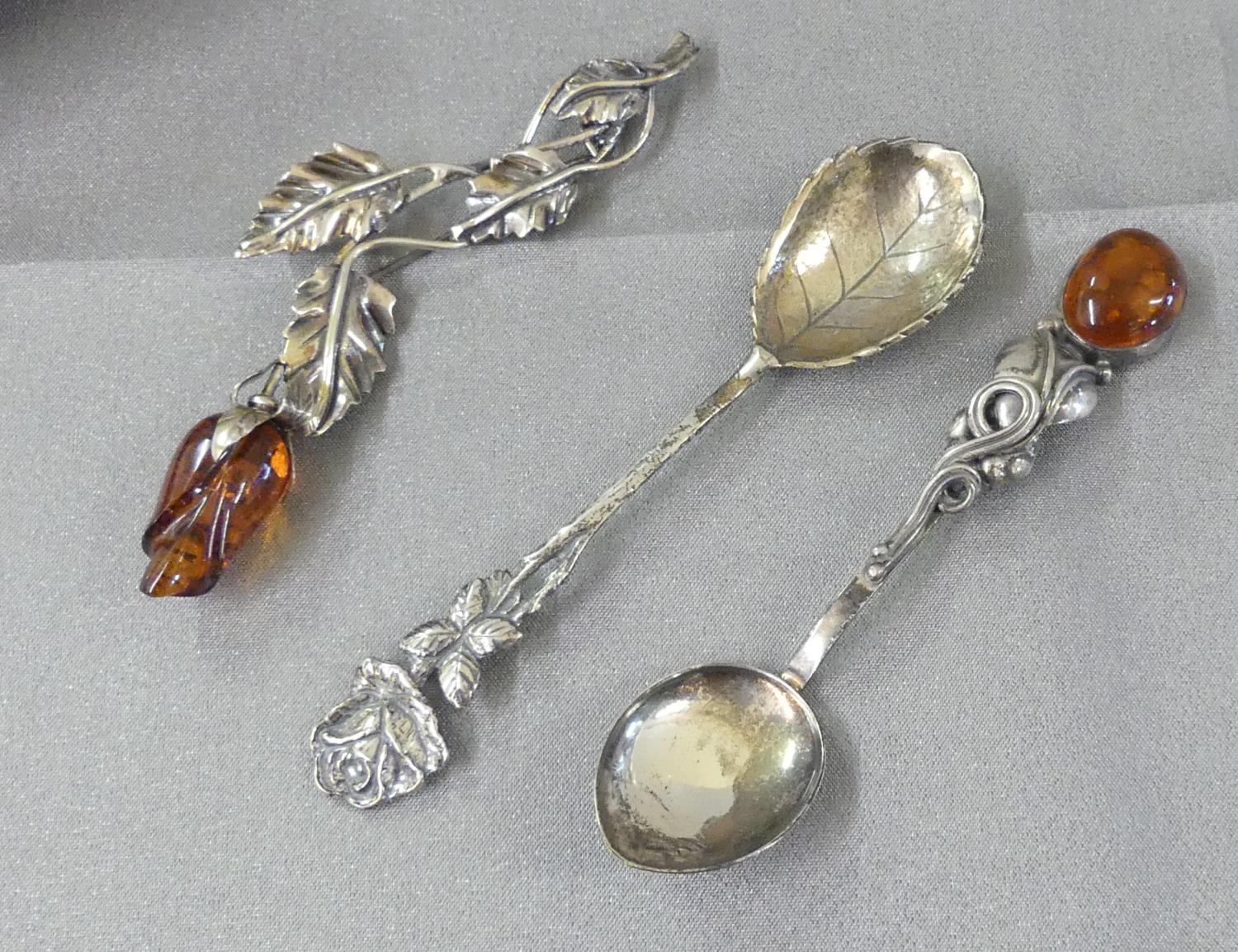 Amber Mounted Brooch & 2 Spoons