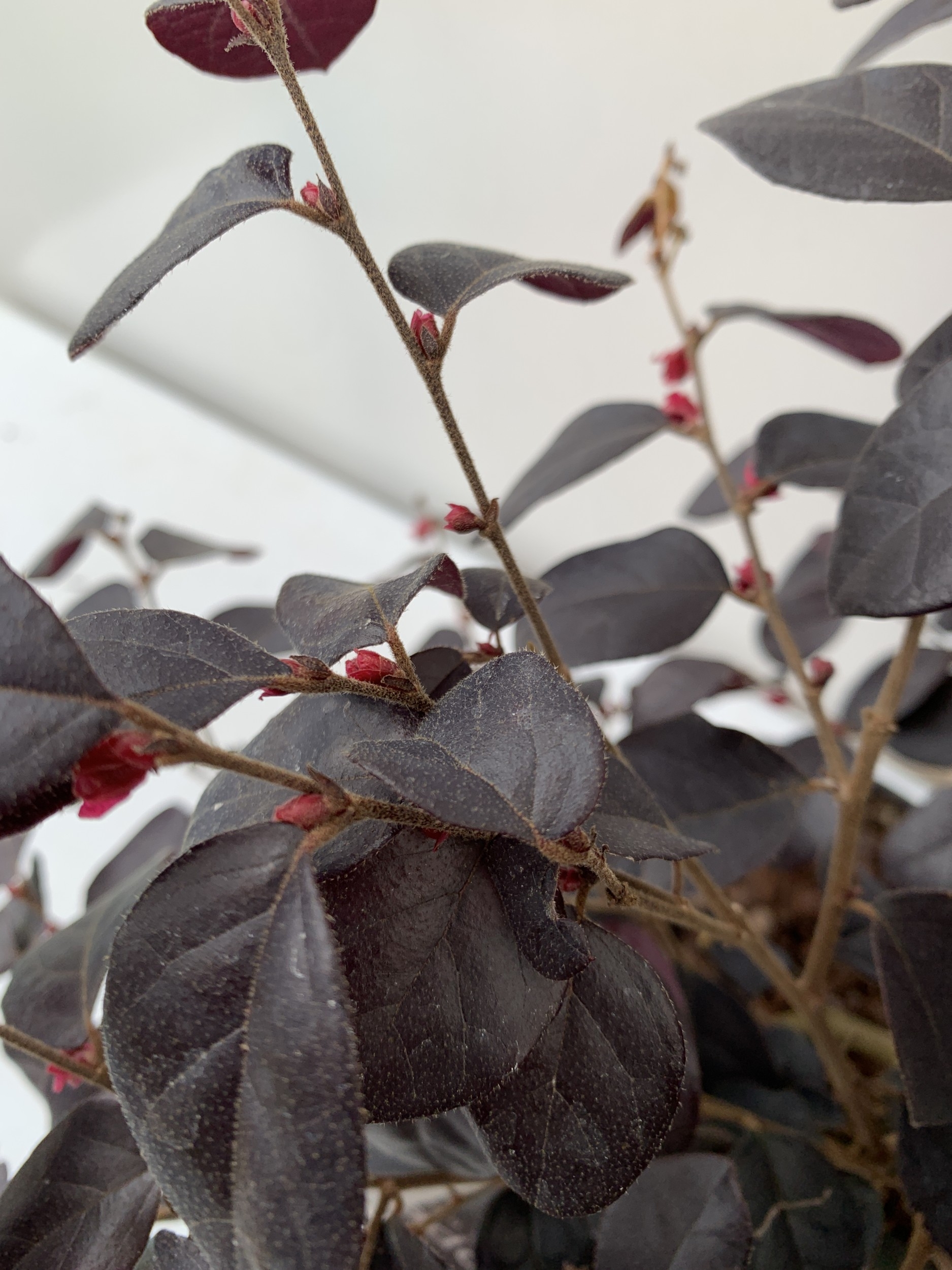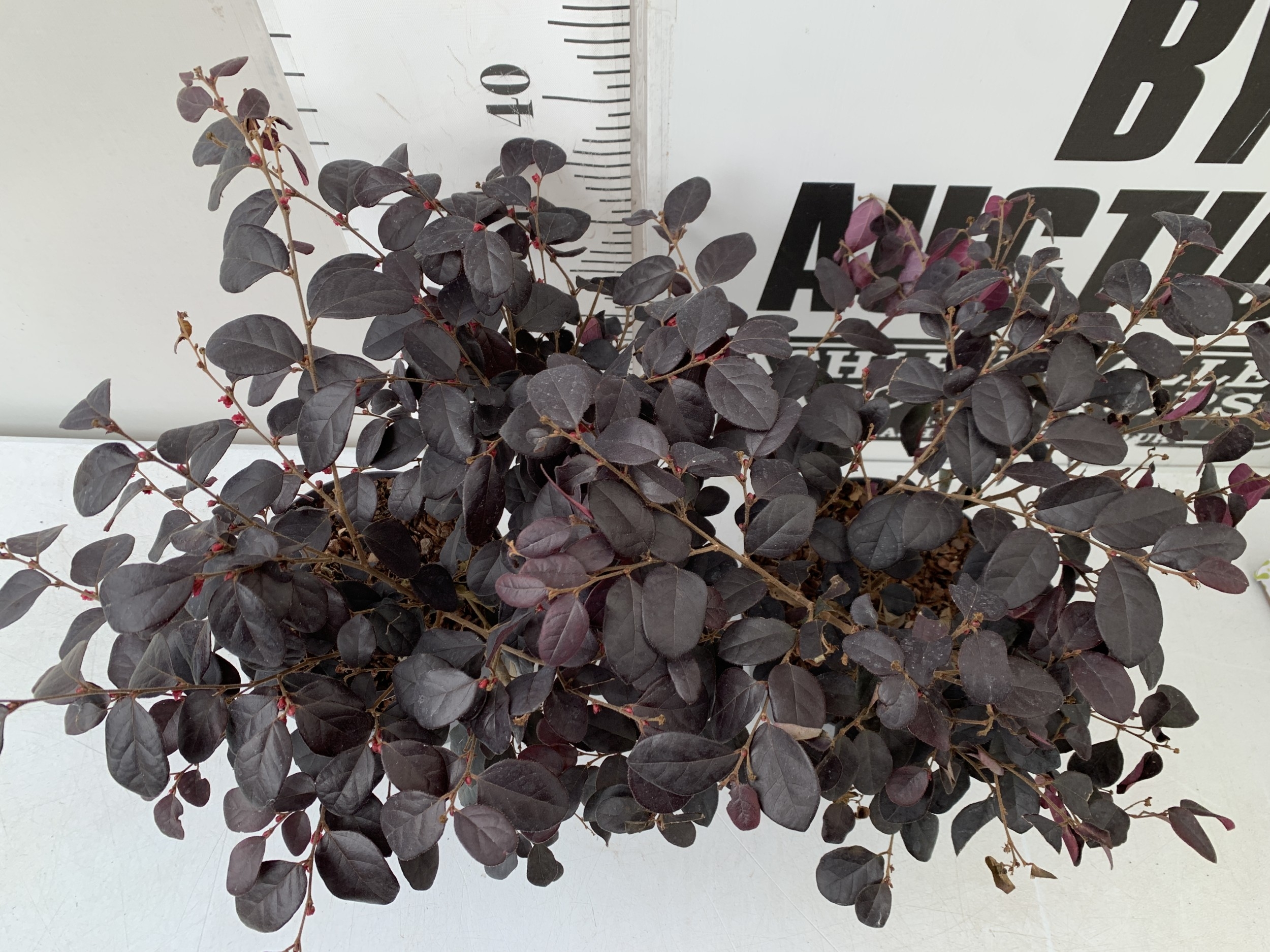 TWO LOROPETALUM CHINENSE 'BLACK PEARL' OR CHINESE FRINGE FLOWER IN 3 LTR POTS. APPROX 50CM TALL, TO BE SOLD FOR THE PAIR