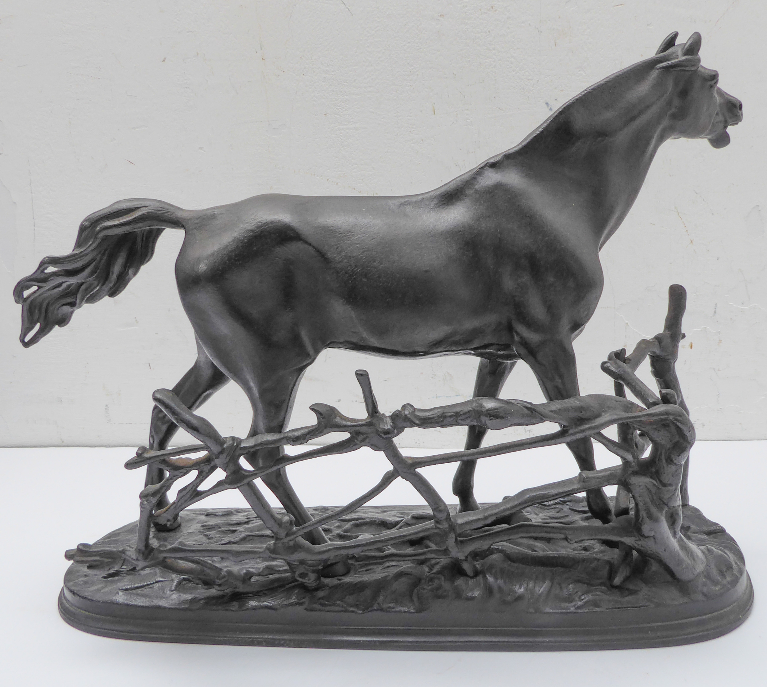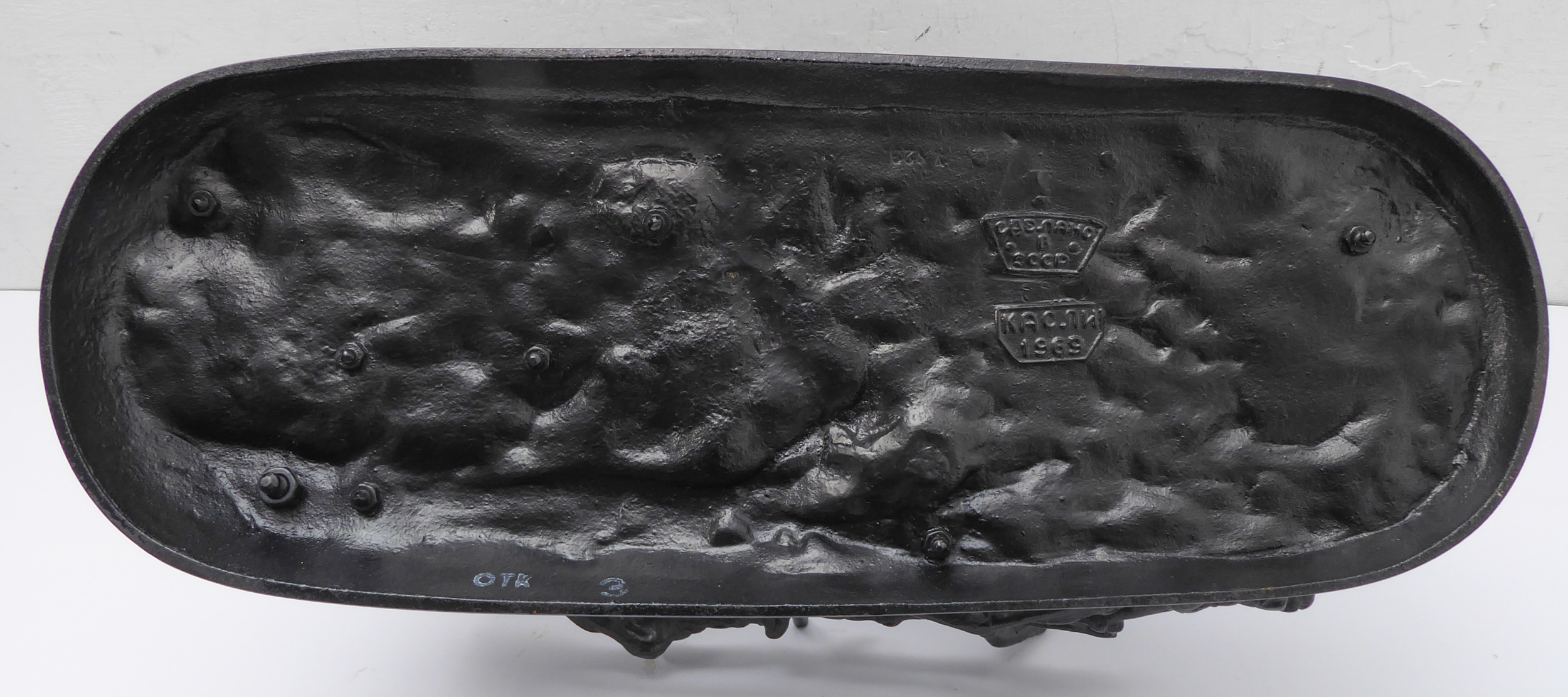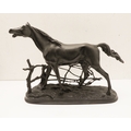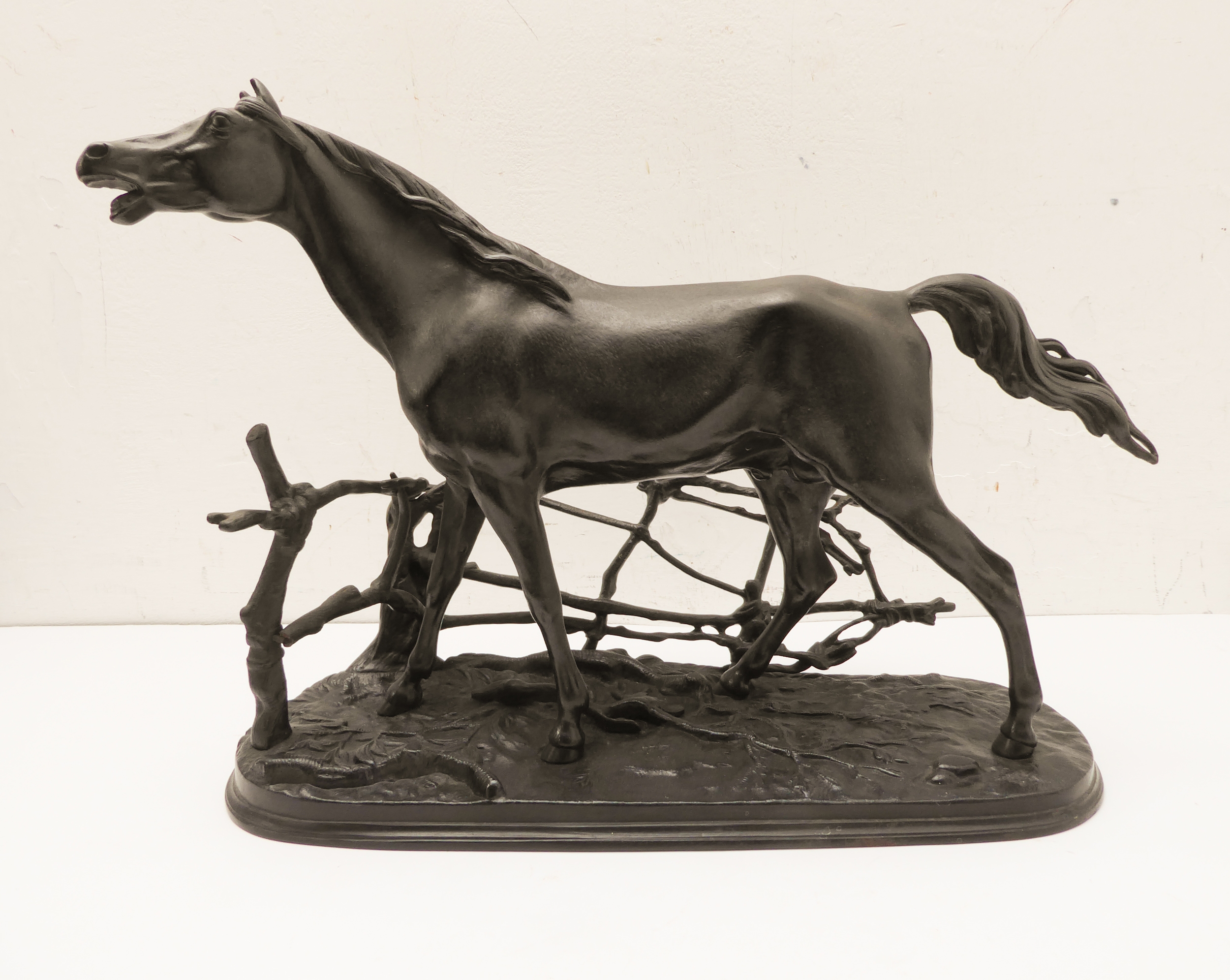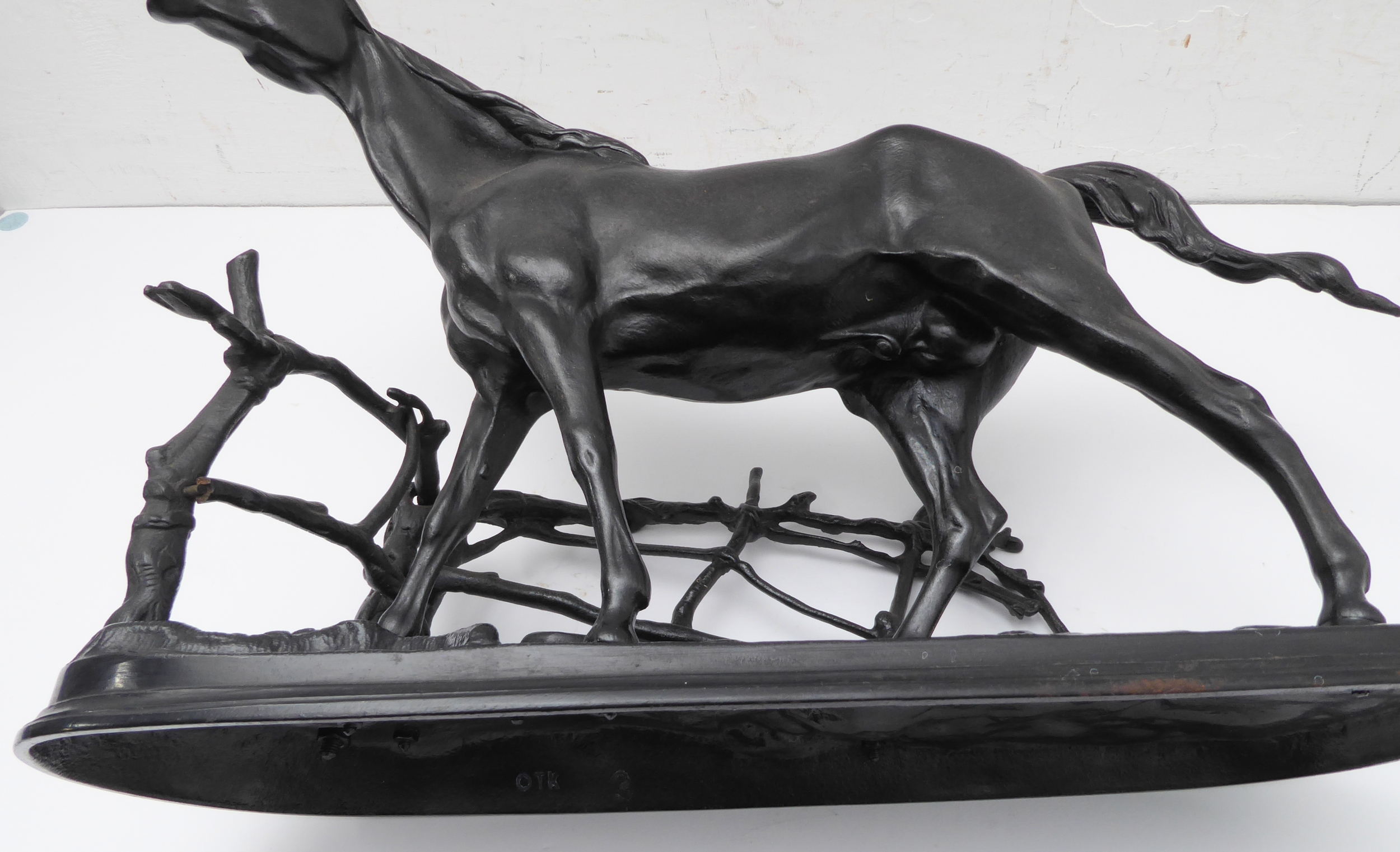A cast-iron Russian model model of a stallion within a branch fence (dated 1969 to the underside) (36.5 x 28.5 cm)