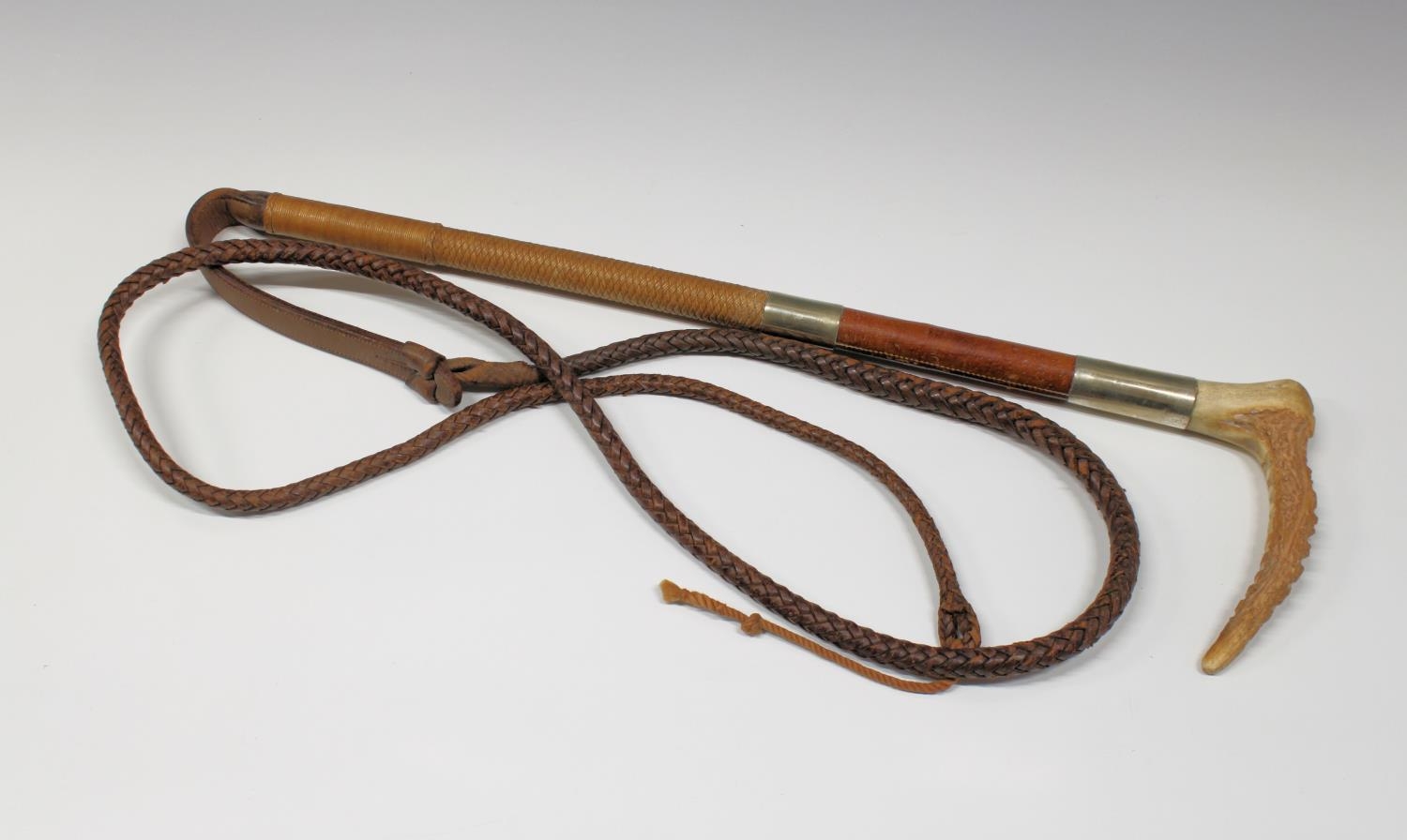 A horn handled riding crop.