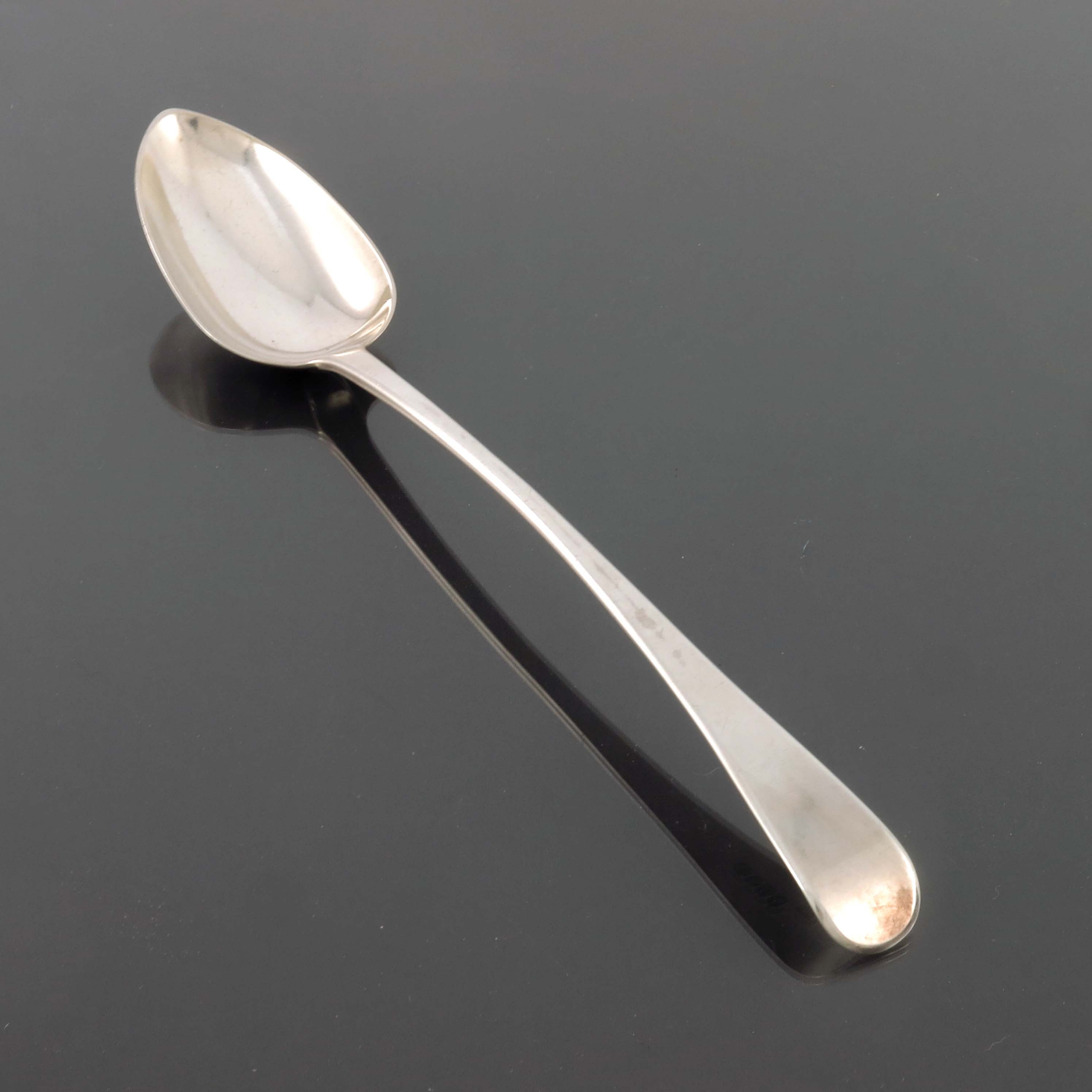A George III silver basting spoon, Thomas Wallis II, London 1800, Old English pattern, 31cm long, 3.45ozt