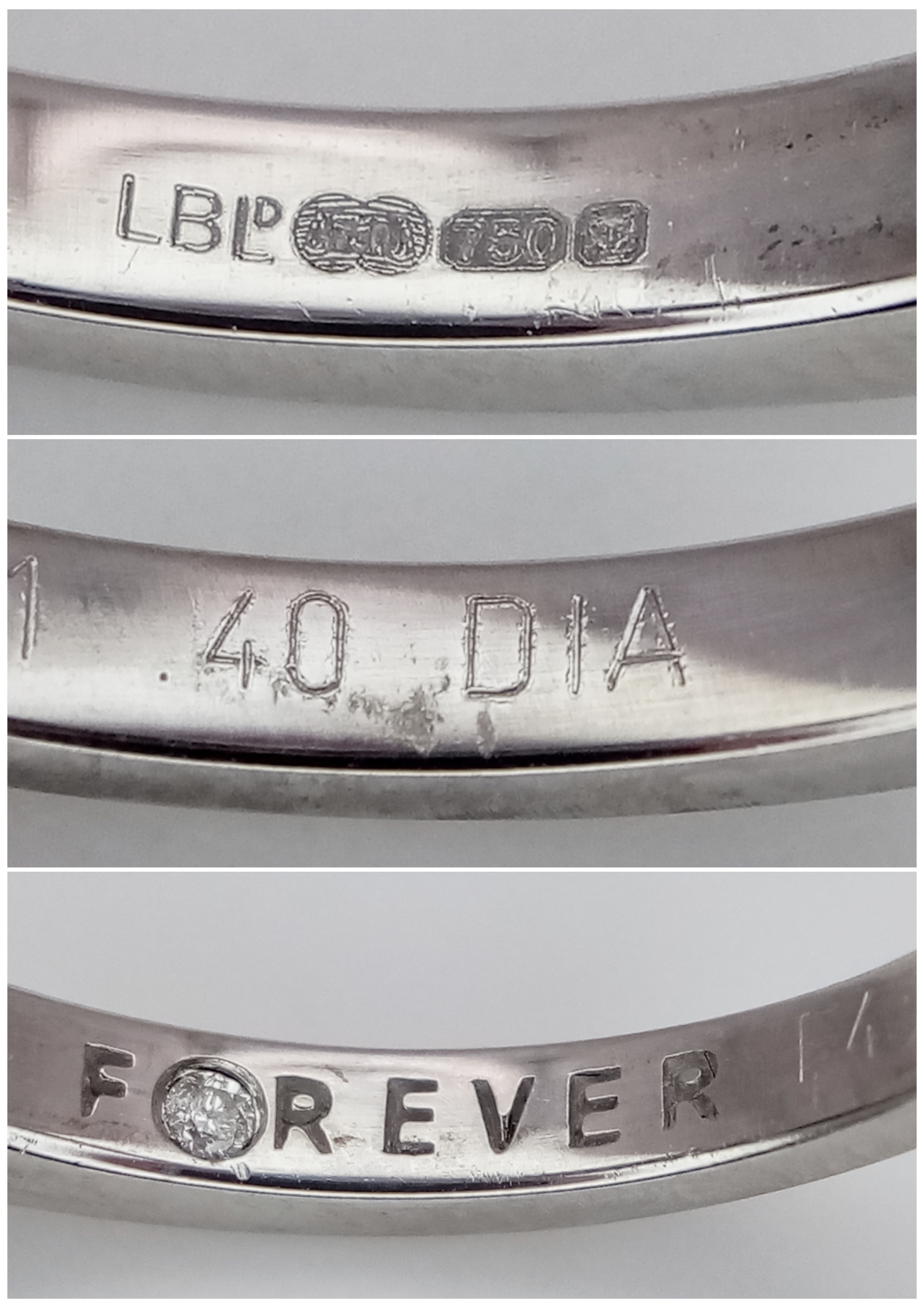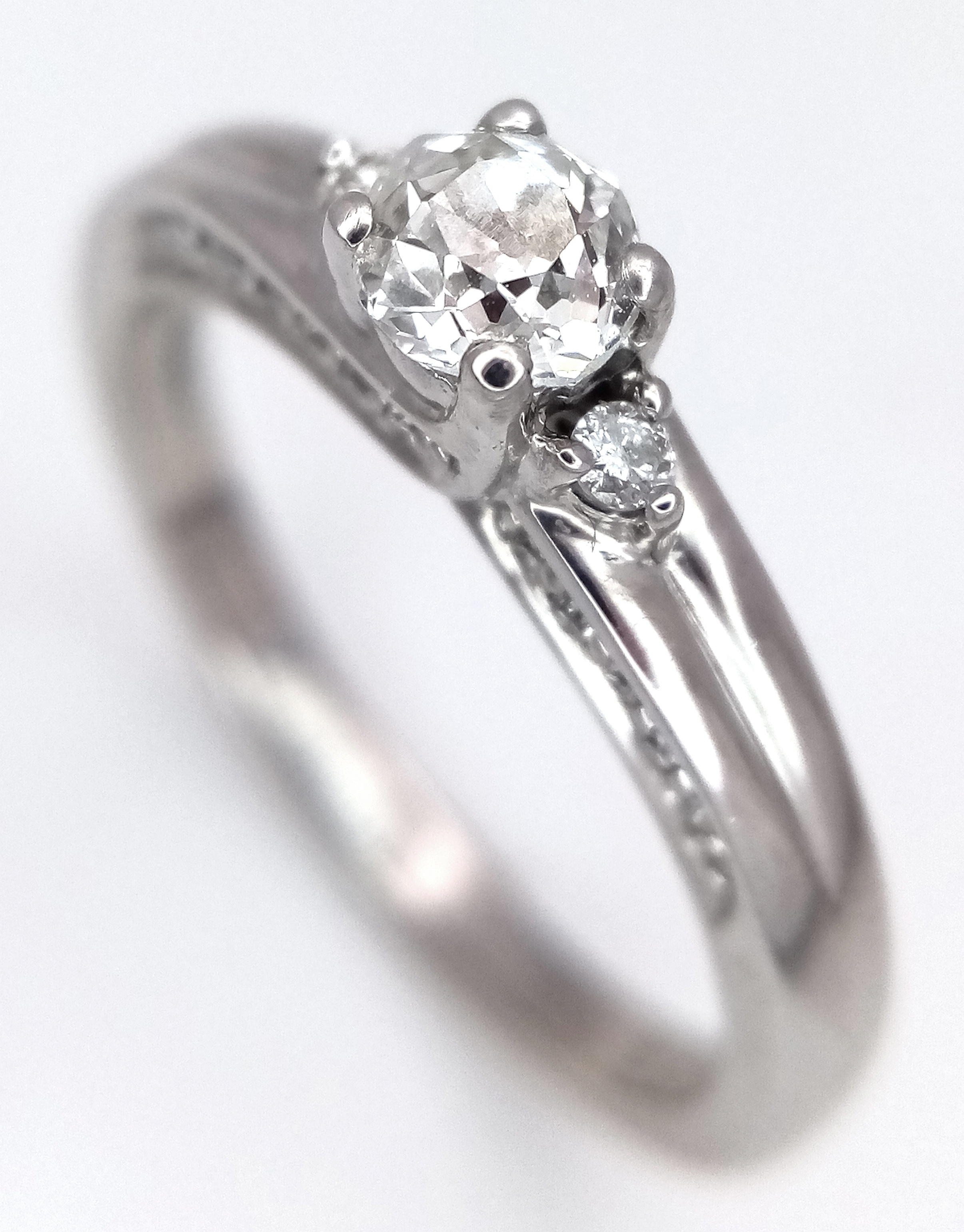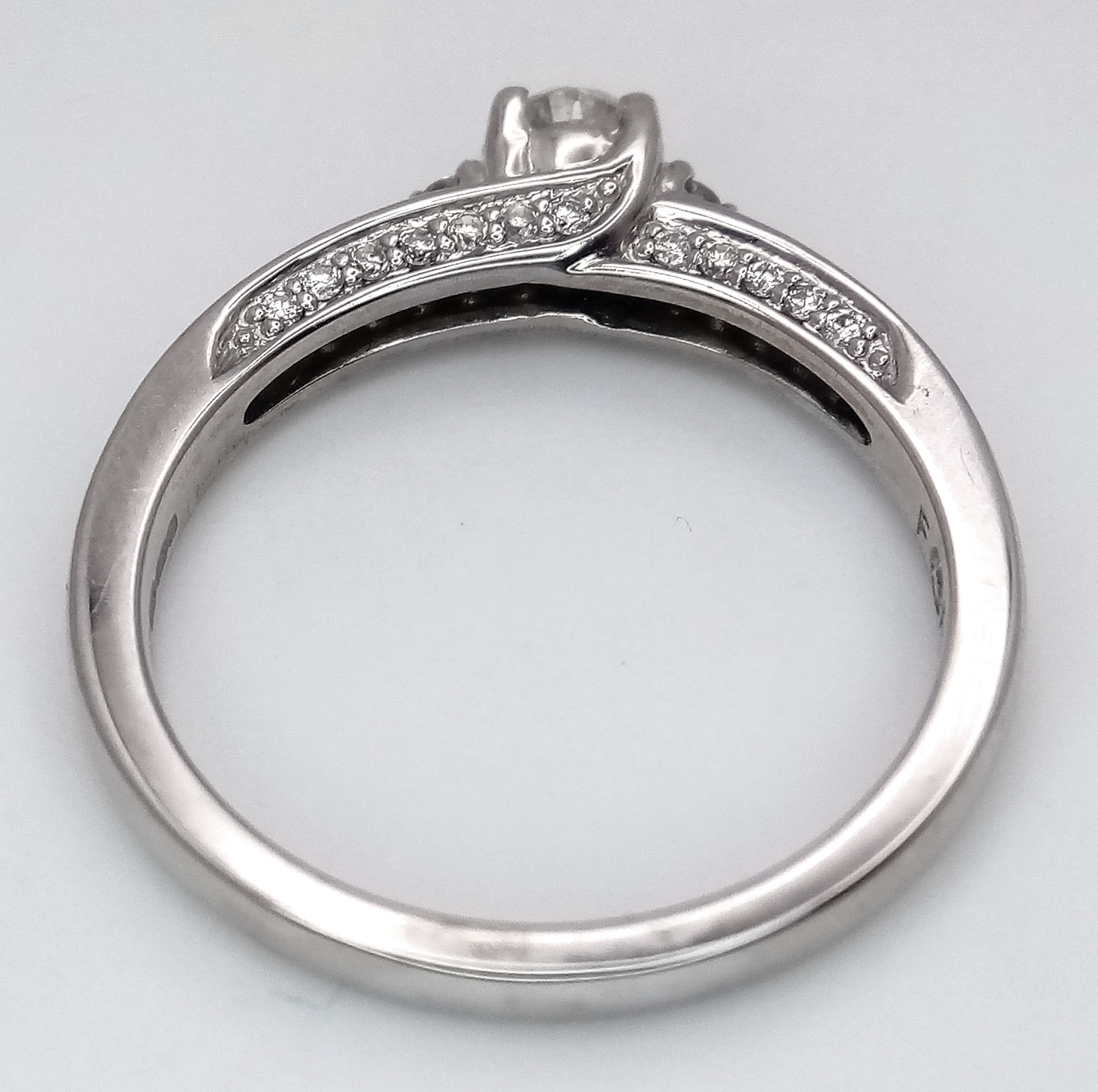 An 18k white gold diamond trilogy ring with diamond underside, 0.40ct diamond weight, 4.2g total weight, ring size O. NM06