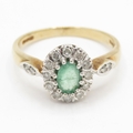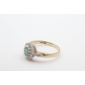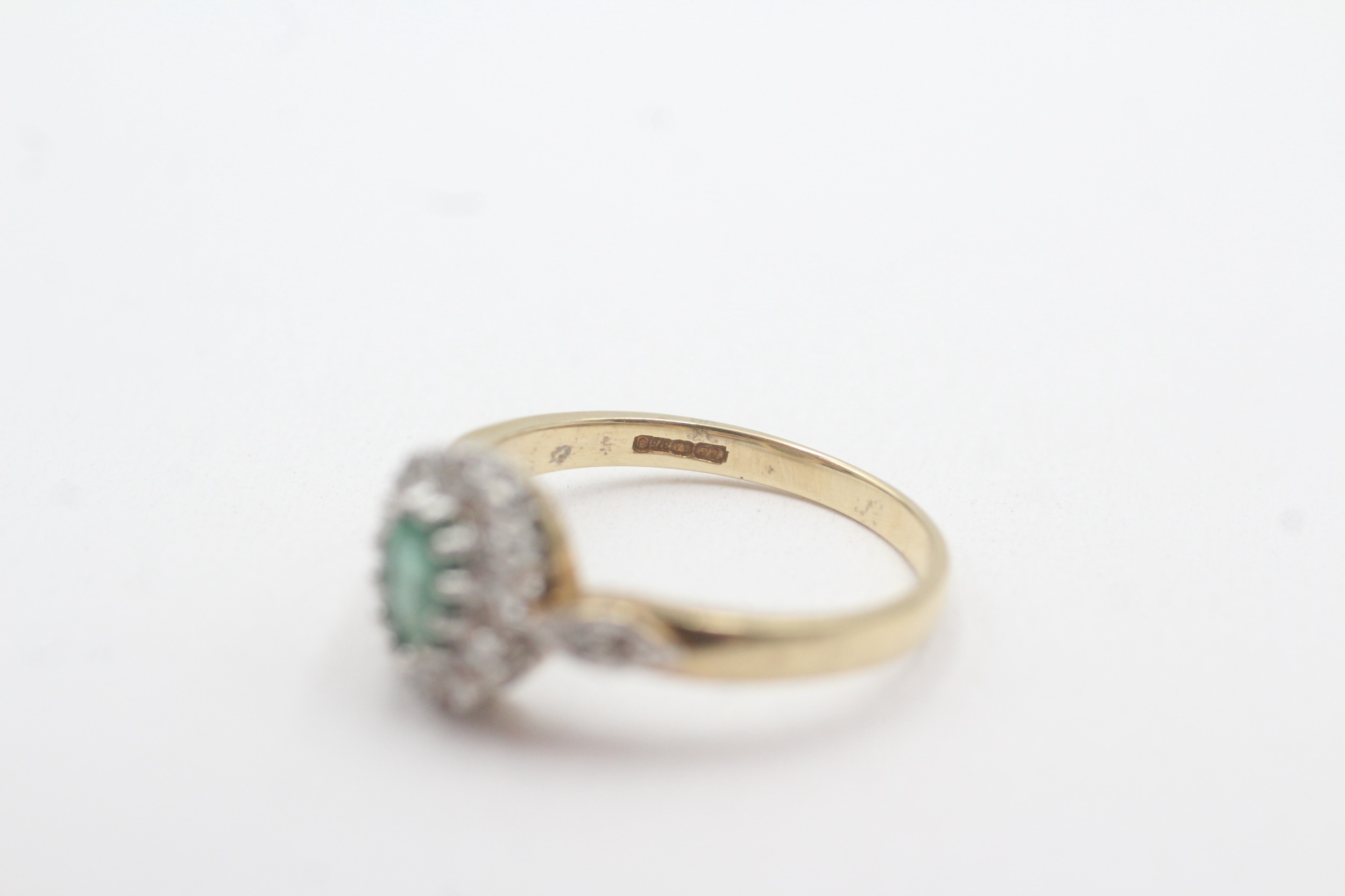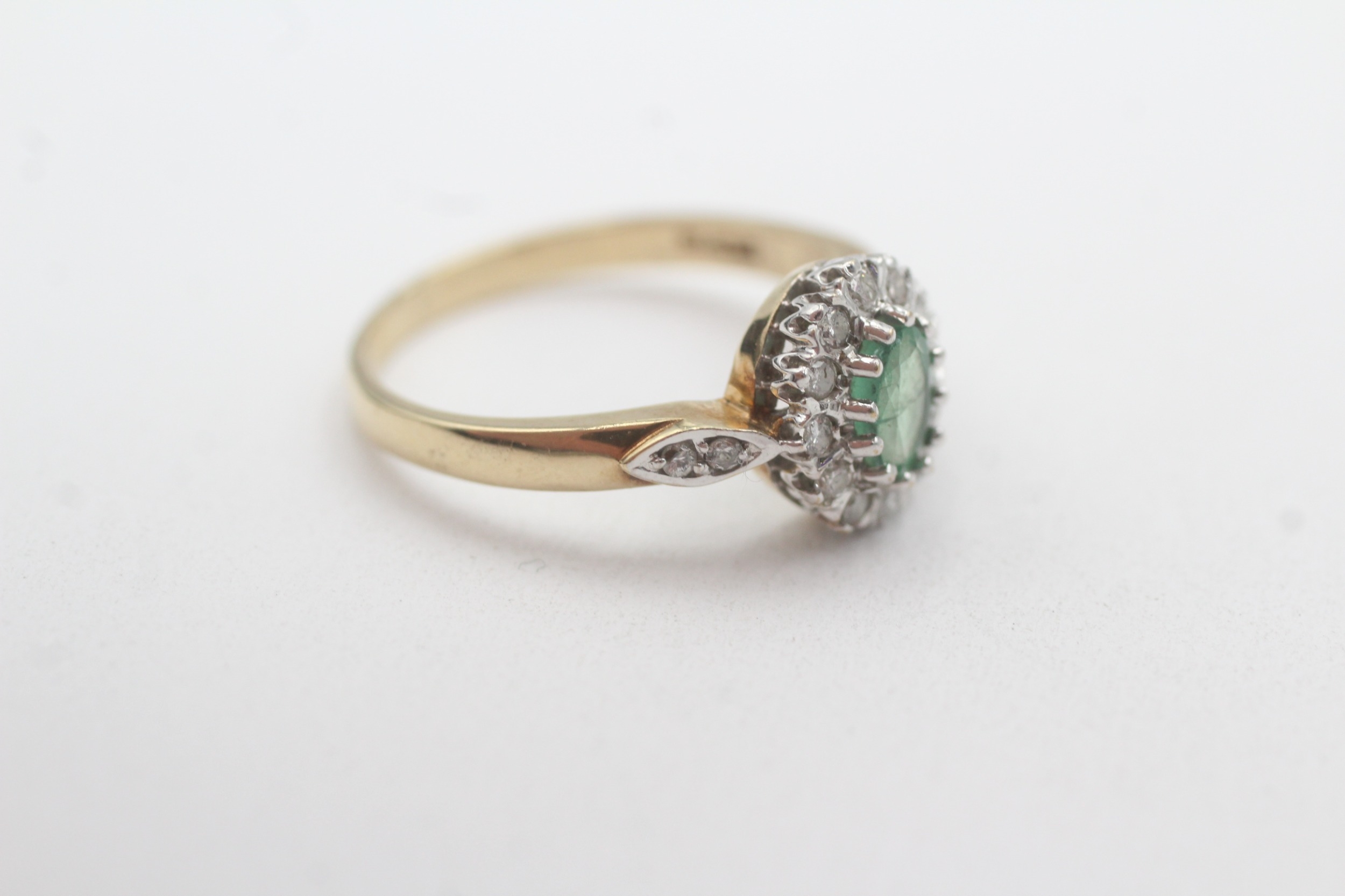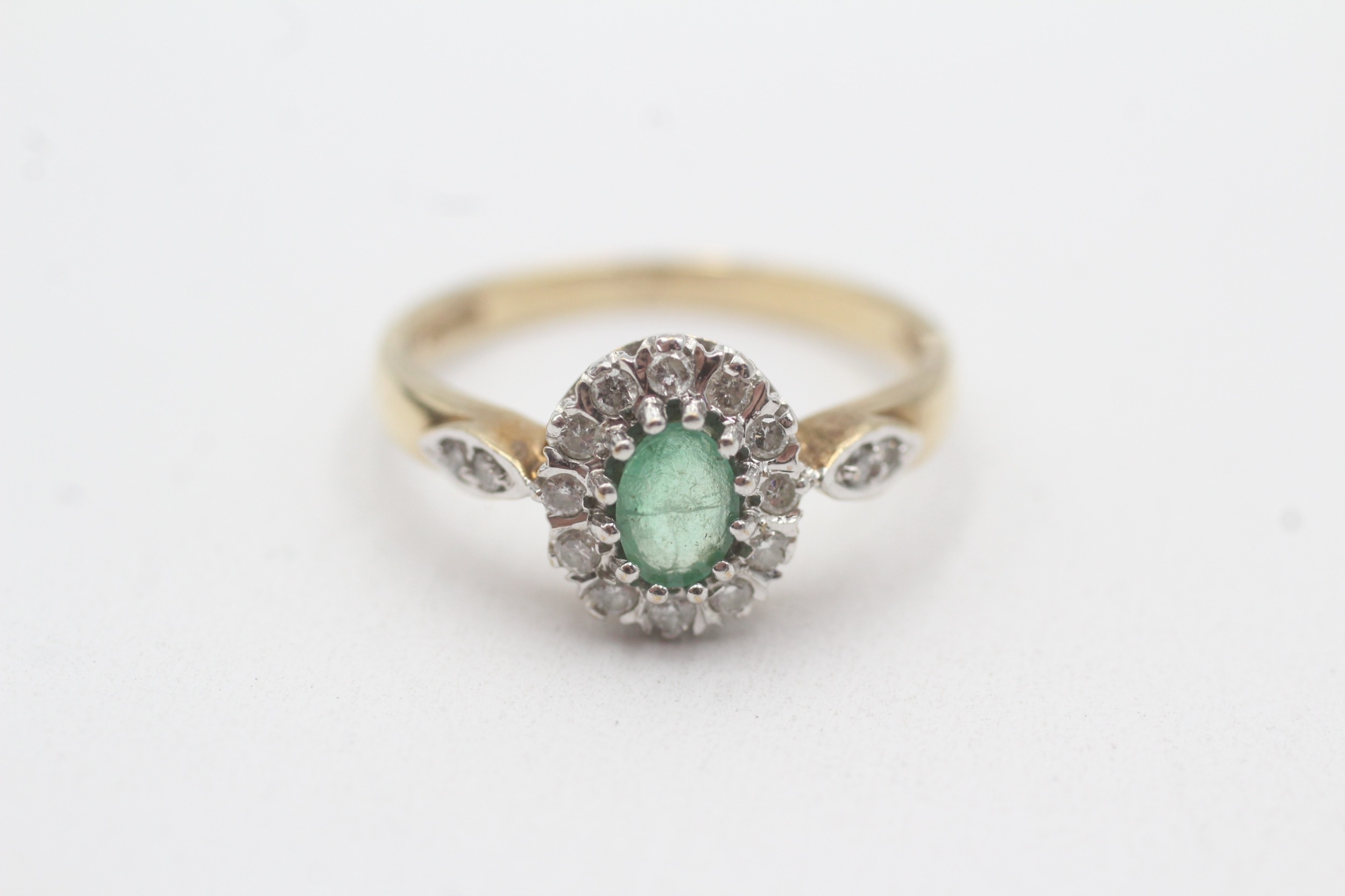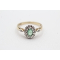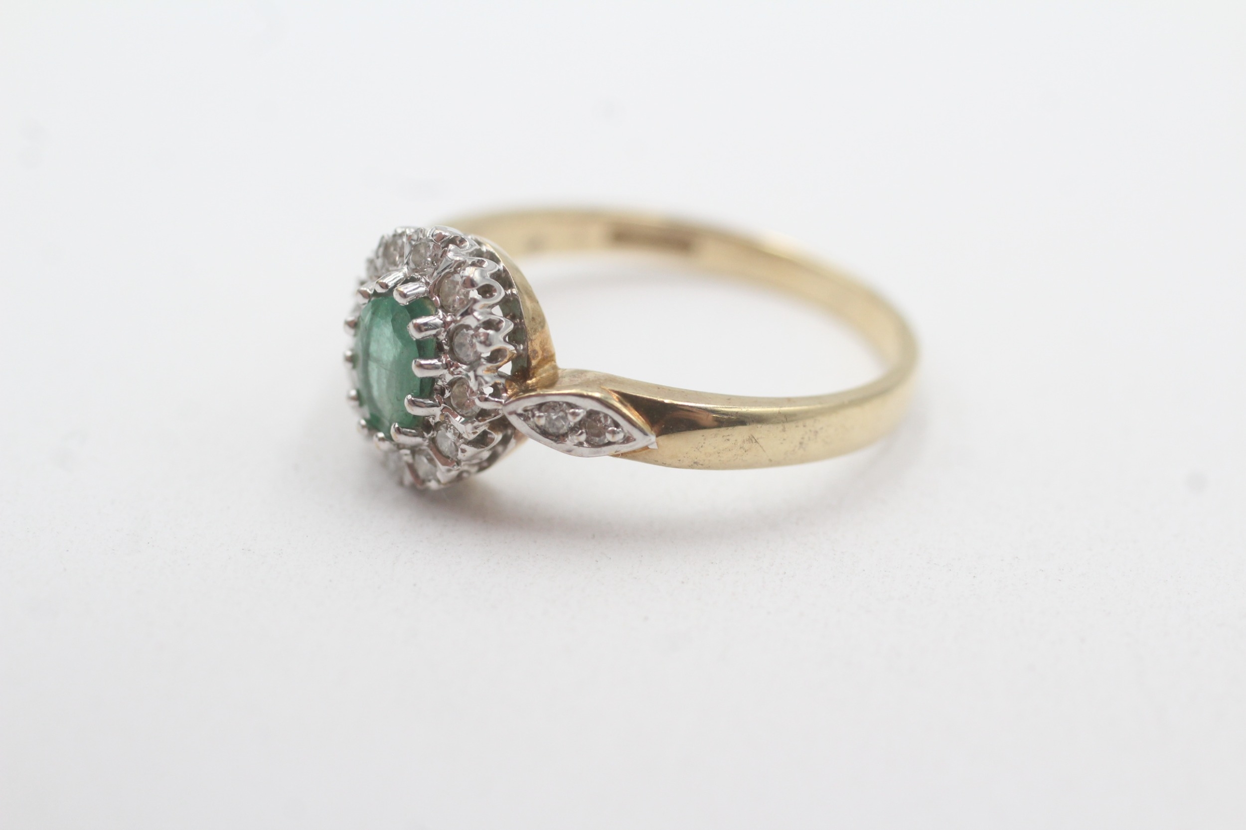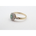 9ct gold emerald diamond halo cluster ring (3g) Size Q 1/2