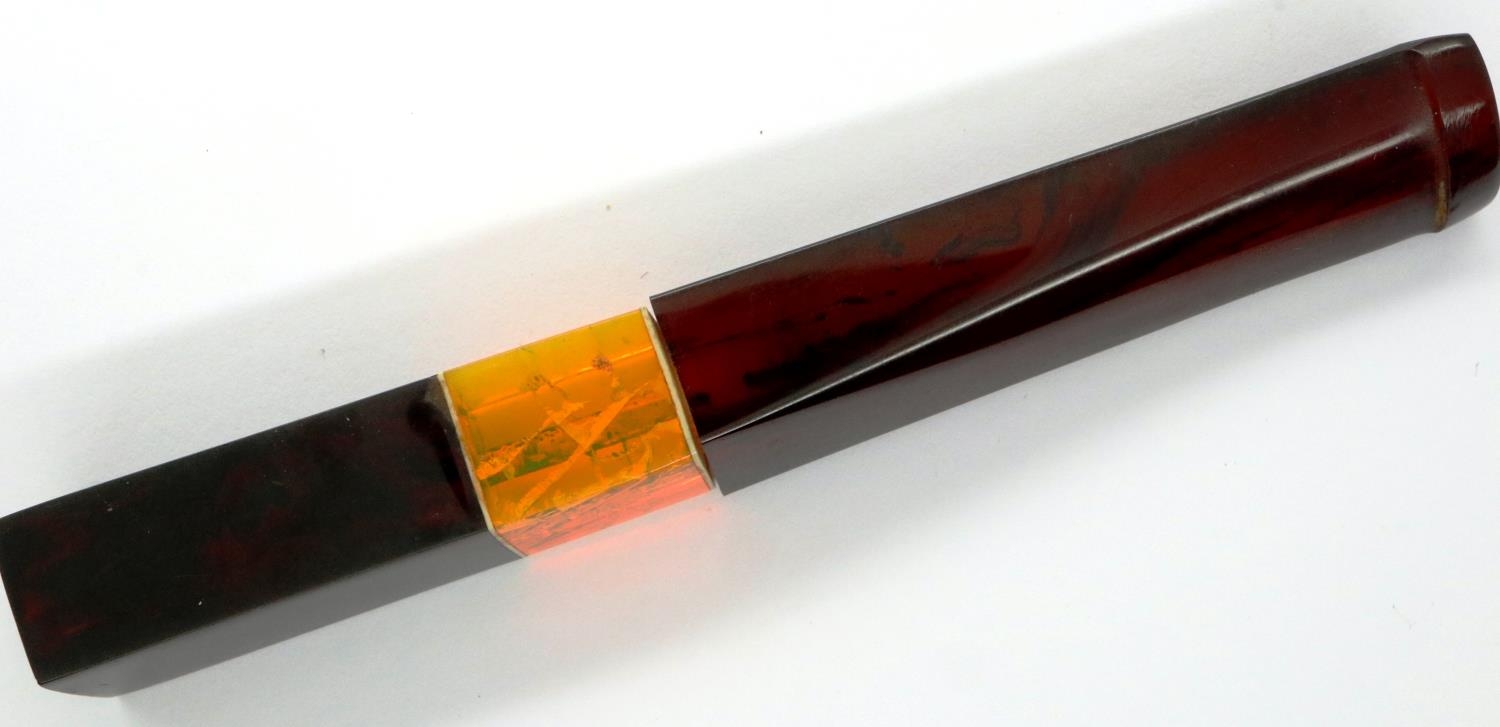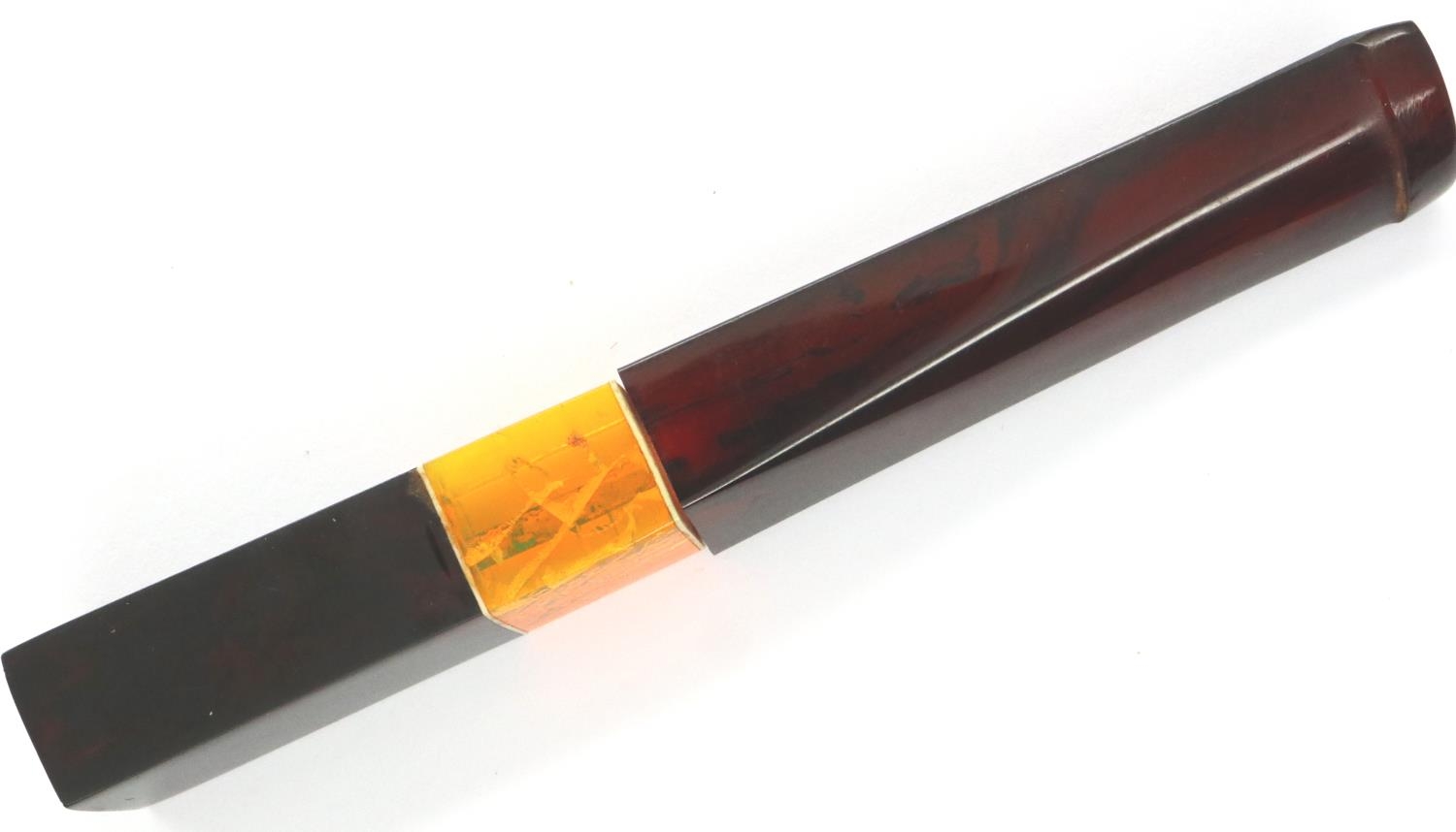 Amber cheroot holder, L: 11 cm. P&P Group 1 (£14+VAT for the first lot and £1+VAT for subsequent lots)