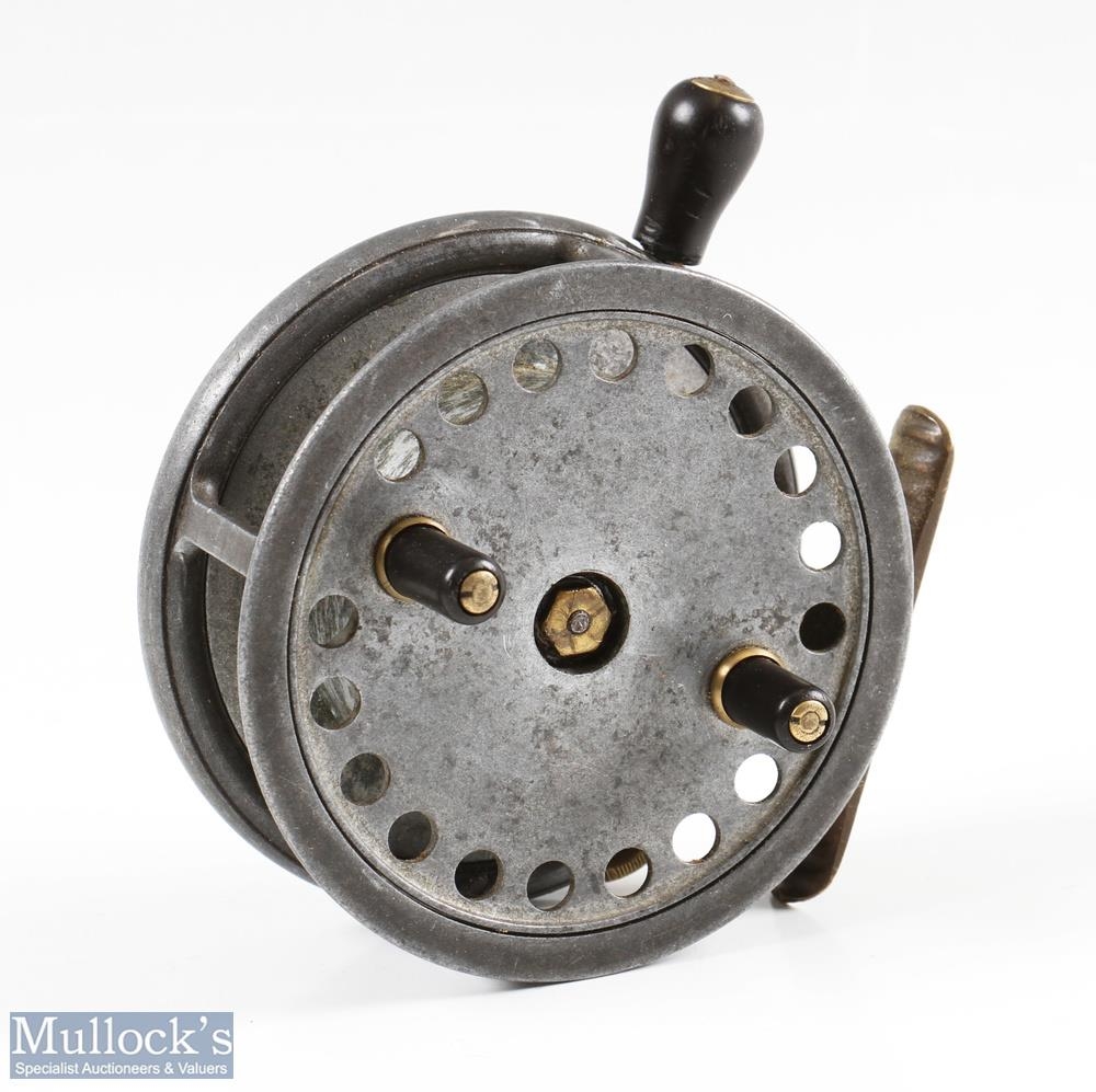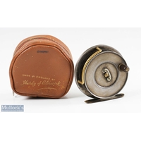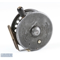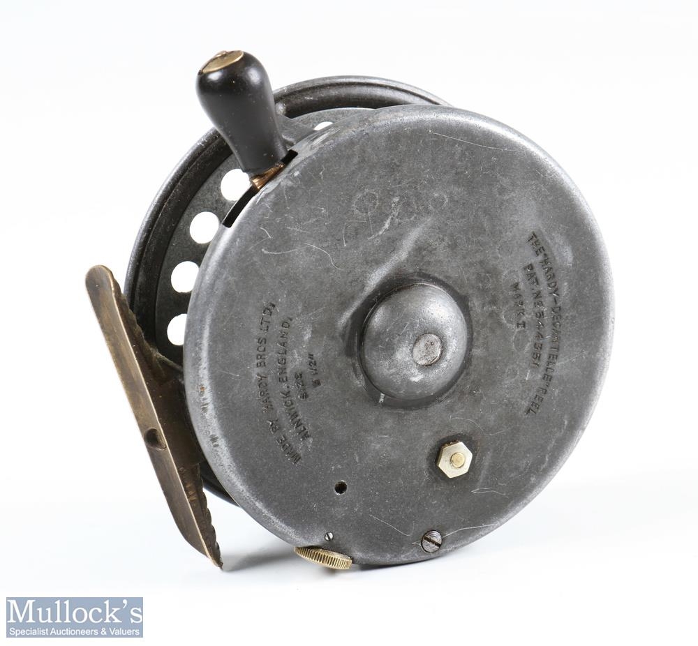 Hardy Bros 3.5" Decantelle Mark I alloy casting reel with ribbed brass foot, rim tensioner, rim lever brake, silent check, twin handle, surface wear apparent, runs freely o/w