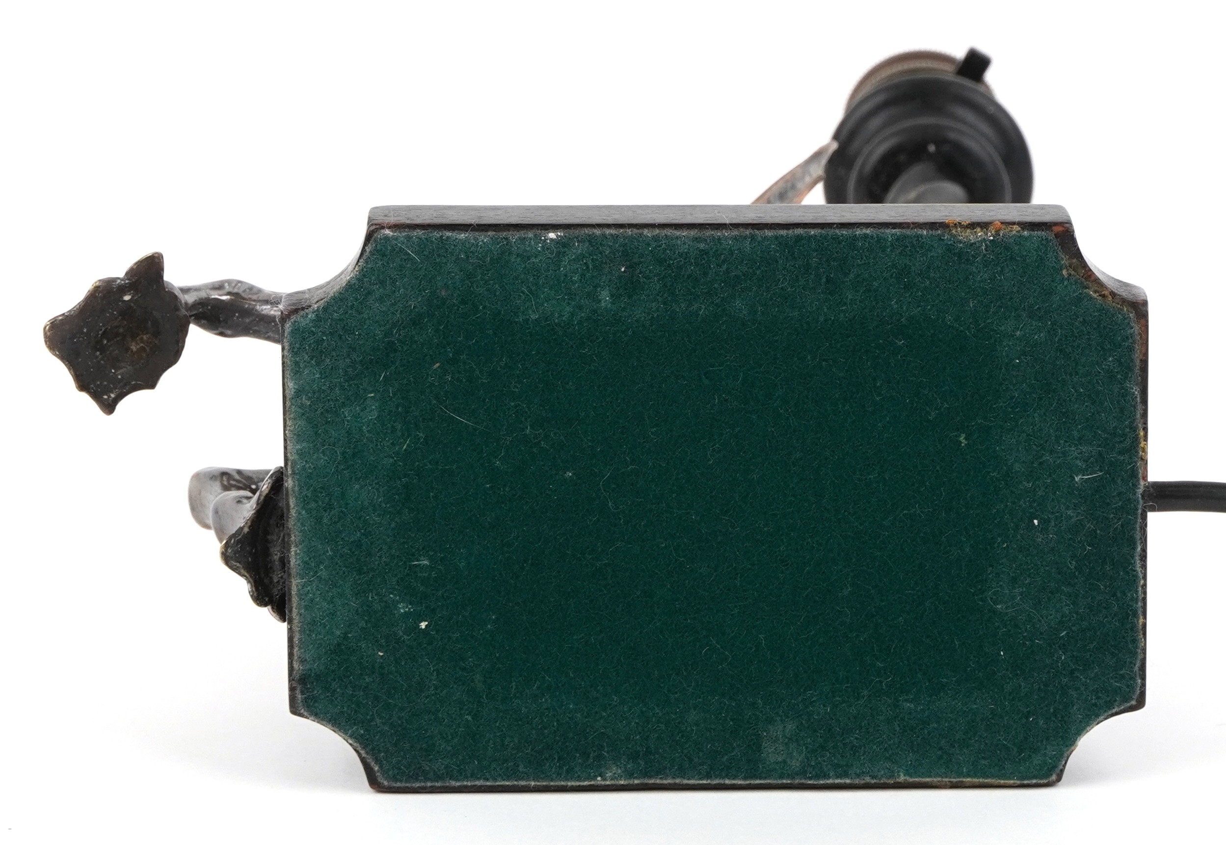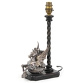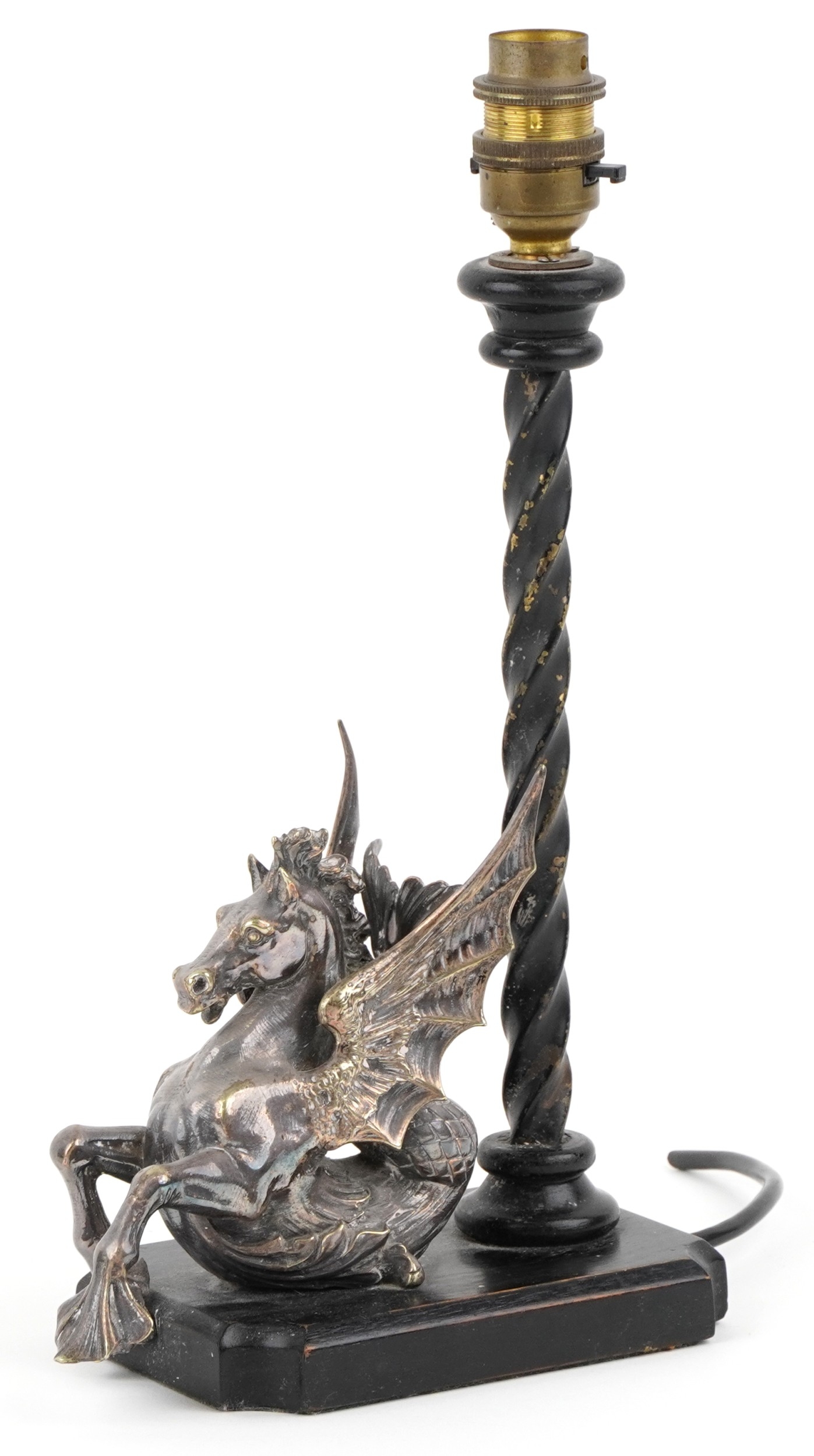 A silver plated study of Pegasus mounted on an ebonised table lamp base, 26cm high.