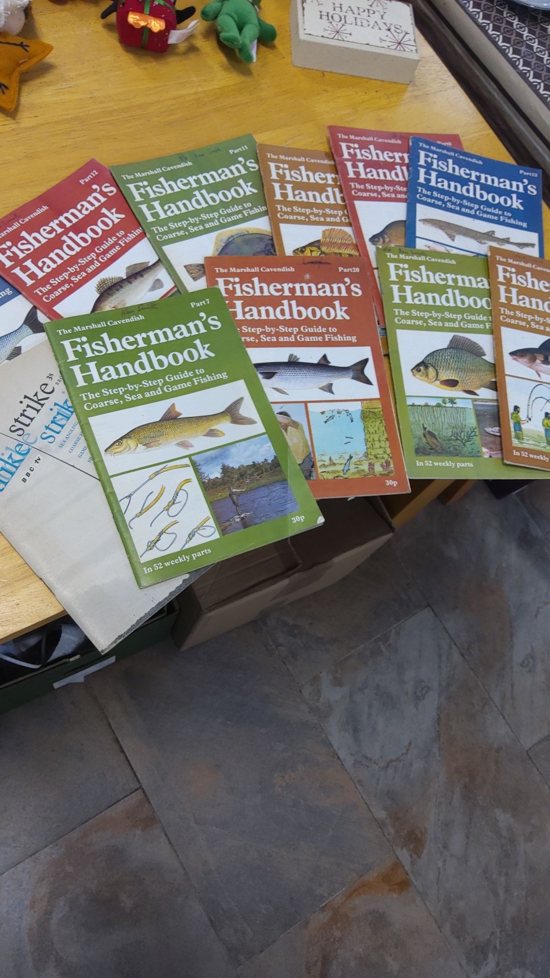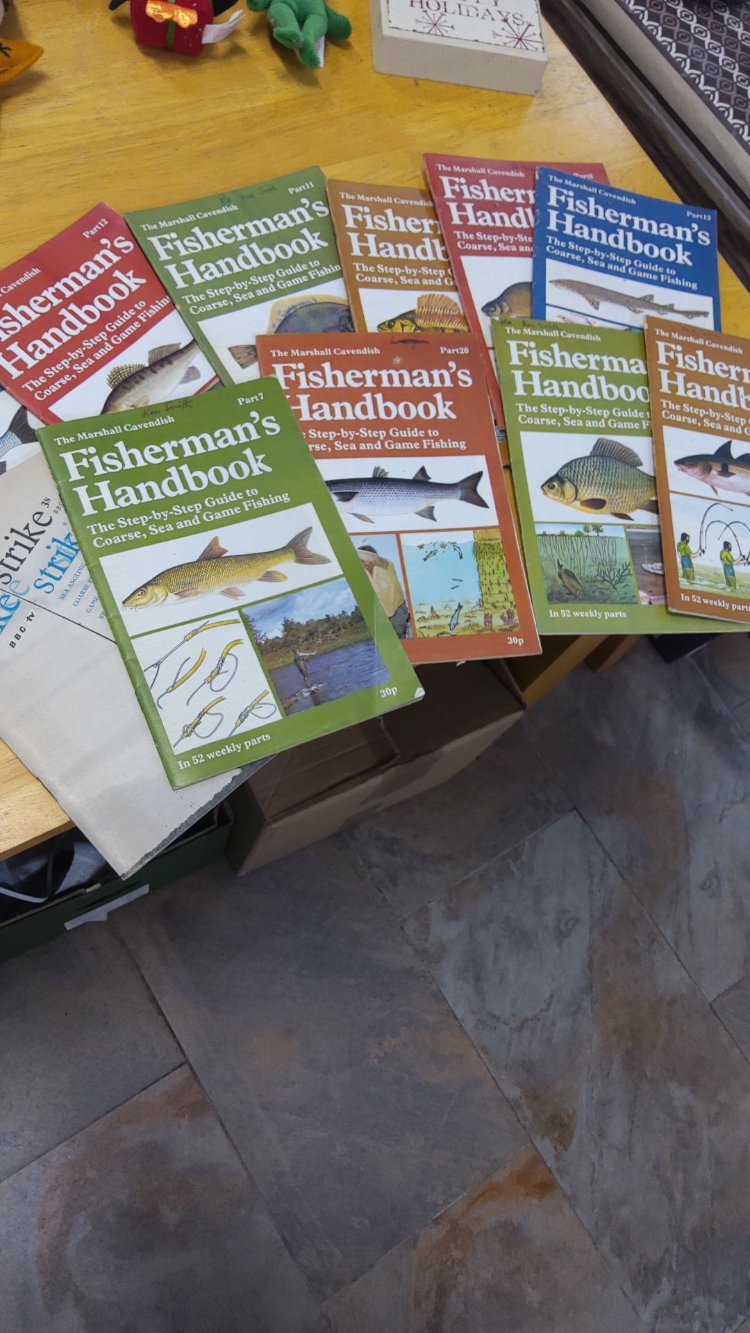 Set of "Fisherman's Handbook" volumes by The Marshall Cavendish, includes coarse, sea, and game fishing techniques.
