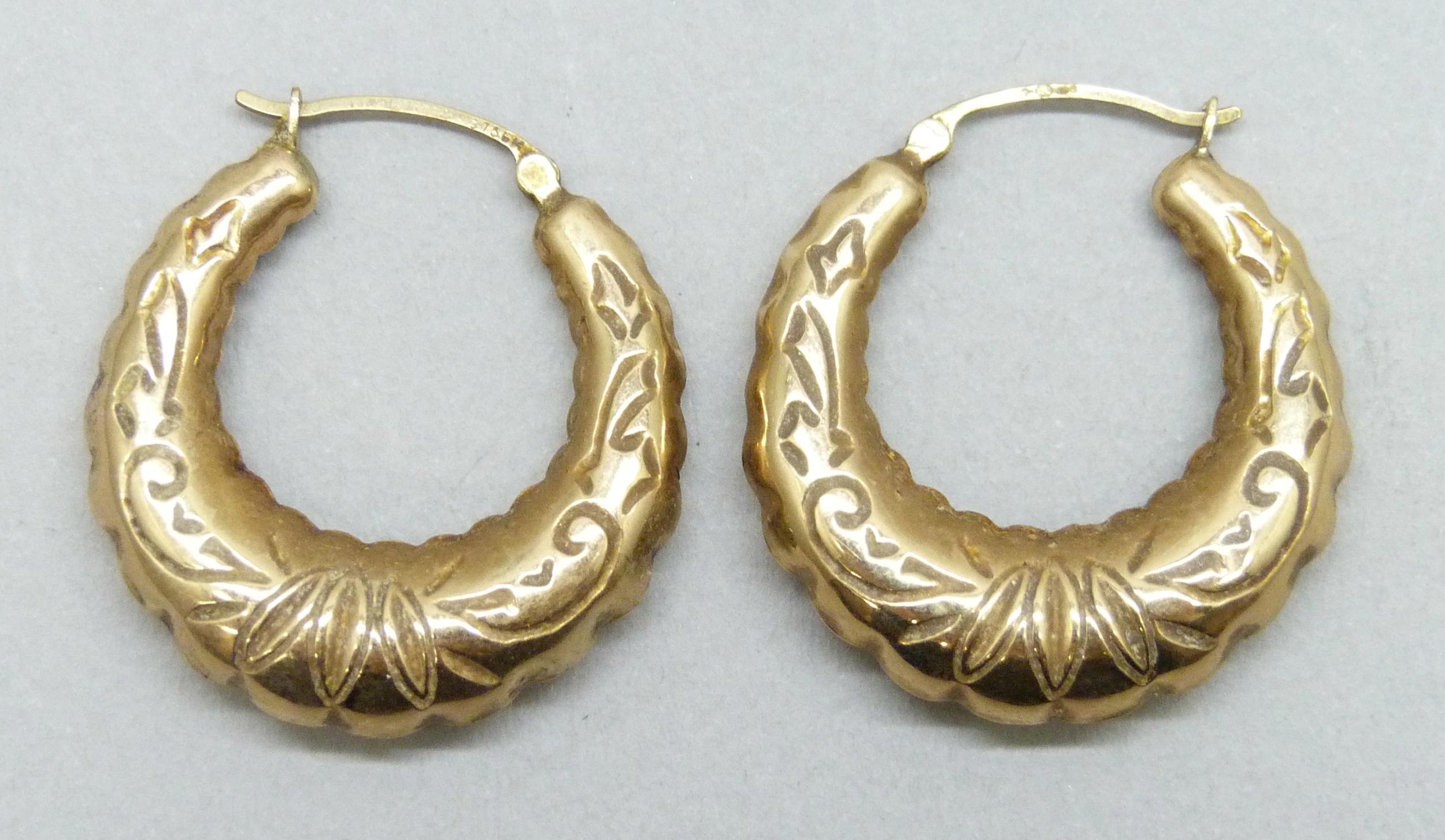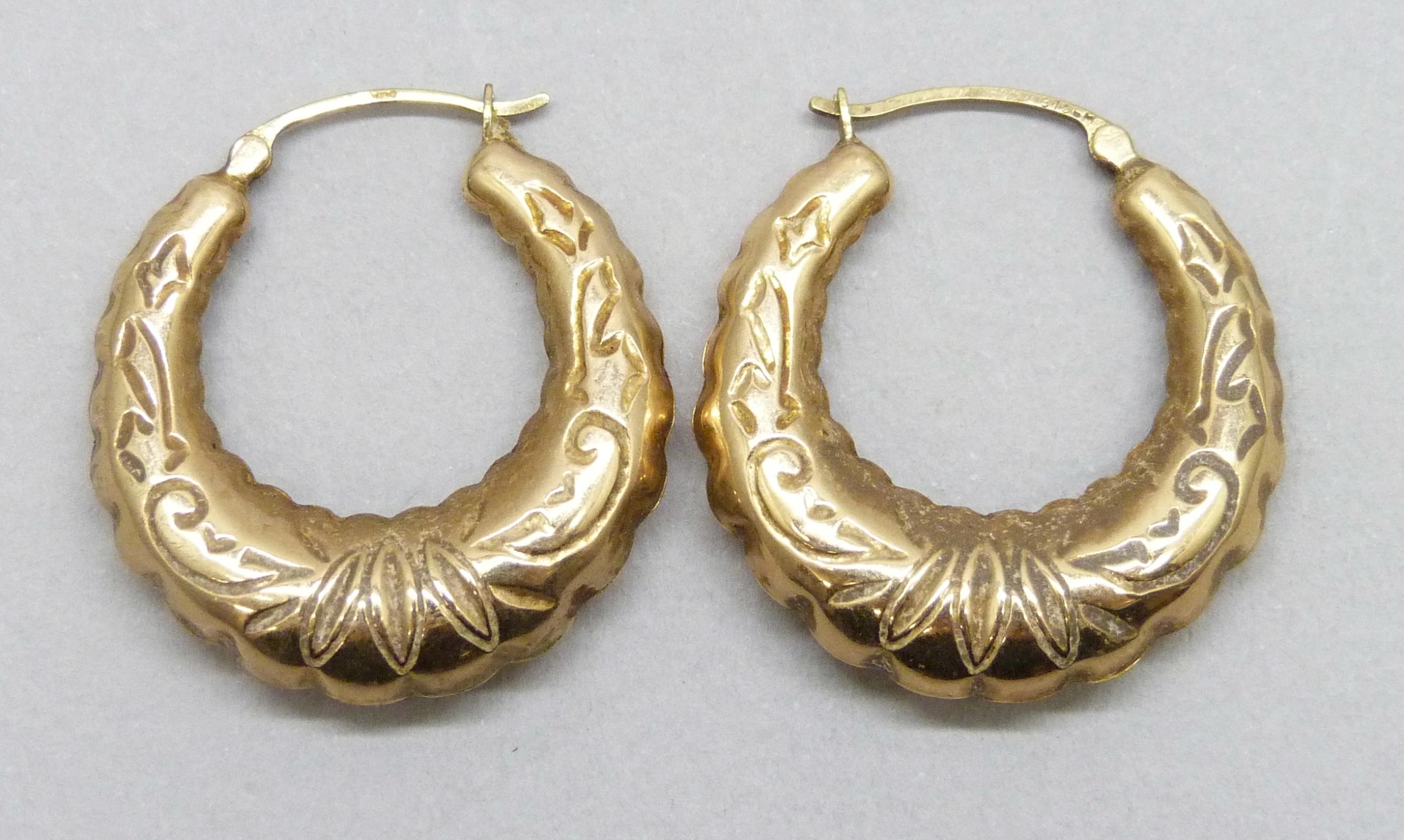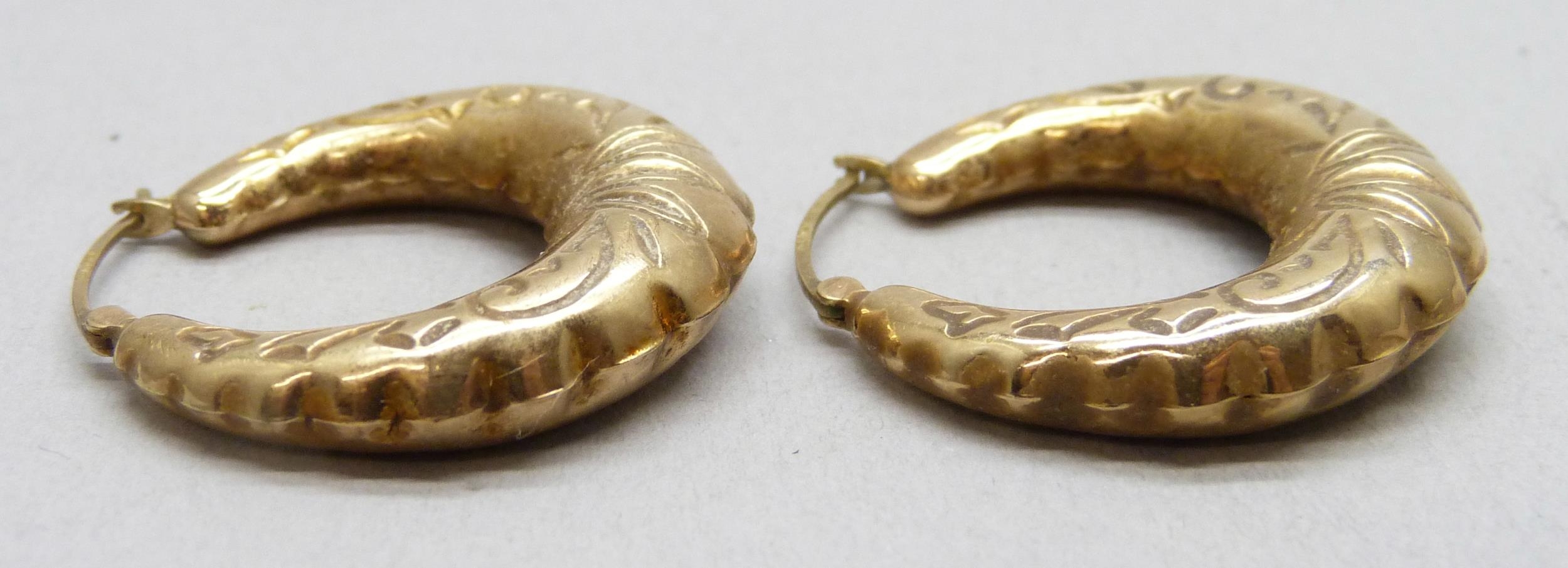 A pair of 9ct gold hoop earrings, 3.6g, 2.9cm