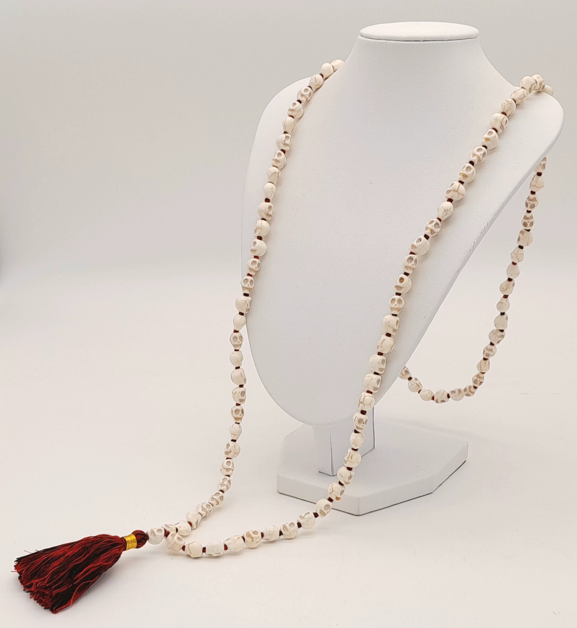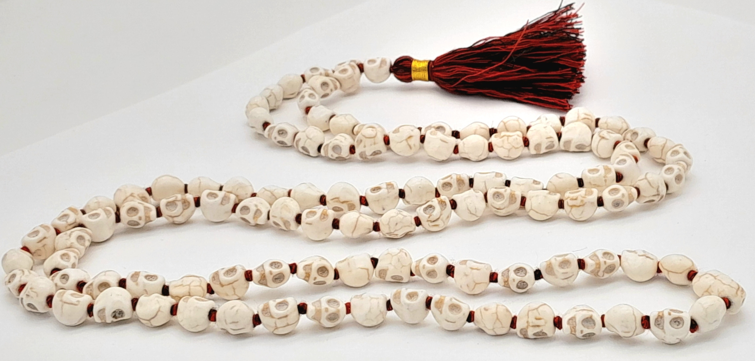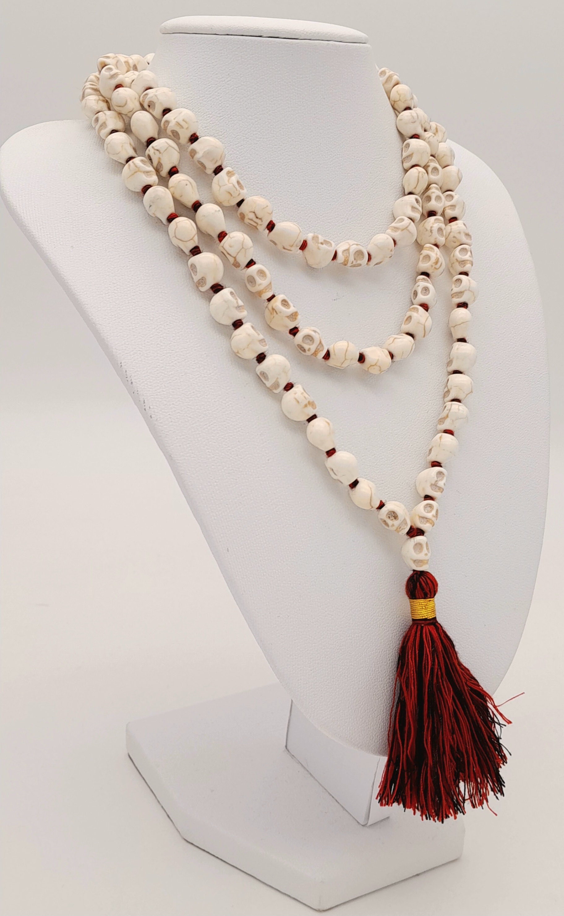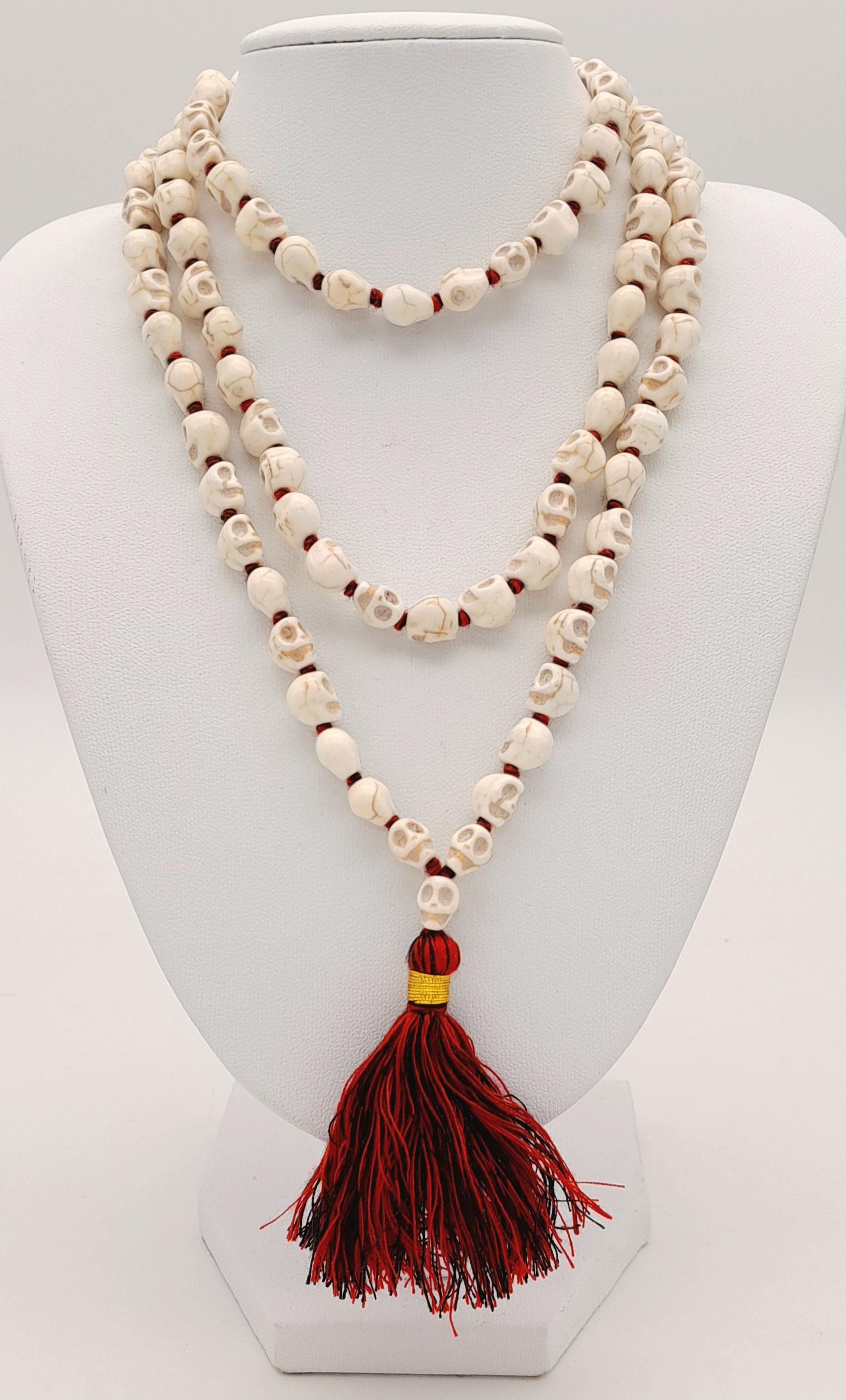 A matinee length of Skull Mala prayer bead link necklace. Total length 96cm.