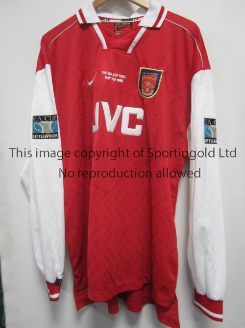 ARSENAL PLAYER ISSUE SHIRT 1998 FA CUP FINAL / STEVE BOULD Red long sleeve shirt issued to Steve Bould. Arsenal decided to wears short sleeve shirts on the day v Newcastle United. Good