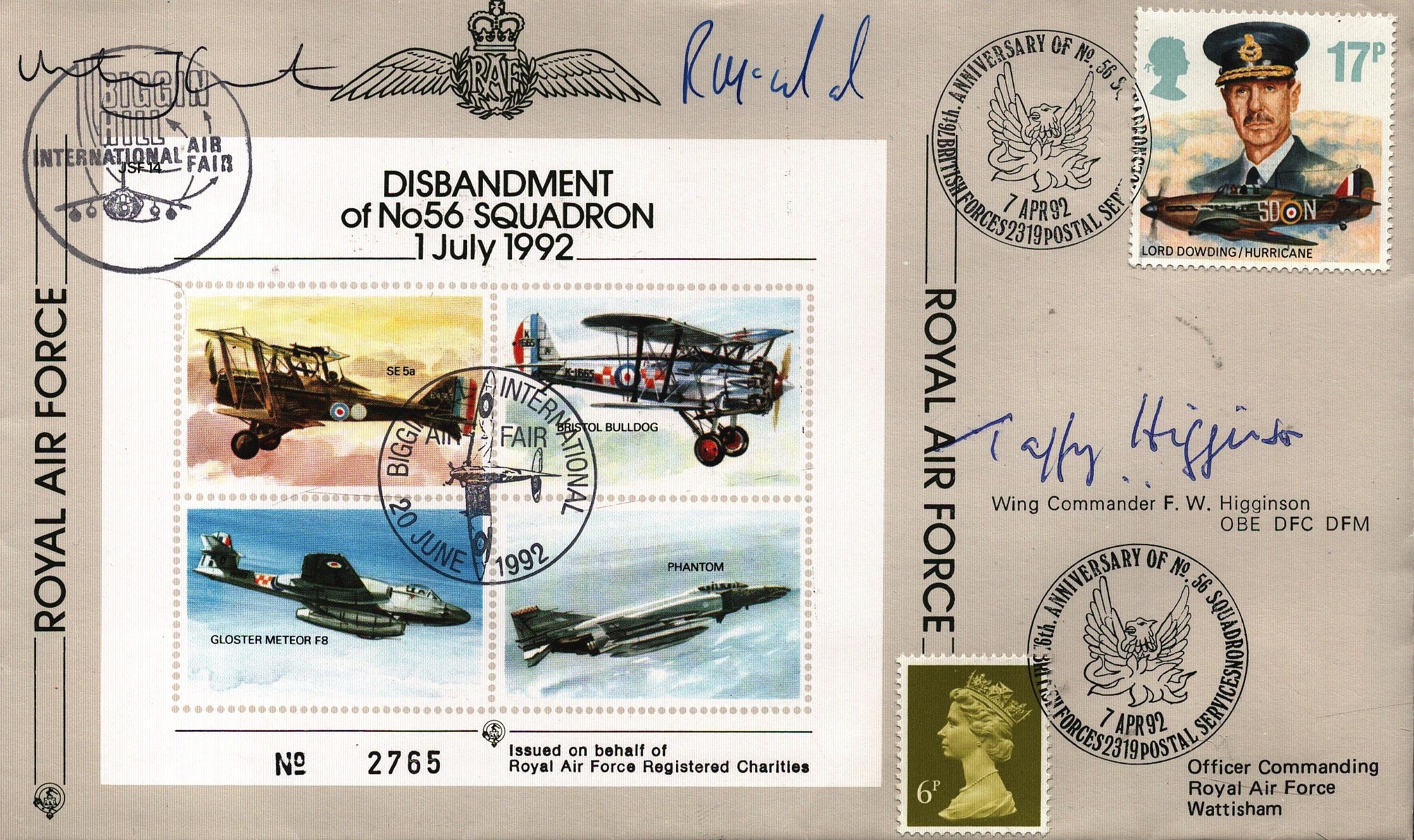 Frederick W. Higginson, Wing Commander plus 2 others signed FDC. Six Stamps plus Triple post marked 7 Apr 92/20 June 1992.