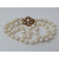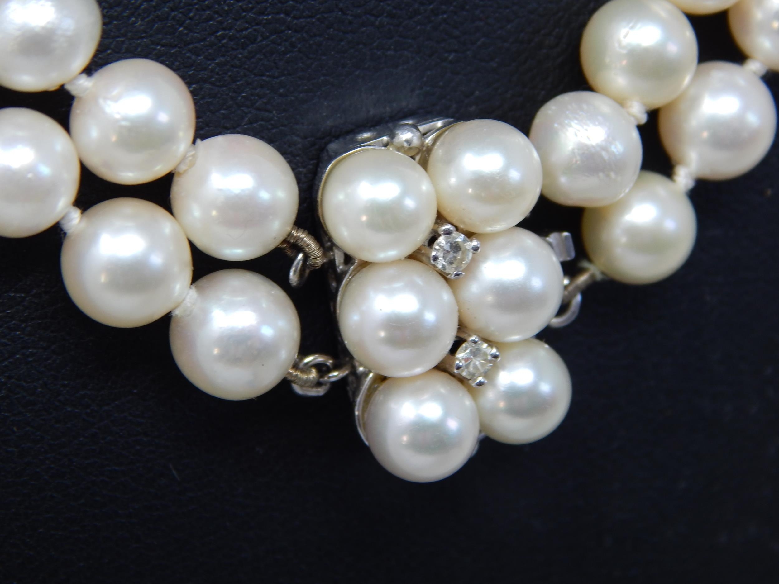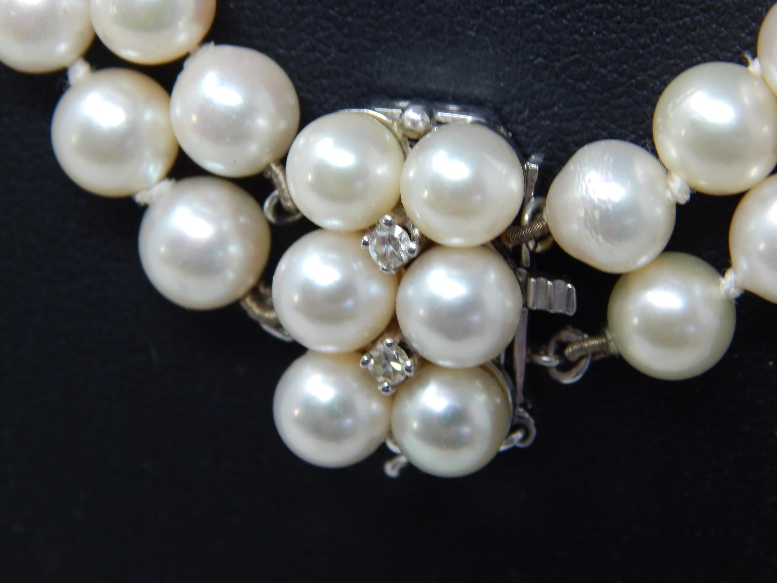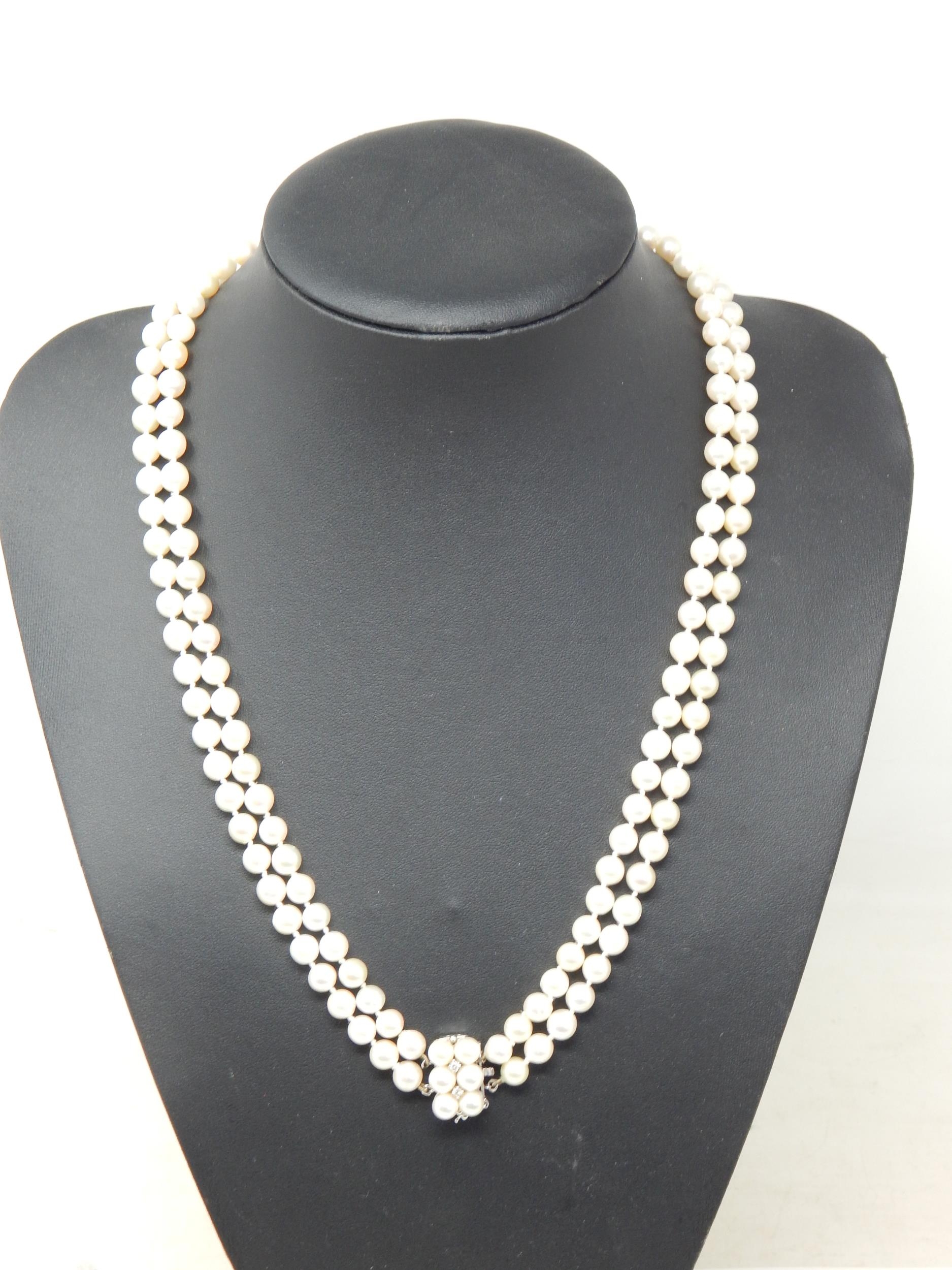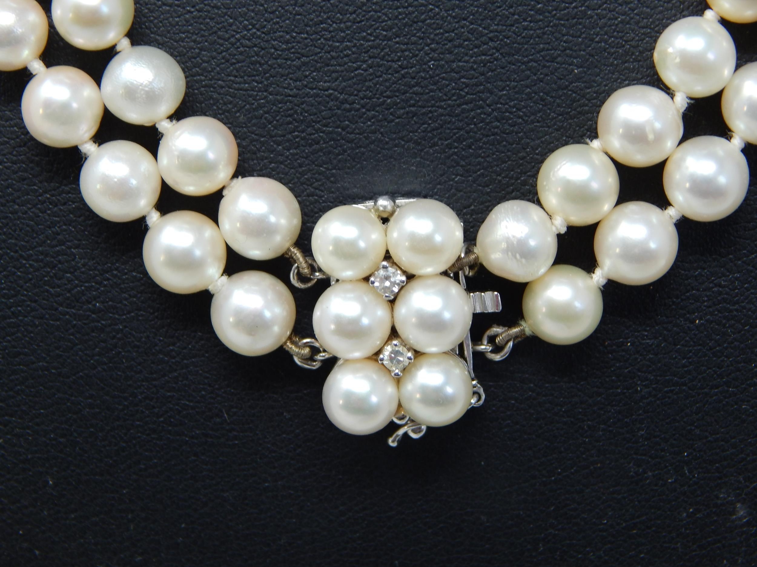 14ct White Gold & Diamond Set Cultured Pearl Two Strand Necklace: Valued @ £2750.00