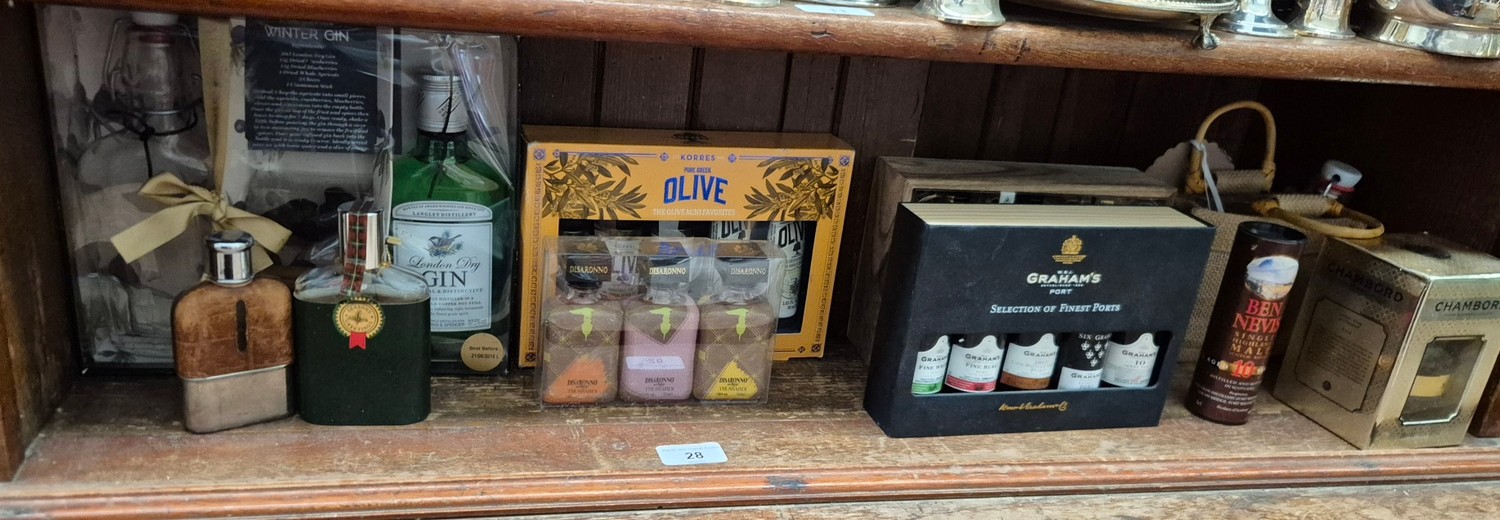 A quantity of miniature alcoholic gift sets, miniatures and half bottles, including port, Disaronno, gin, etc