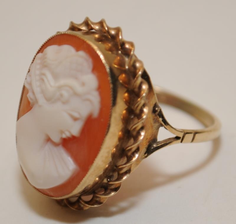 9ct gold bracelet (8", 3g) together with a 9ct gold cameo ring (size Q 1/2, total weight 4.4g)
