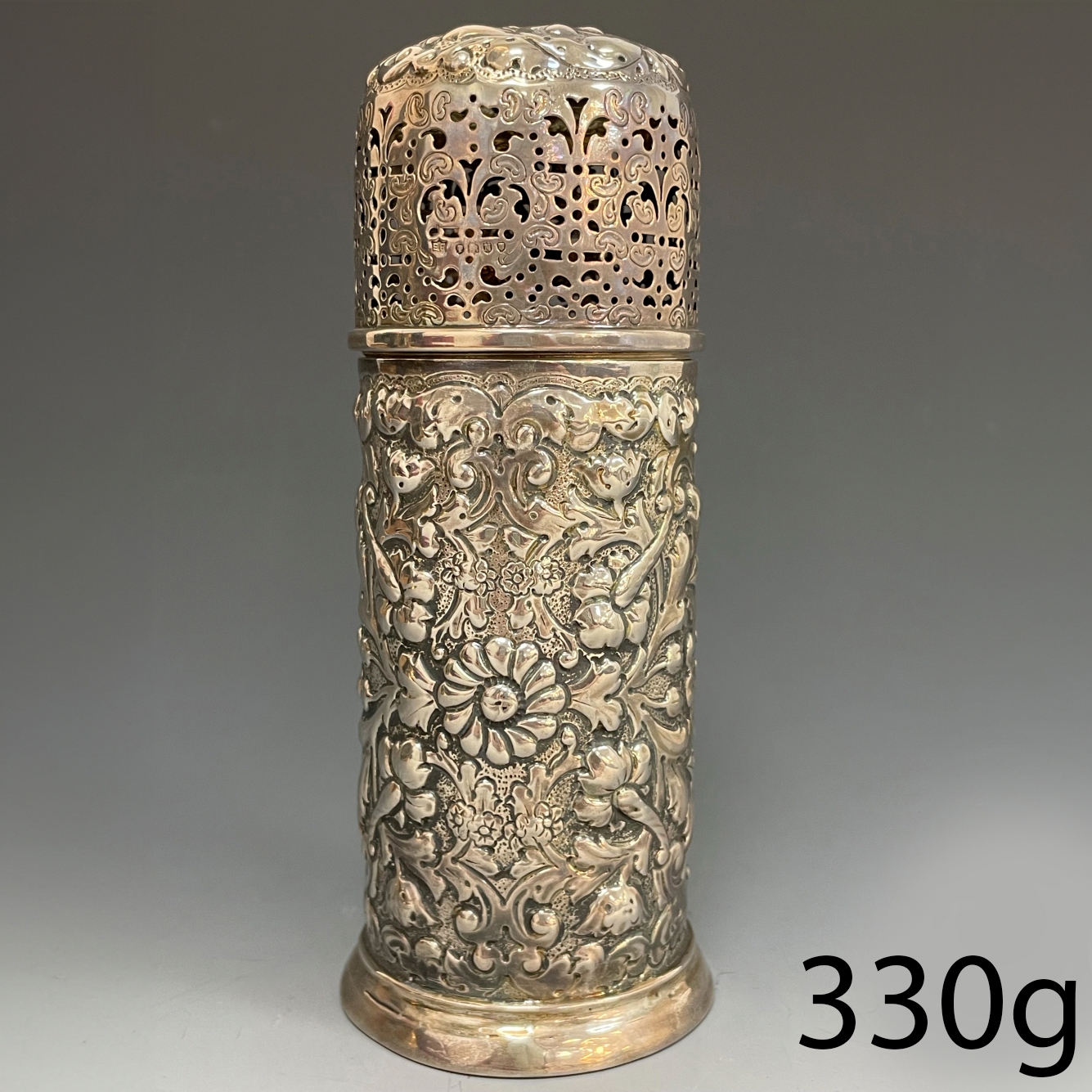 FINE ANTIQUE SILVER SUGAR CASTER, London 1888.
