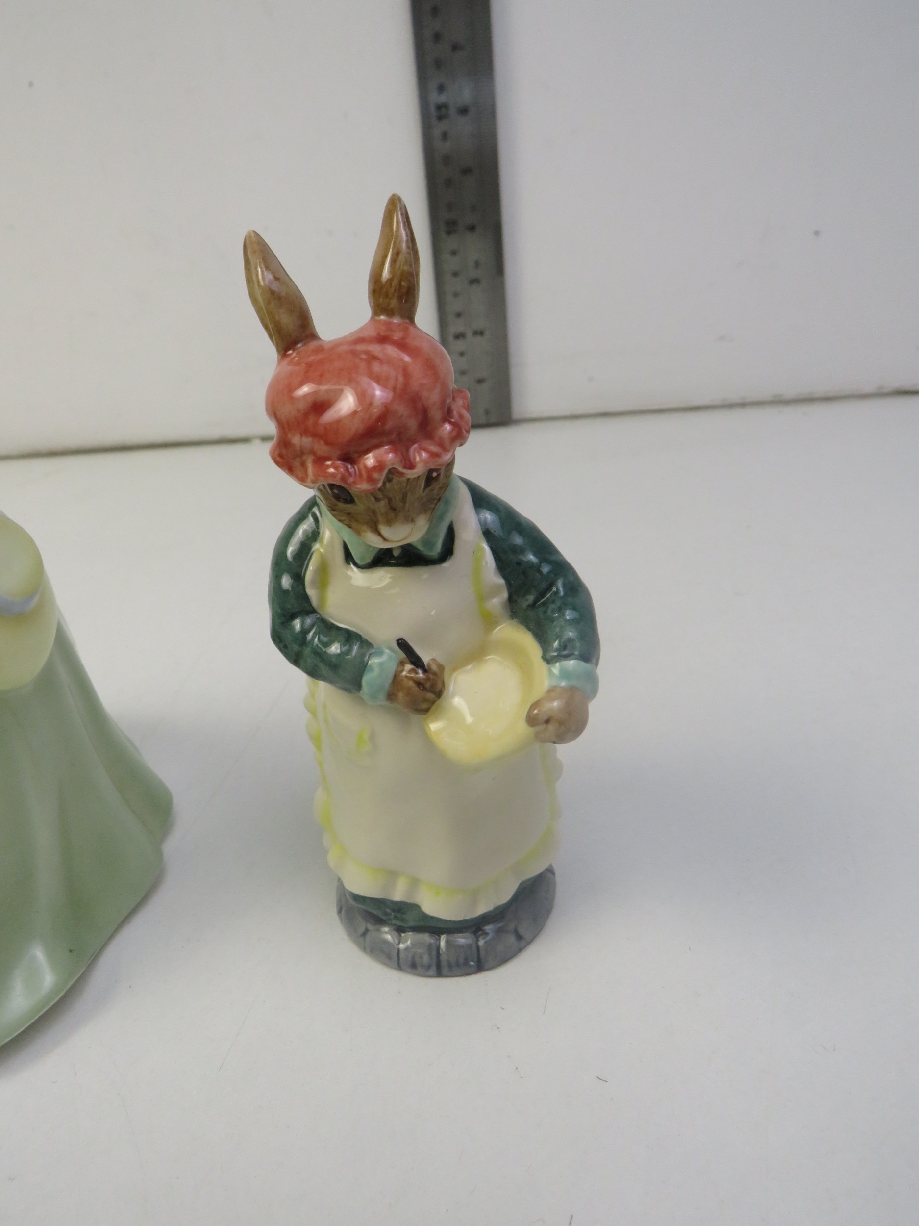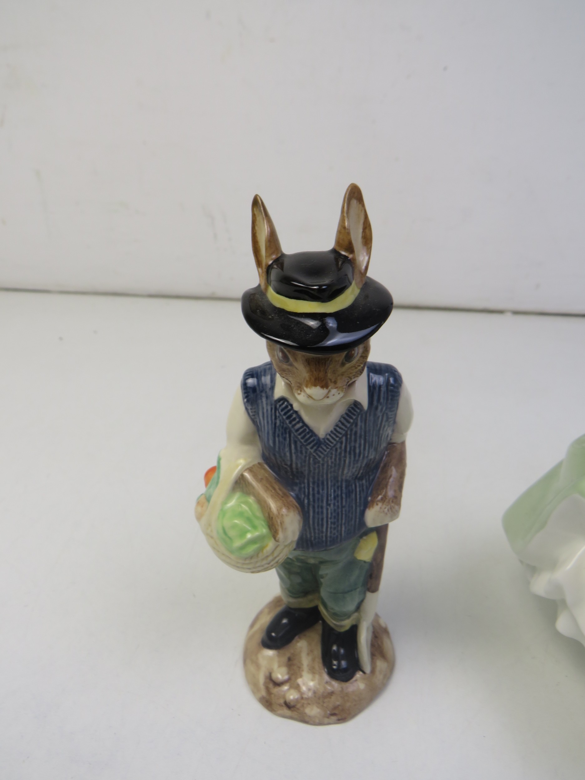Collectable Royal Doulton 'fair lady', beswick mrs rabbit and gardener rabbit