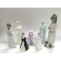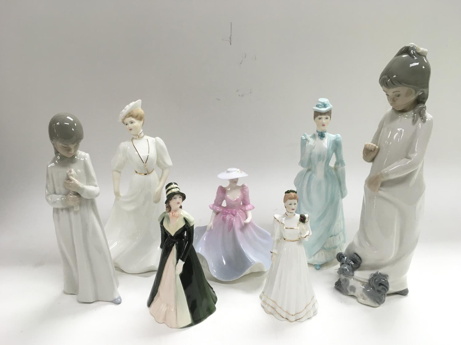 Seven digures of ladies comprising Coalport and Lladro style examples.