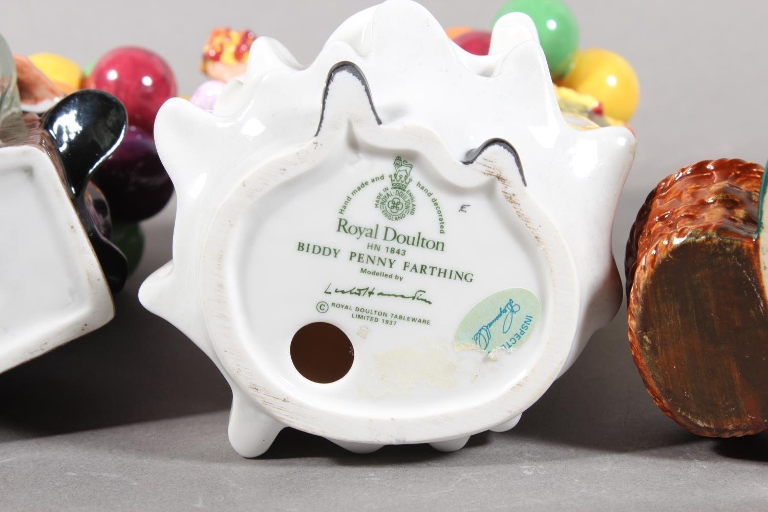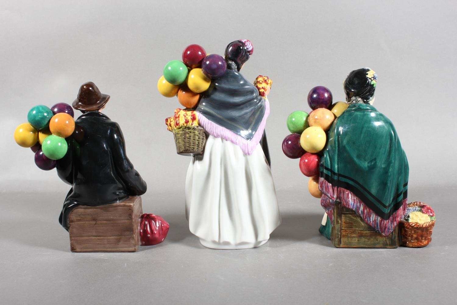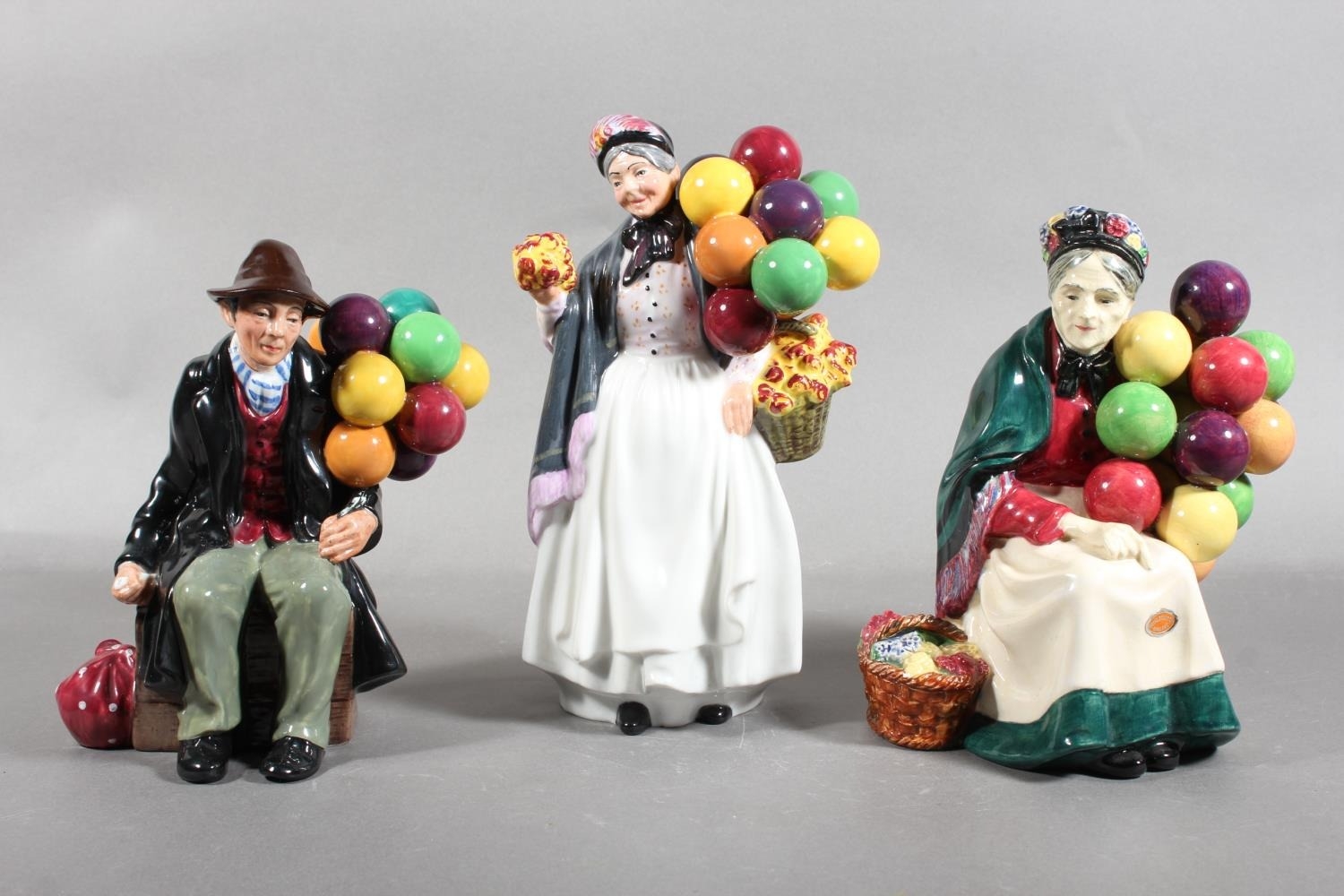 Royal Doulton figures HN1315 The Old Balloon Seller, HN1843 Biddy Penny Farthing, and HN1954 The Balloon Man. (3)
