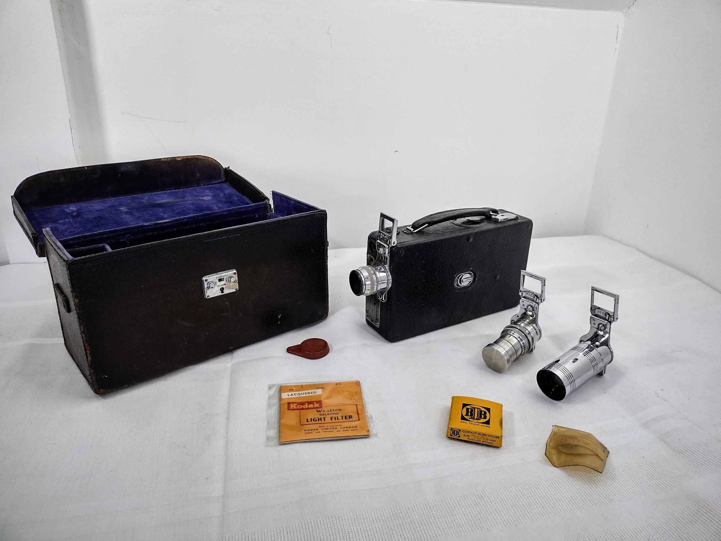 Vintage 1930s Boxed Cine Kodak Model K; Eastman Kodak Company with Spare Lenses and Various Accessories