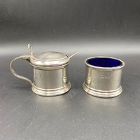 Two sterling silver salts/trinket pots with cobalt blue glas...