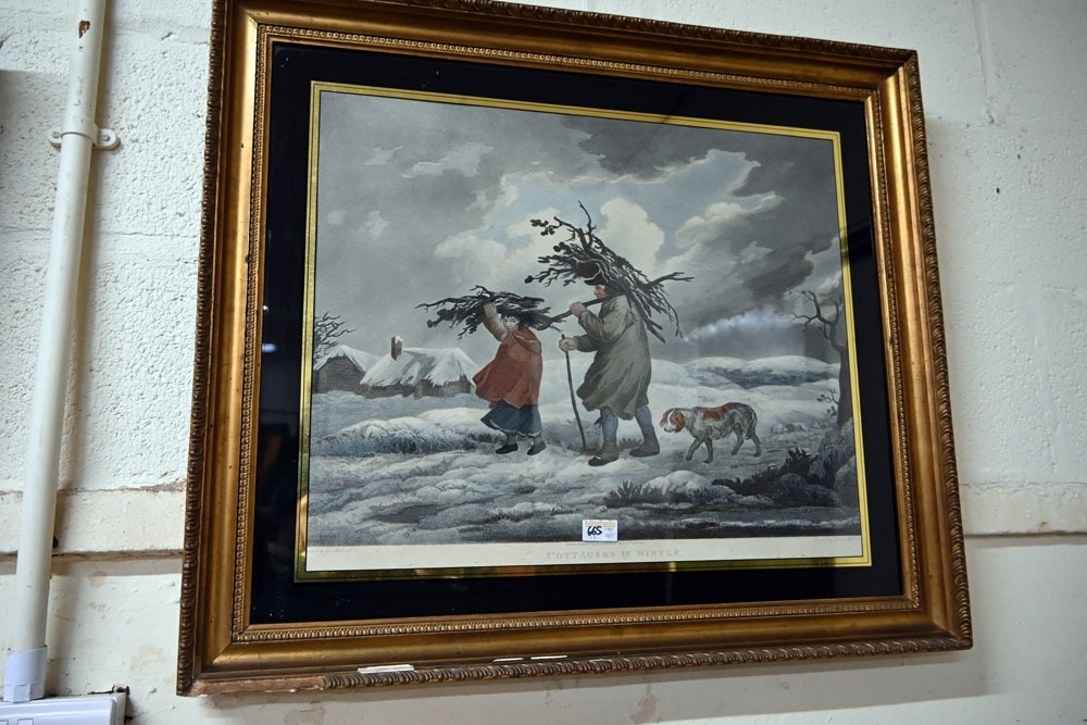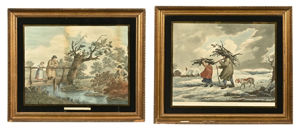 Two early 19th century engravings by Thomas Williams, after George Morland "Cottages in Winter" frame 65 x 75 cm and "Summer Amusement", frame 62 x 745 cm.