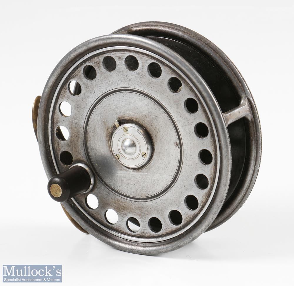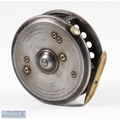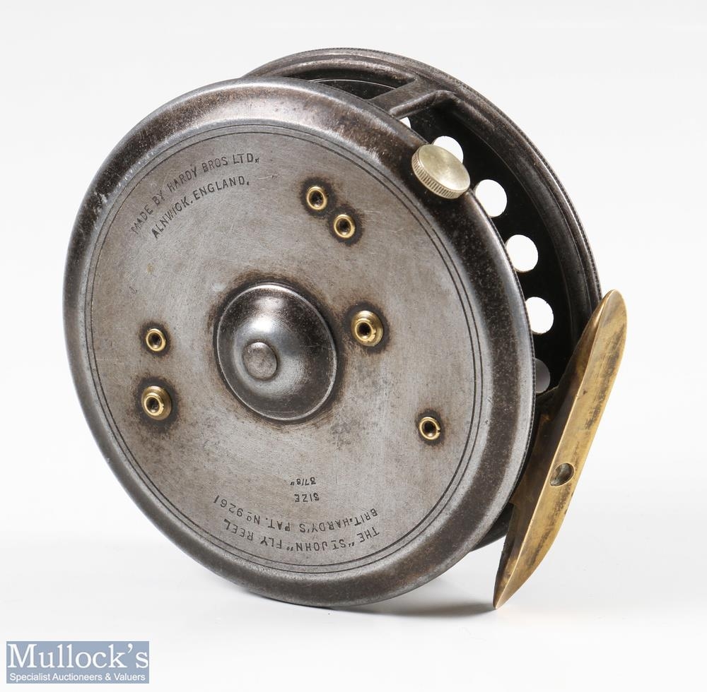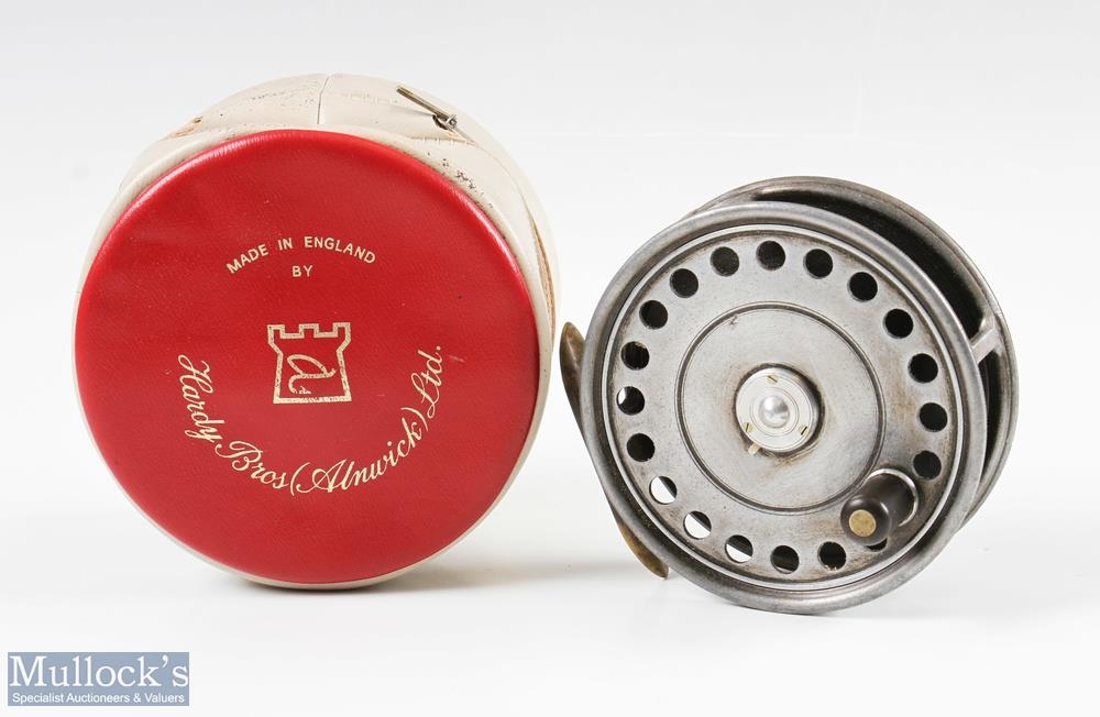 Hardy Bros St John 3 7/8" light salmon/trout alloy fly reel with brass ribbed bullet foot, rim tensioner, quick release spool latch, surface wear apparent, runs freely, comes with rarer maker's red zip padded case