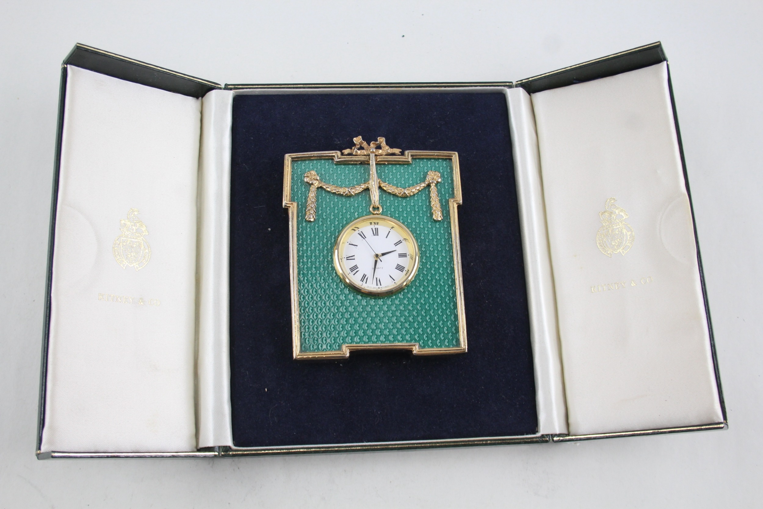 Kitney & Co. Gold Plated 925 Silver Fronted Quartz Table Clock