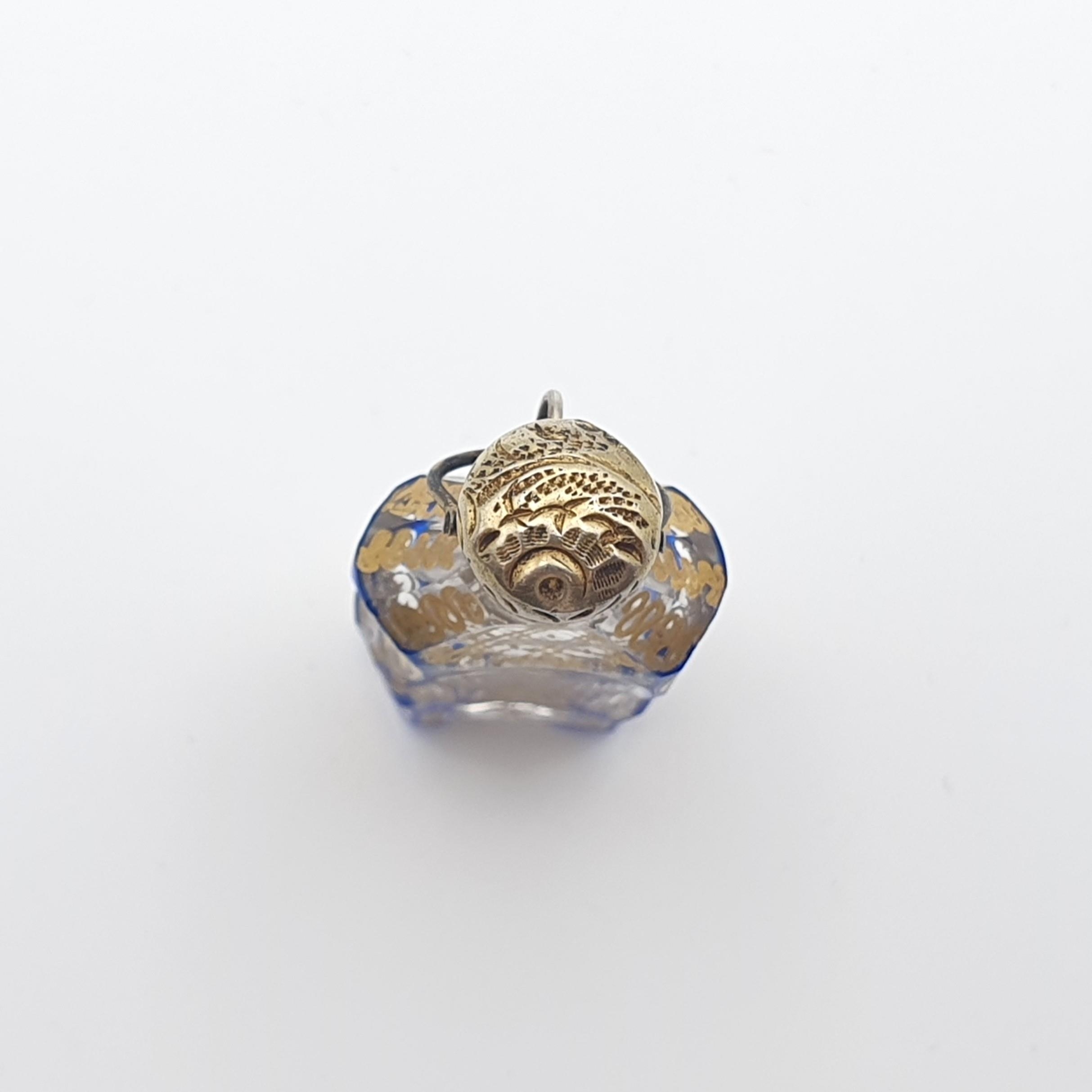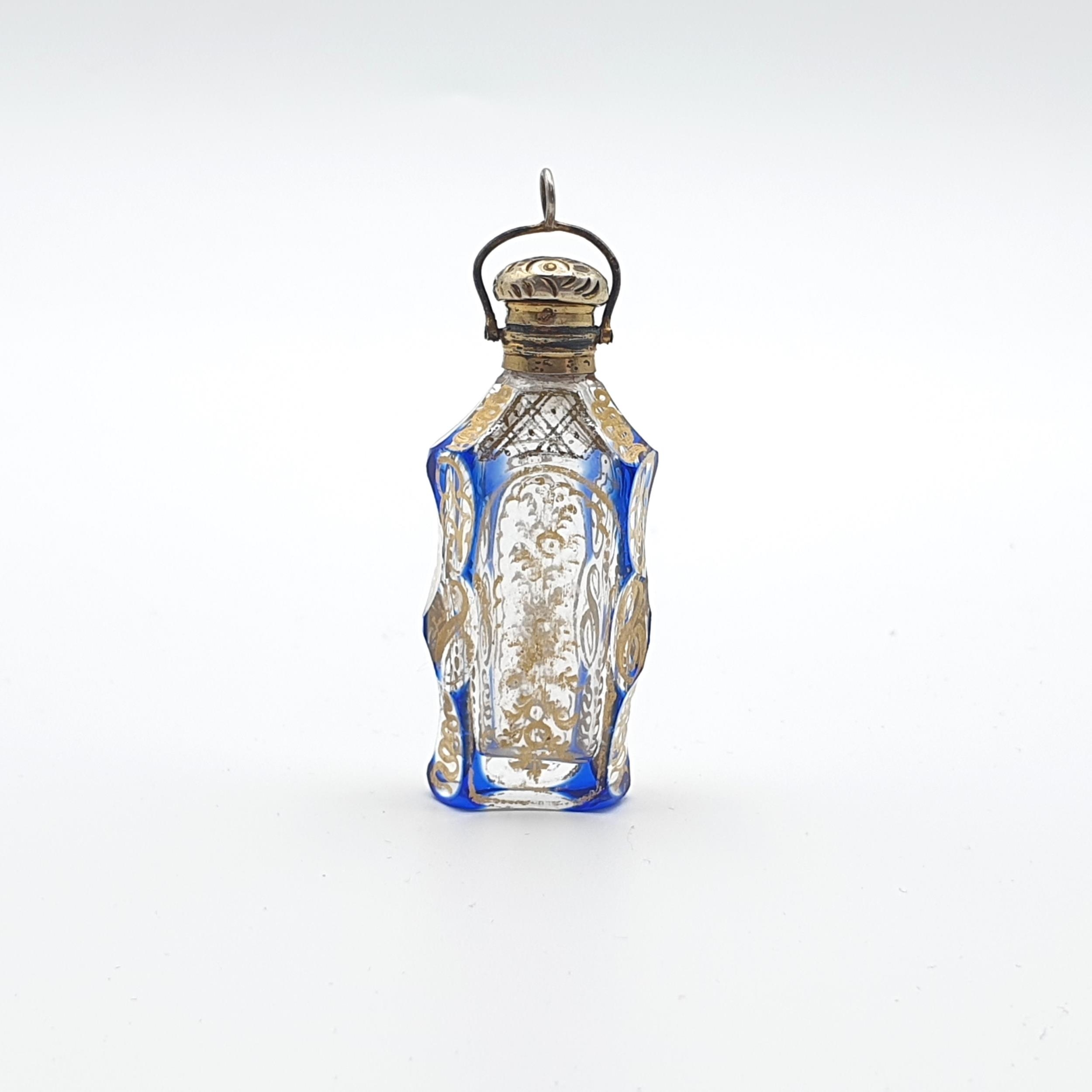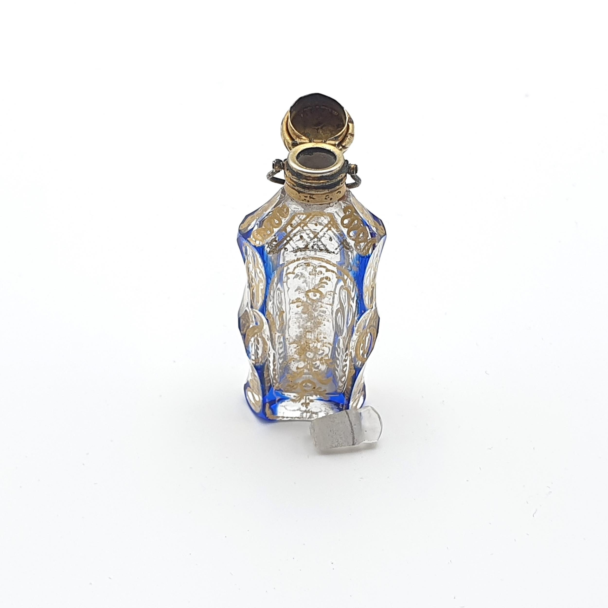 A cut glass Scent Bottle with blue and gilt decoration, 2 inches