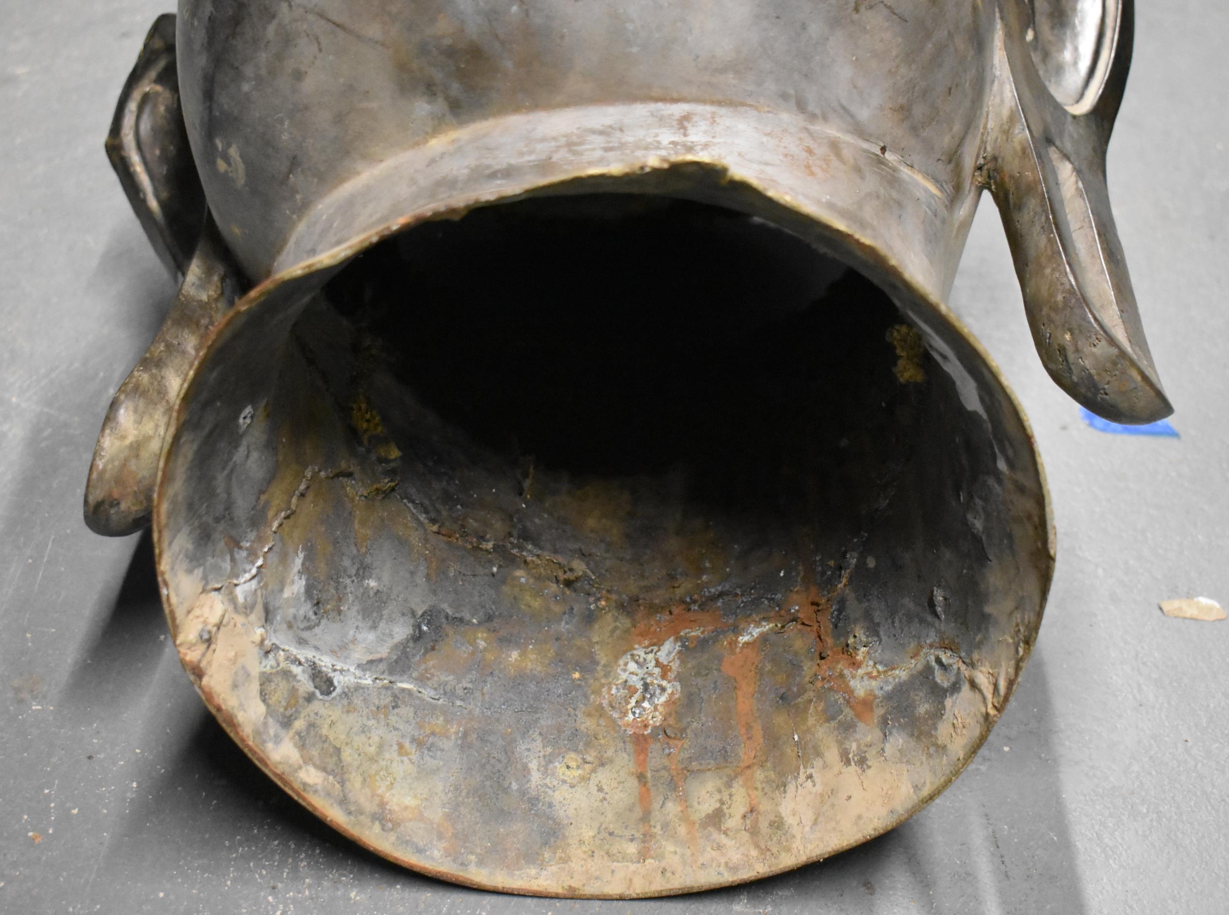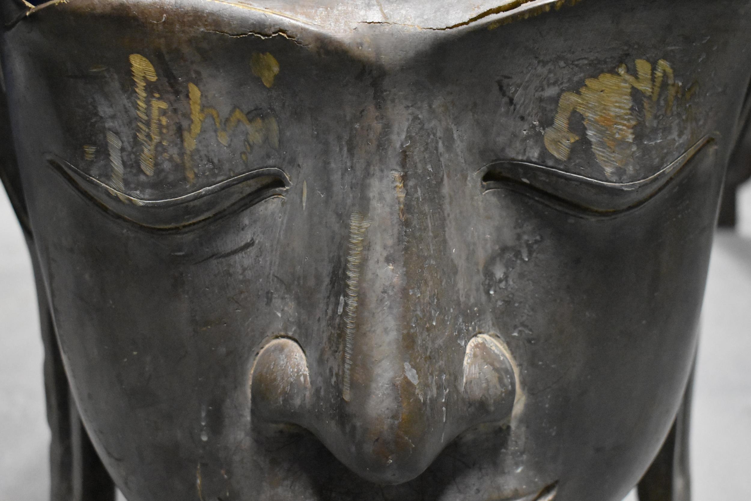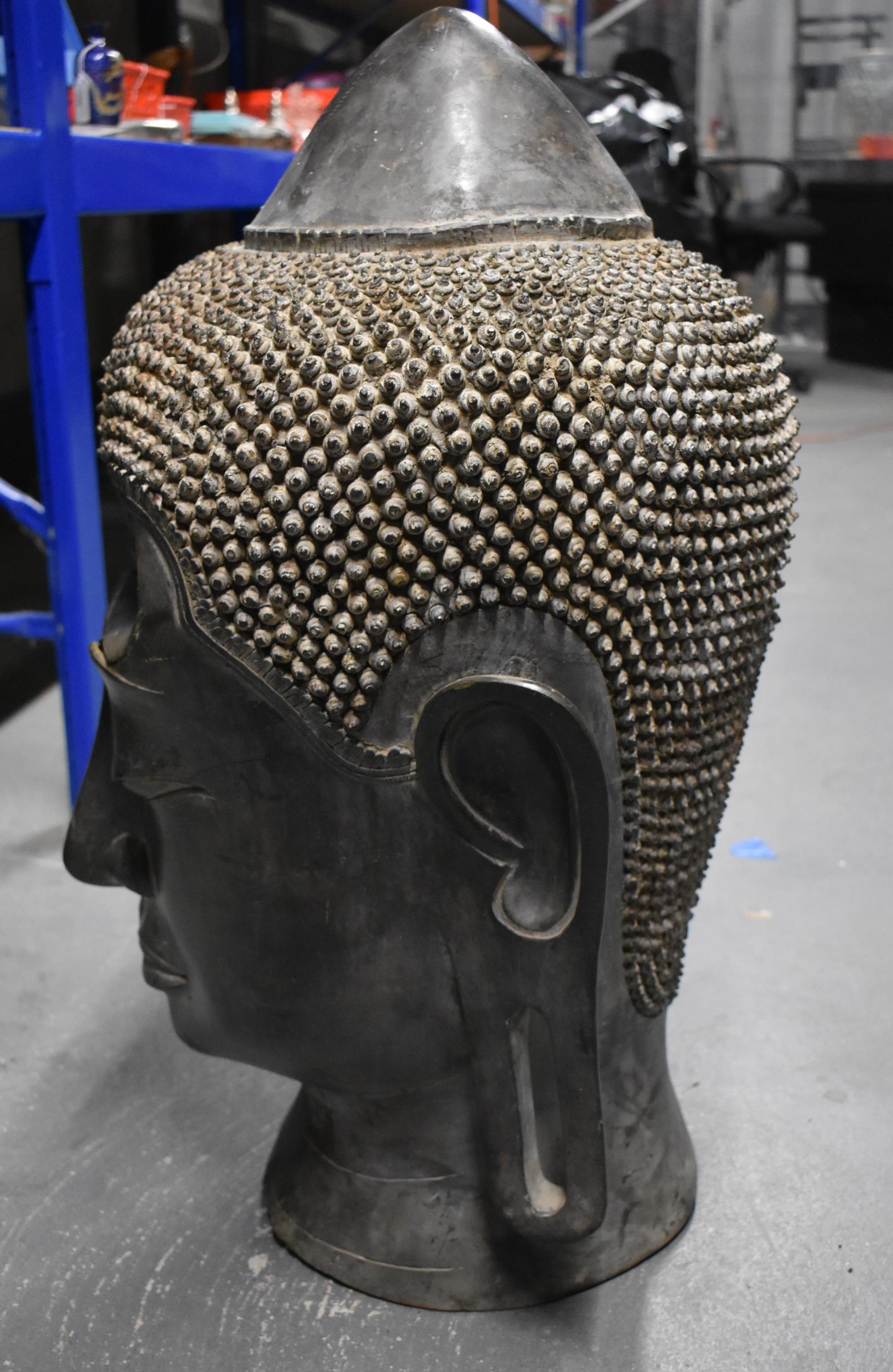 A MONUMENTAL ANTIQUE SOUTH EAST ASIAN THAI BRONZE BUDDHA HEAD. 75 cm x 37 cm x 35 cm.