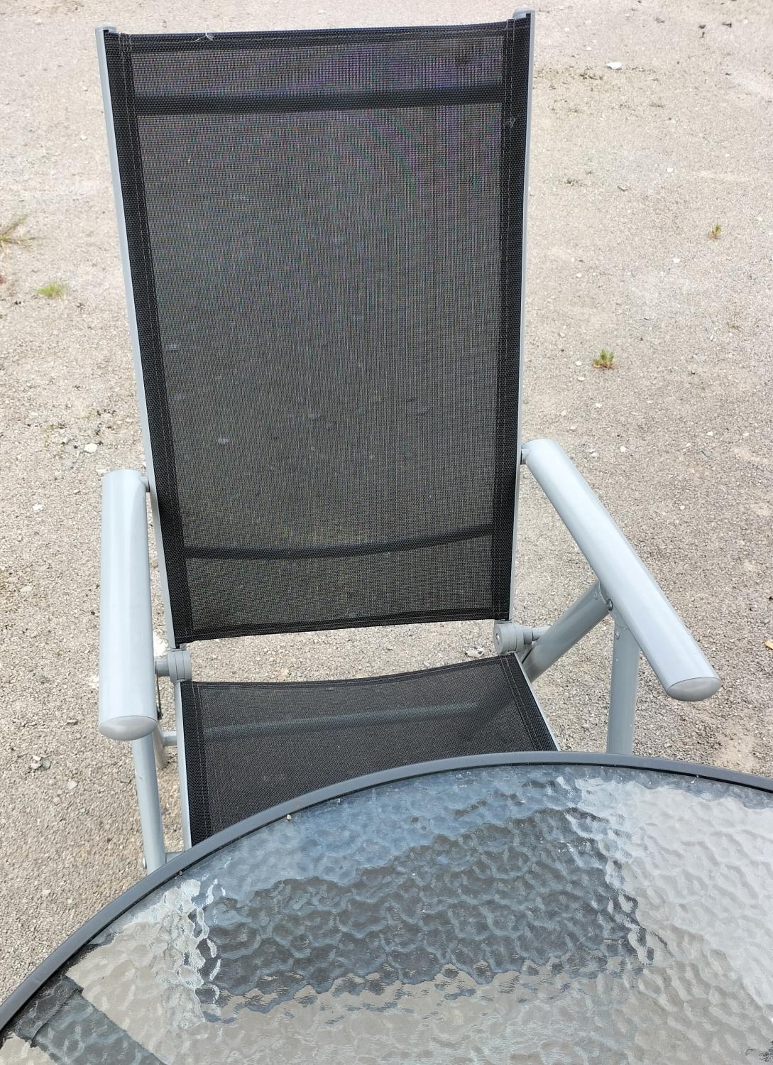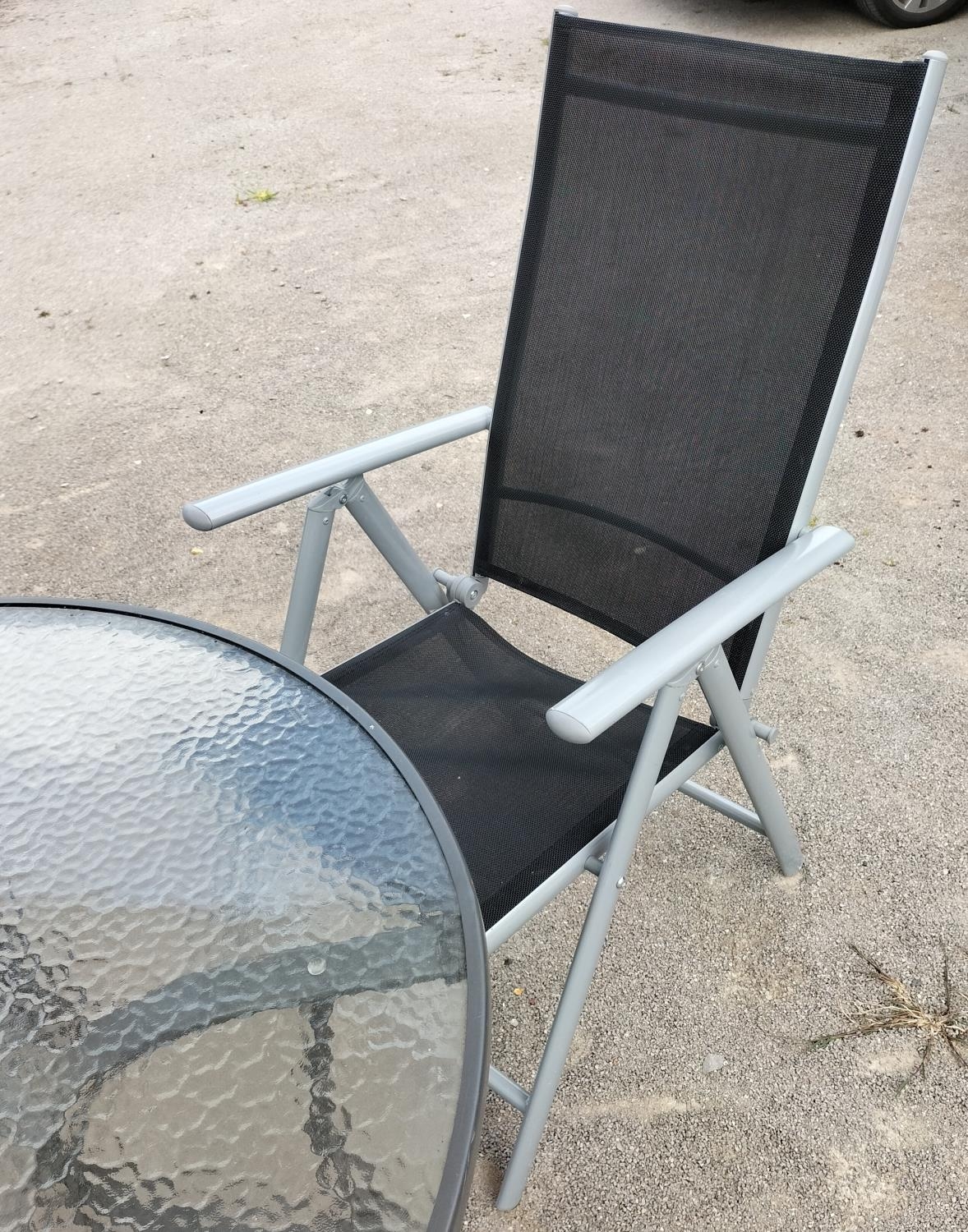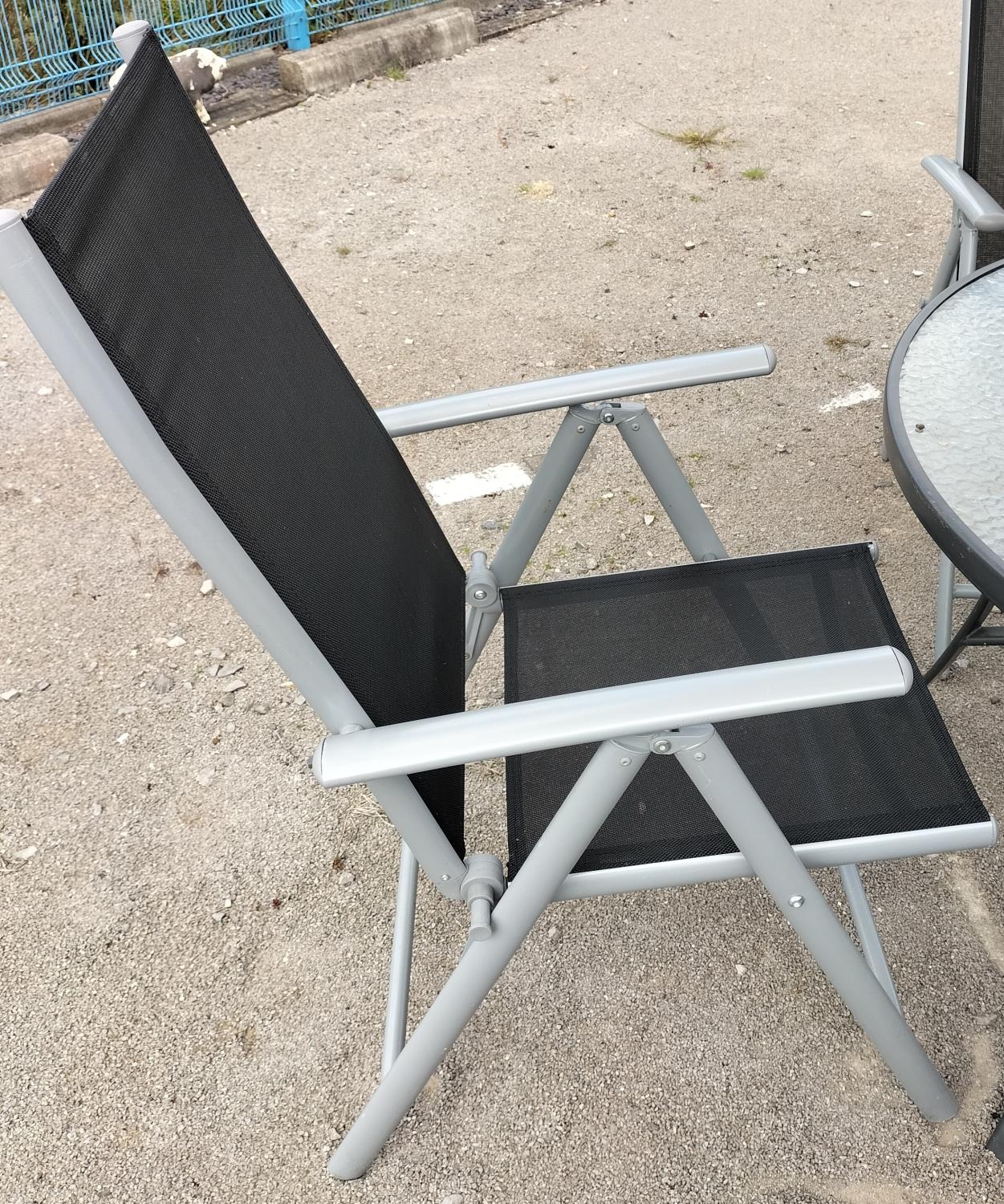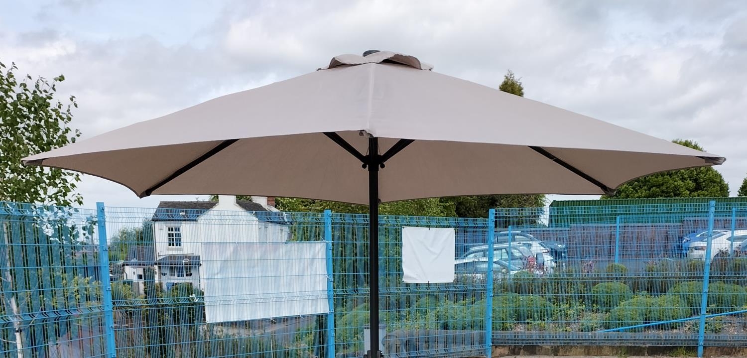 Four Seat Garden Table and Chairs with Wind Up Umbrella. This Lot is Collection Only.