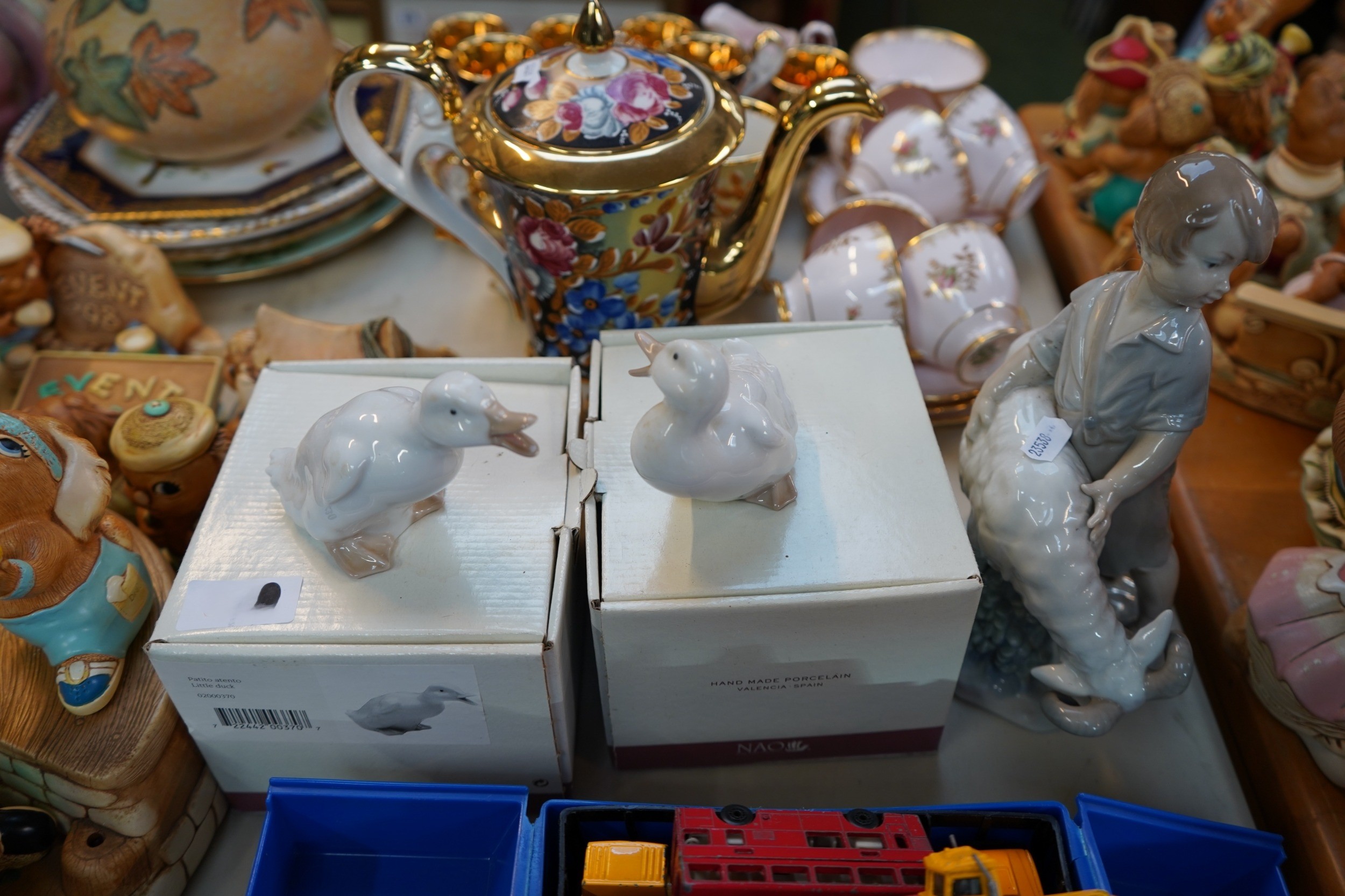 Nao figure of a boy with Ram and 2 boxed Nao ducks