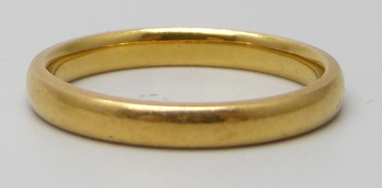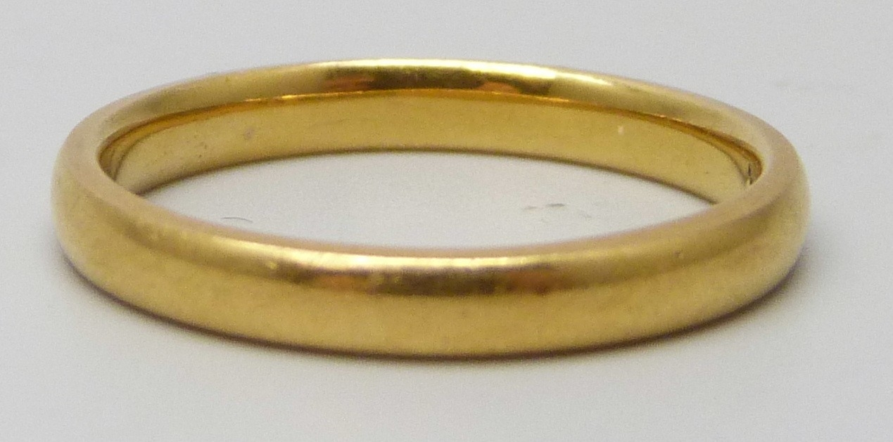 A 22ct gold wedding band ring, 3.7g, O