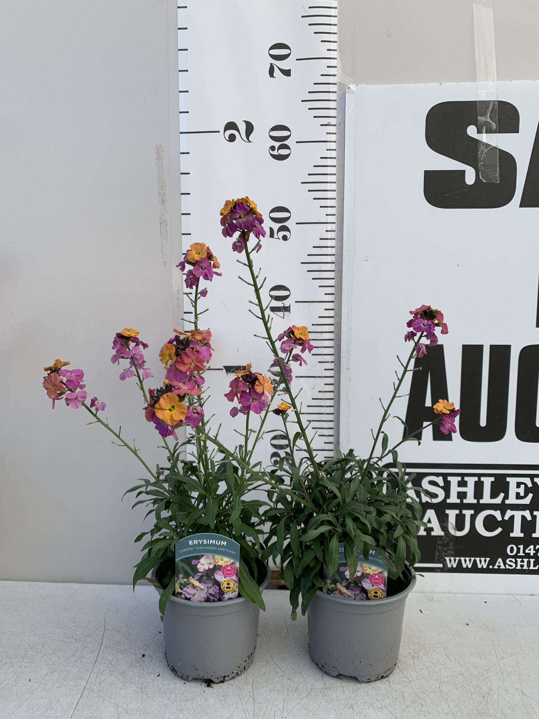 TWO ERYSIMUM 'SUN-KISSED AMETHYST'' IN 1 LTR POTS. APPROX 50CM TALL, TO BE SOLD FOR THE TWO
