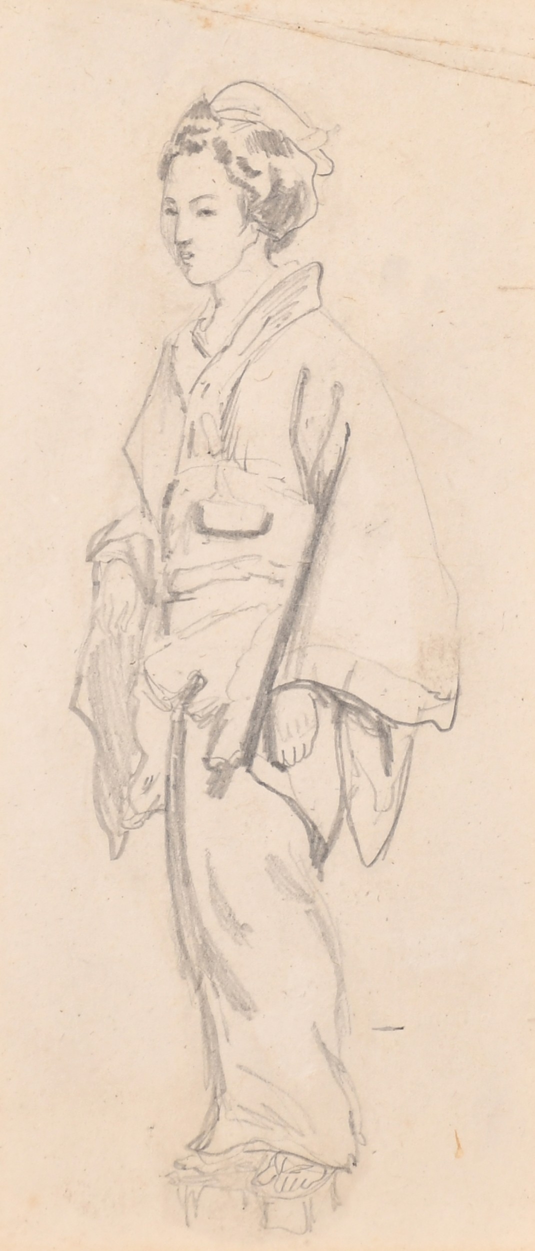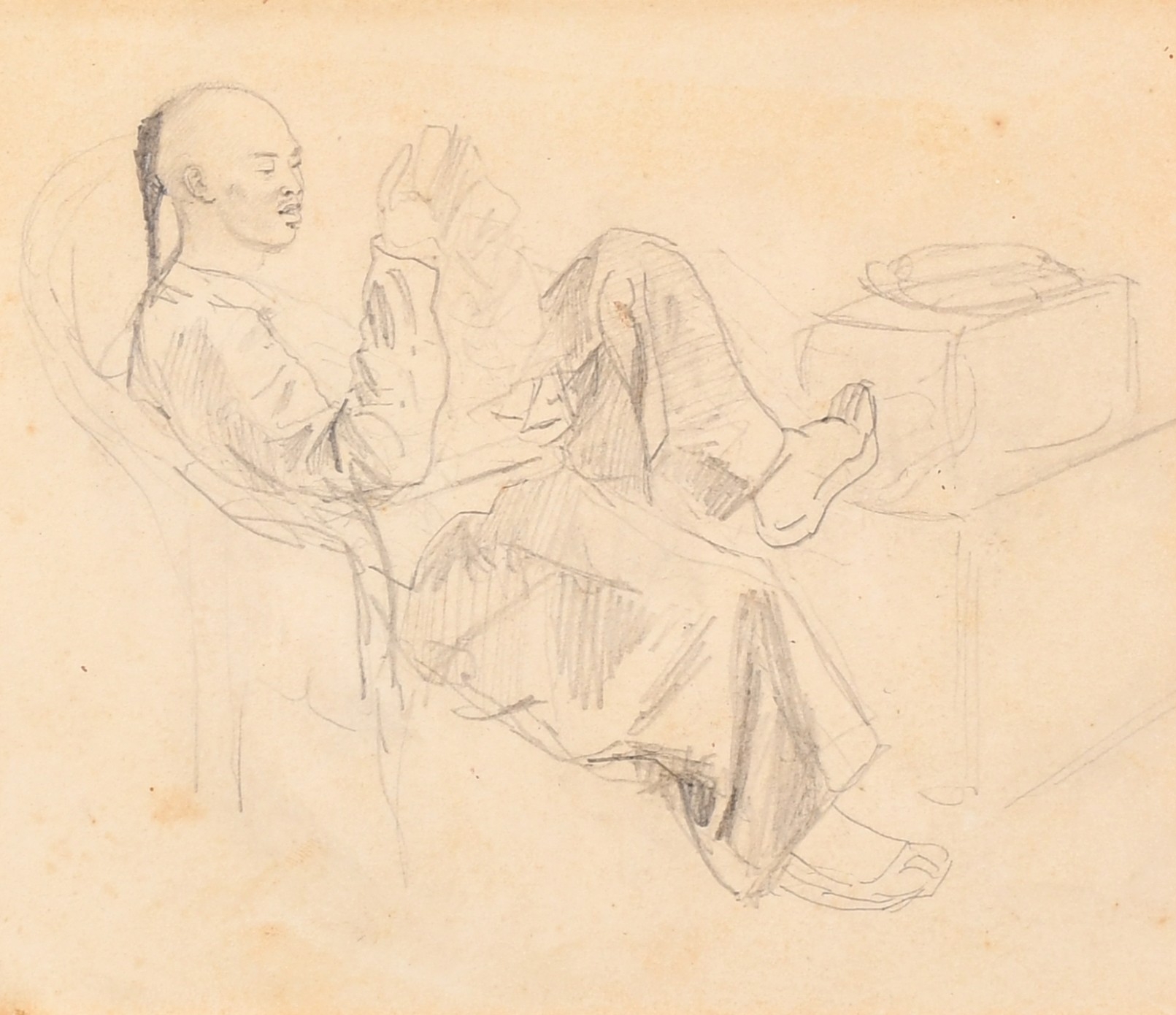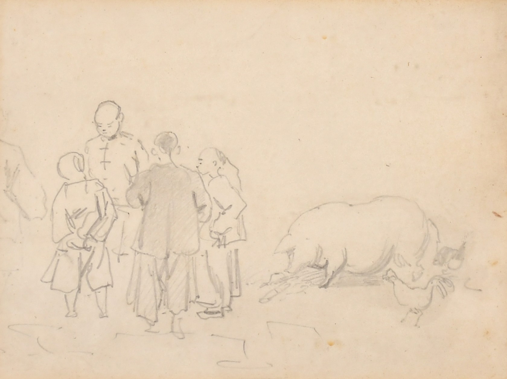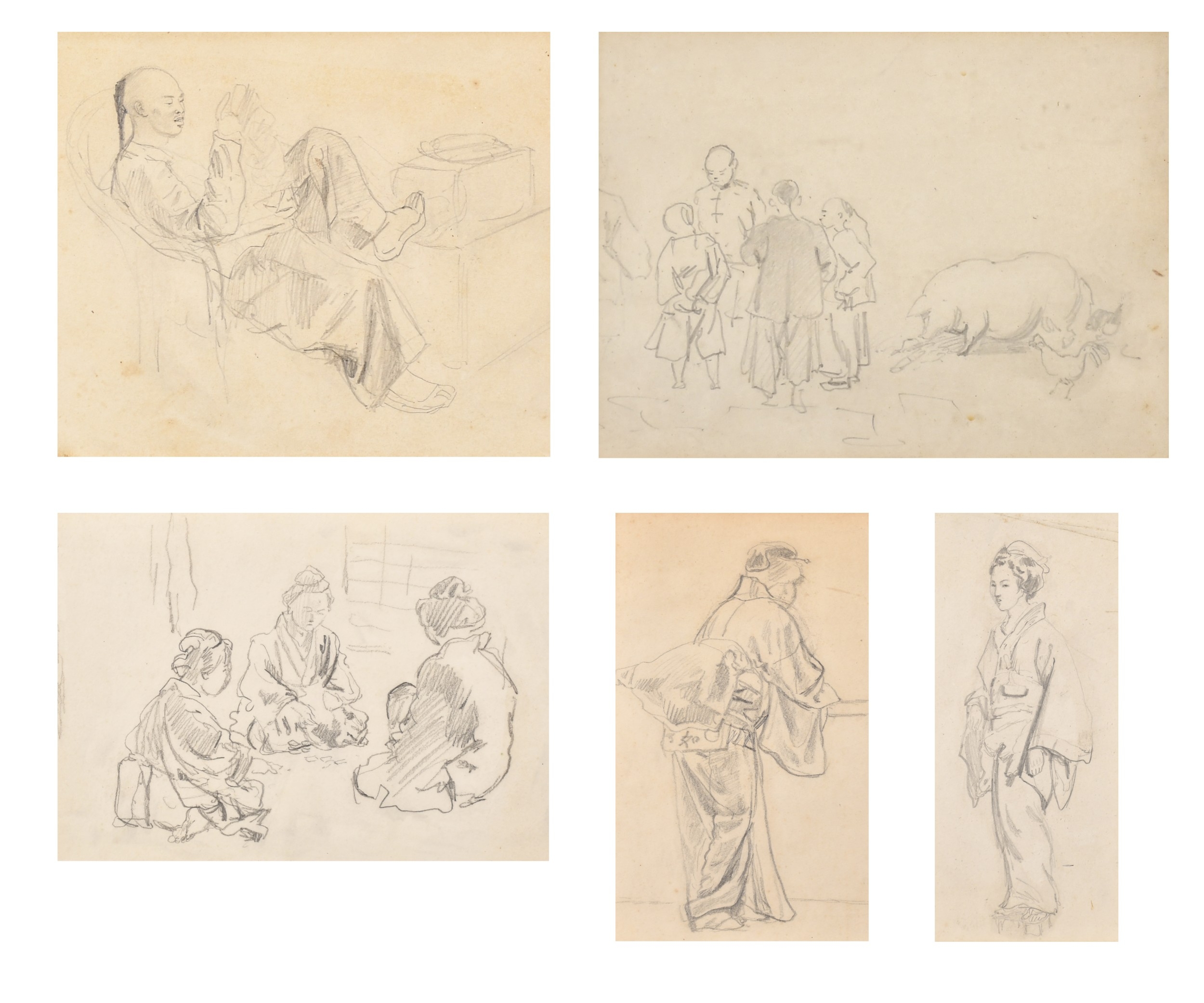Charles Wirgman (1832-1891) British. Chinese Figure Study, Pencil, 5.5" x 6.5" (14 x 16.5cm) and four other studies by the same hand (three unframed) (5)