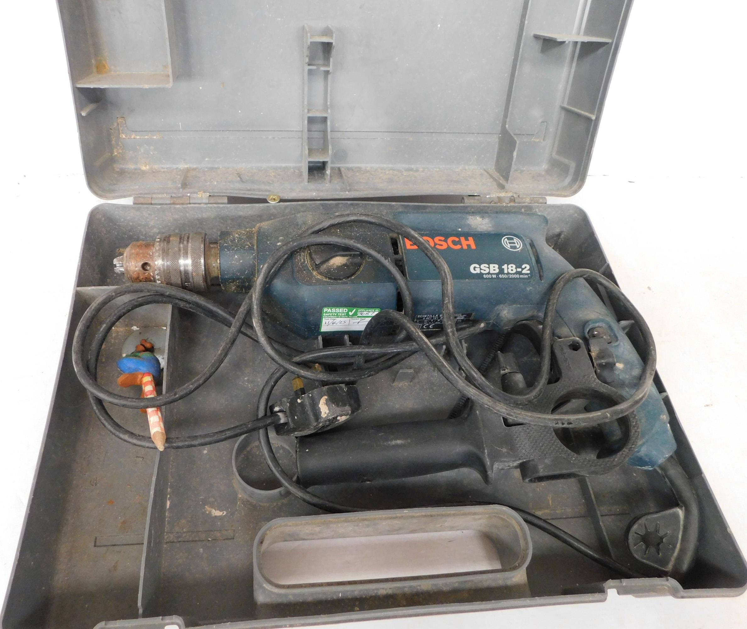 Cased Bosch GSB-18-2 hammer drill - unchecked