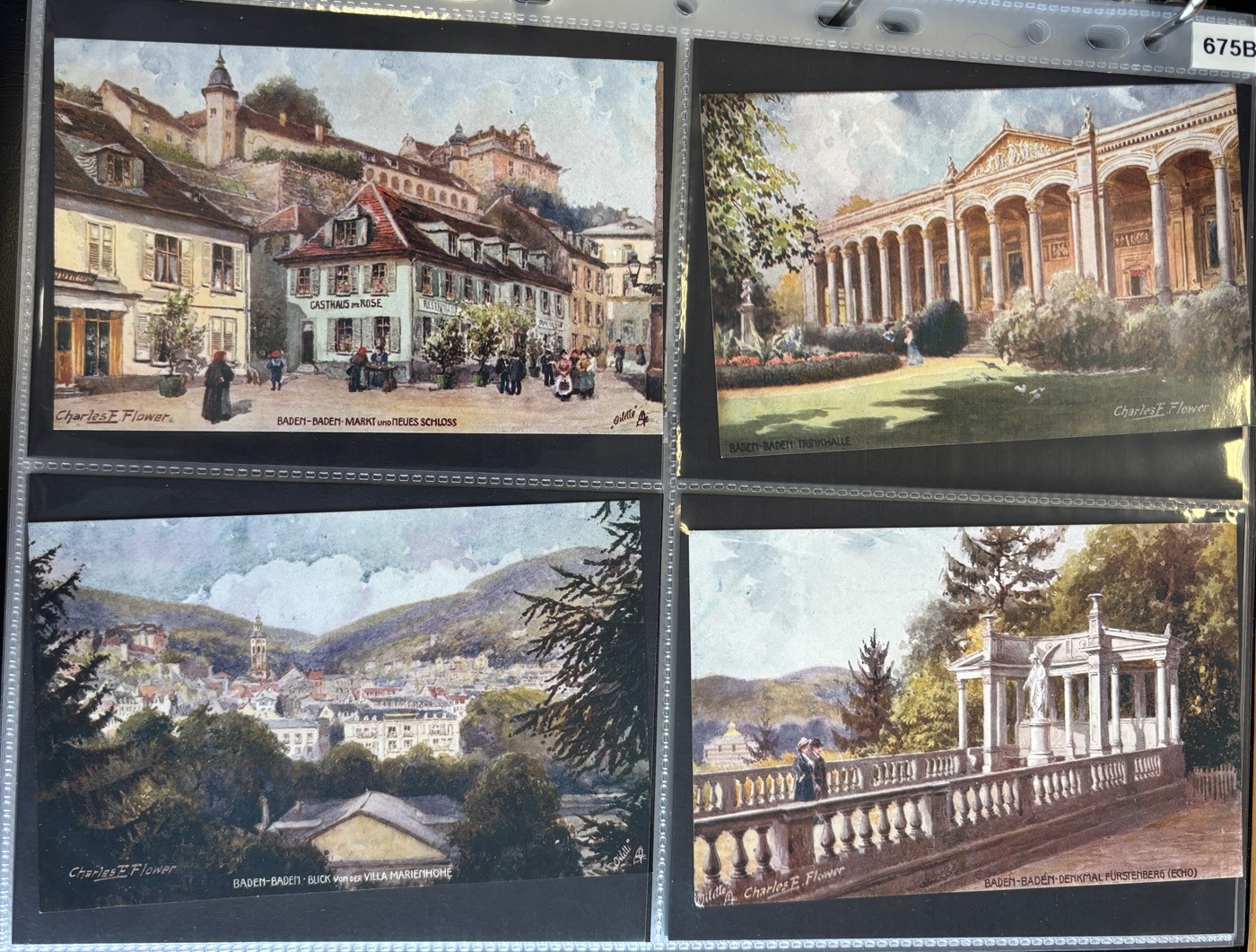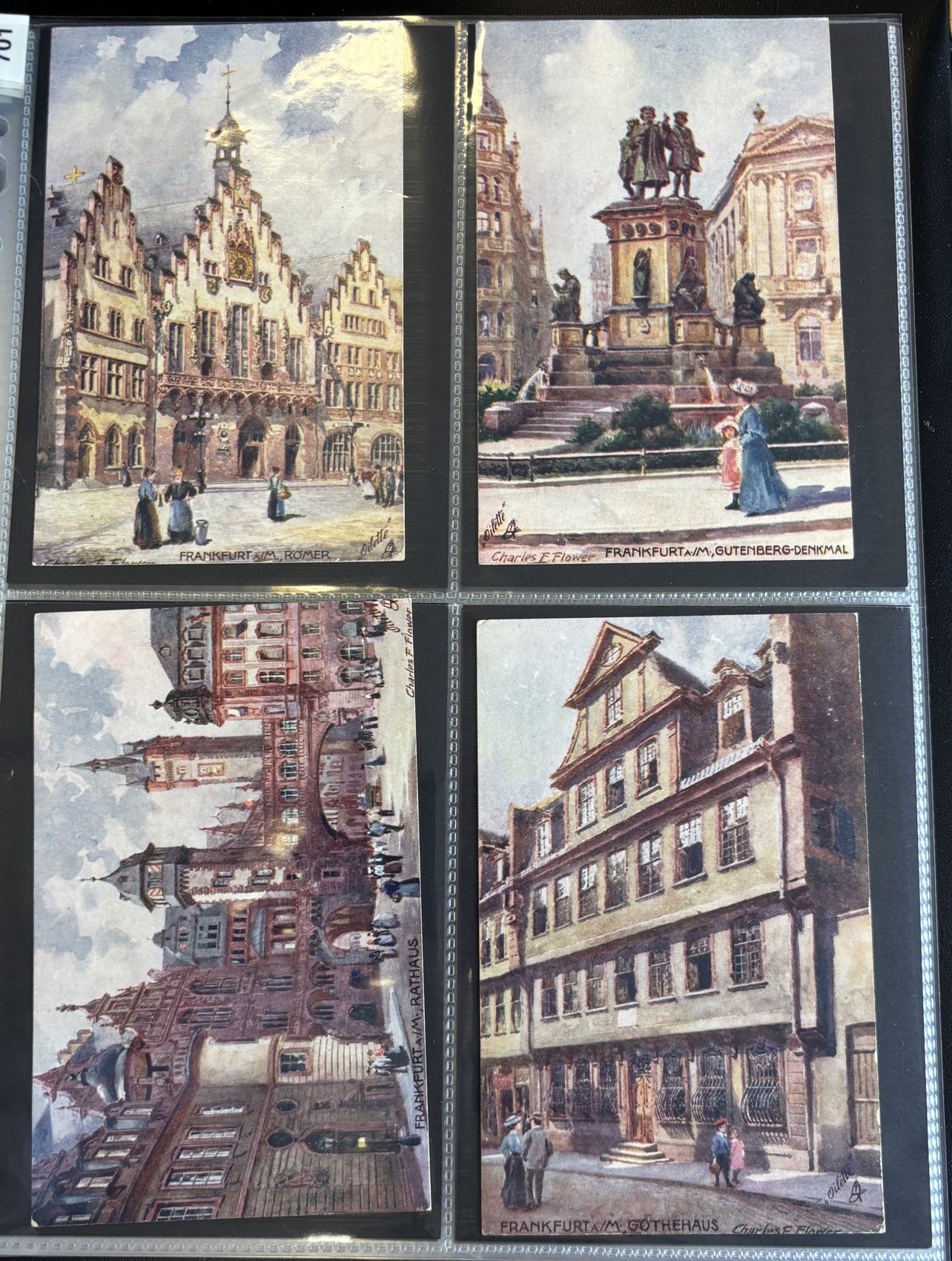 Artists. Charles Flower coln. of German cards, with urban scenes in sets/part sets in 2 modern album with slipcases. Qty. Approx 300+. (2V)
