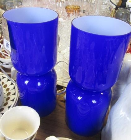 PAIR OF MODERN GLASS TABLE LAMPS