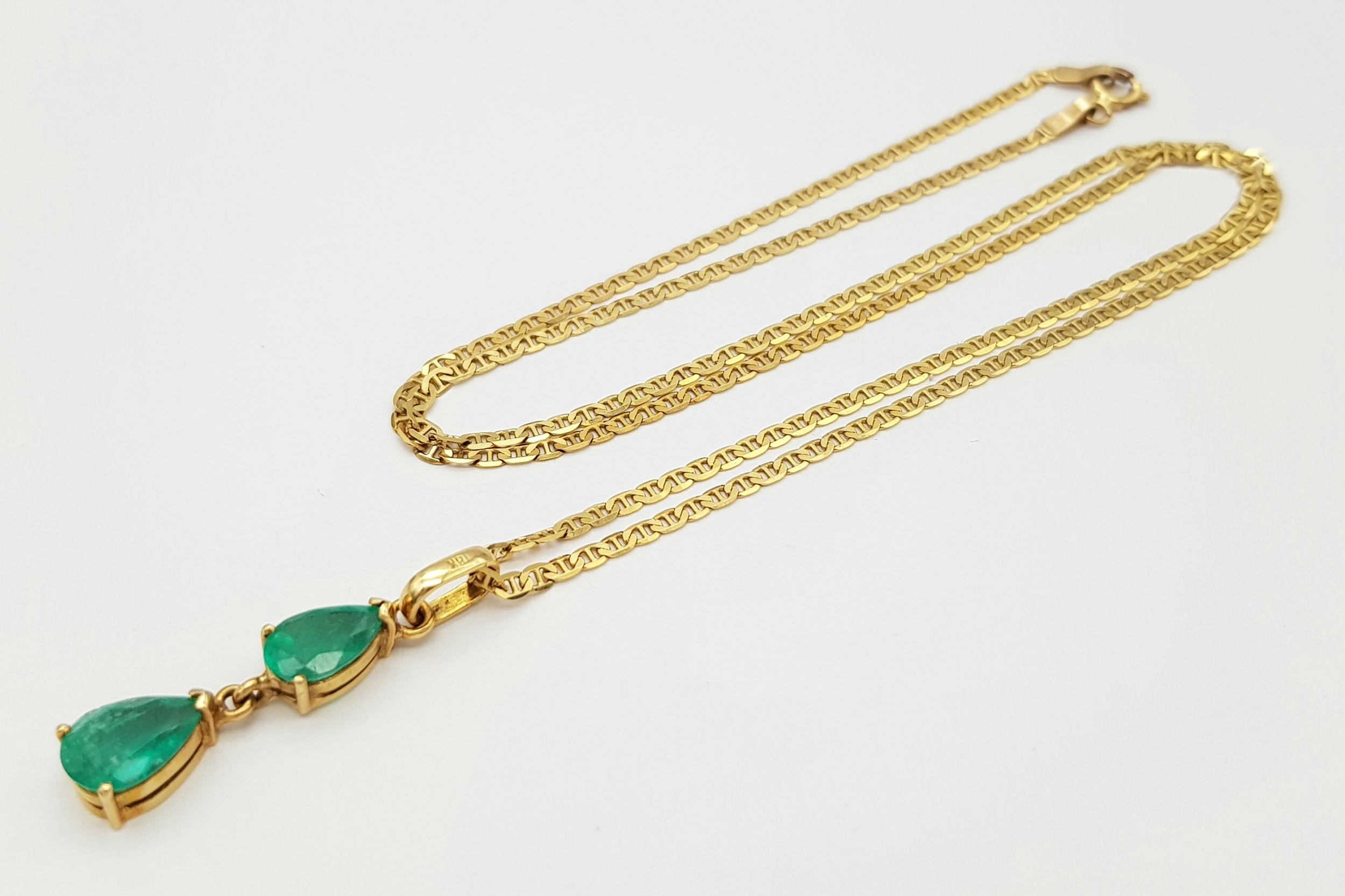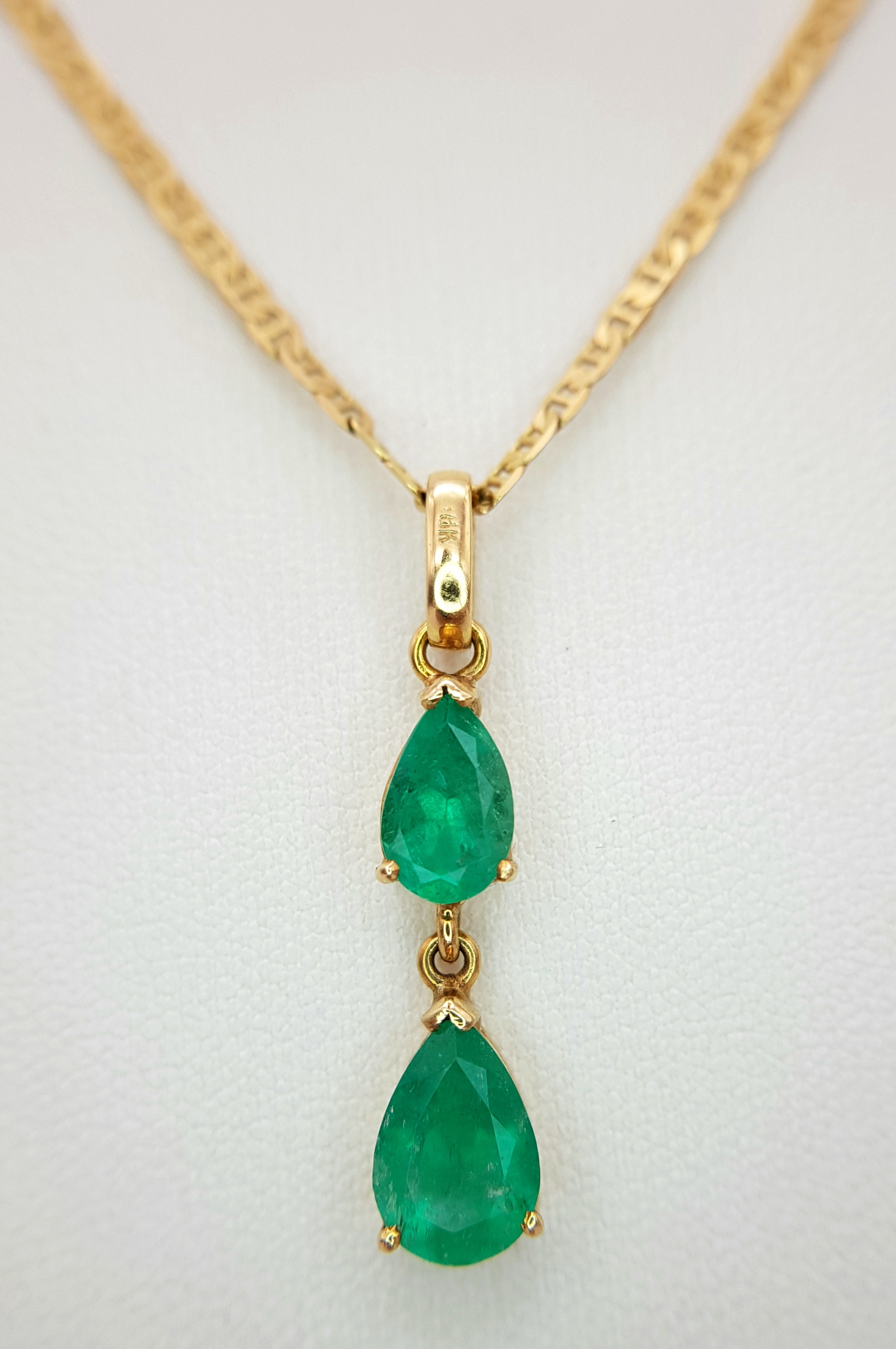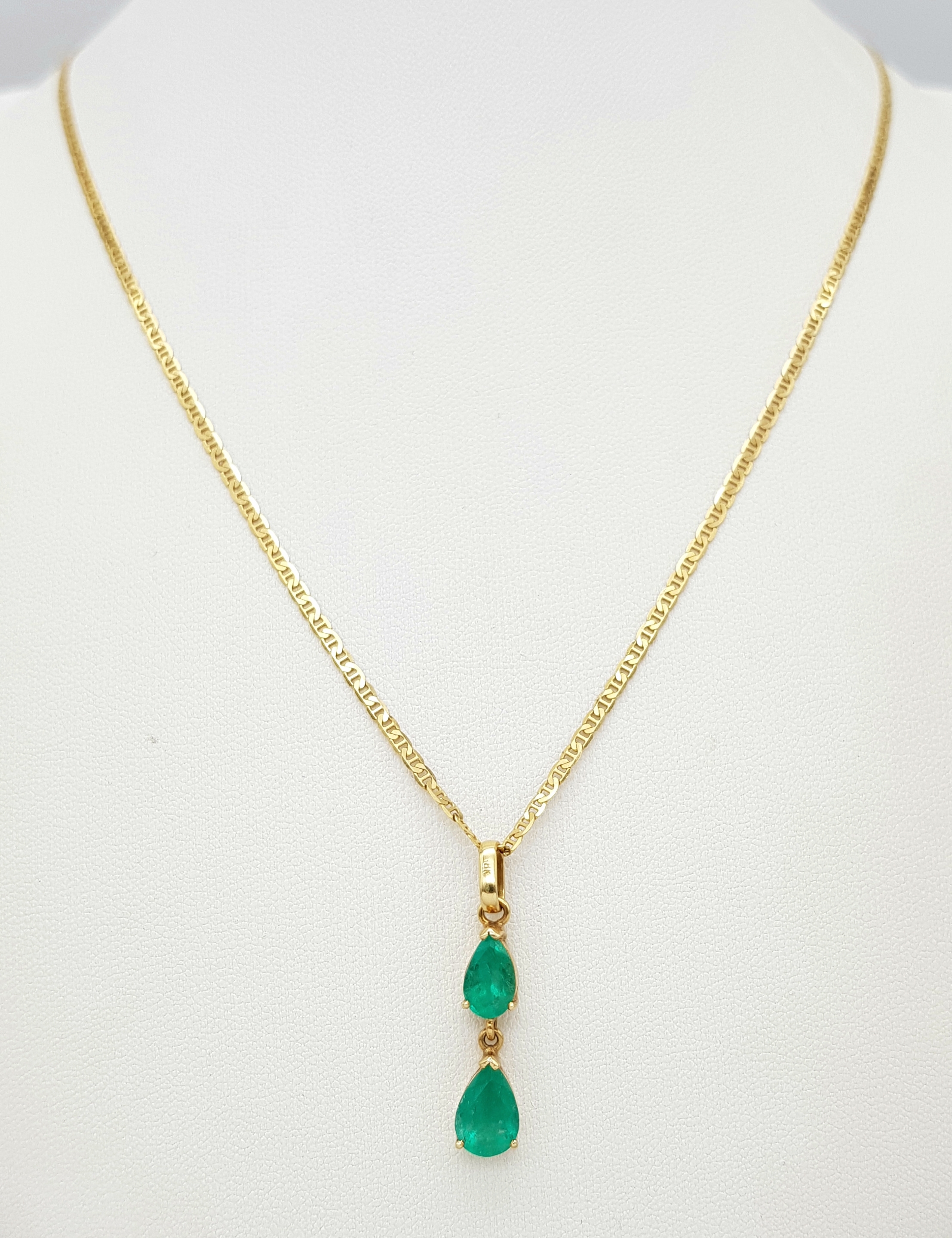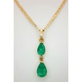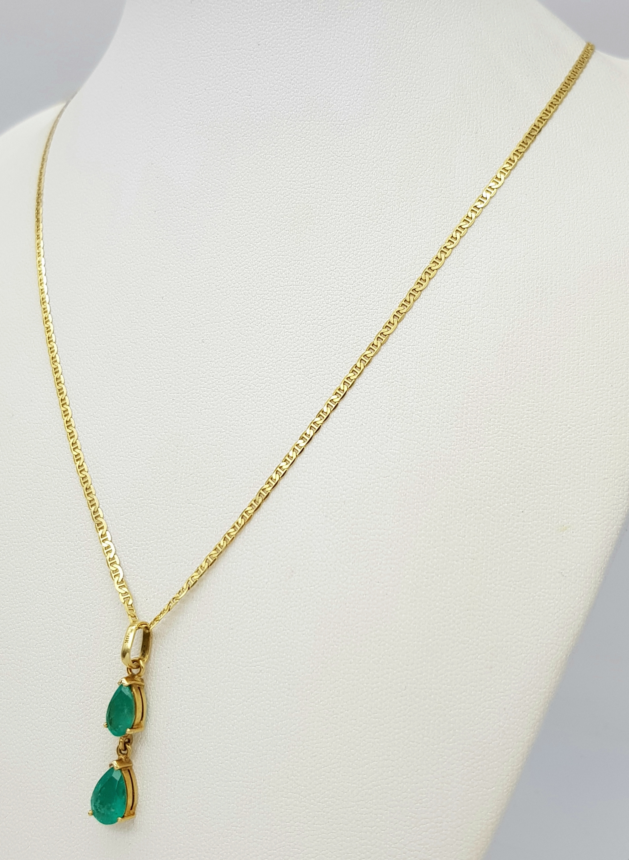 An 18K Yellow Gold Necklace with Emerald Two Stone Pendant. 2ctw of pear cut emeralds. 3cm and 48cm. 5.45g total weight. Ref: 15186205.