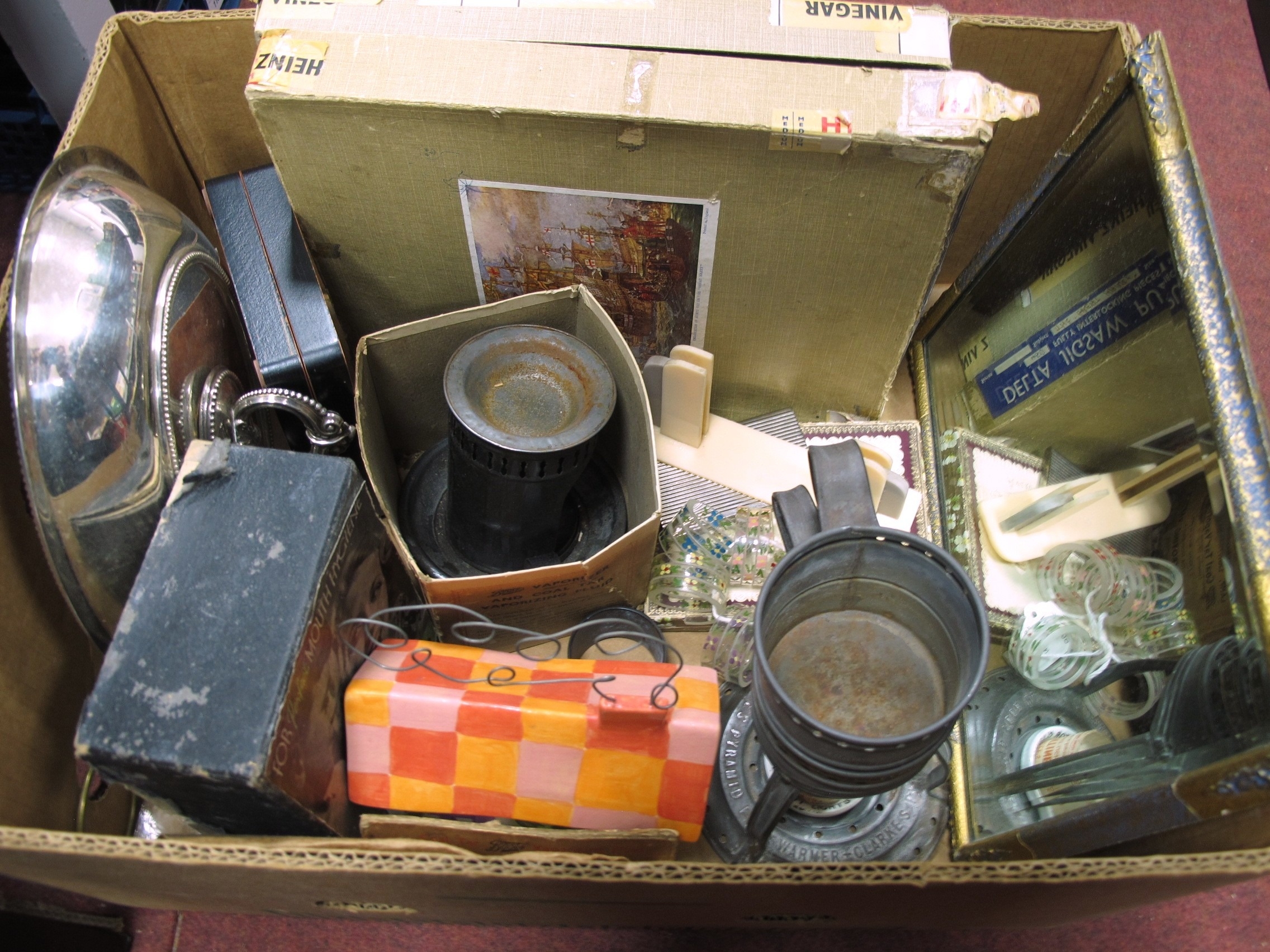 Delta Wooden Jigsaw, freestanding mirror, vaporiser, hygienator, thermometer, napkin rings, etc:- One Box.