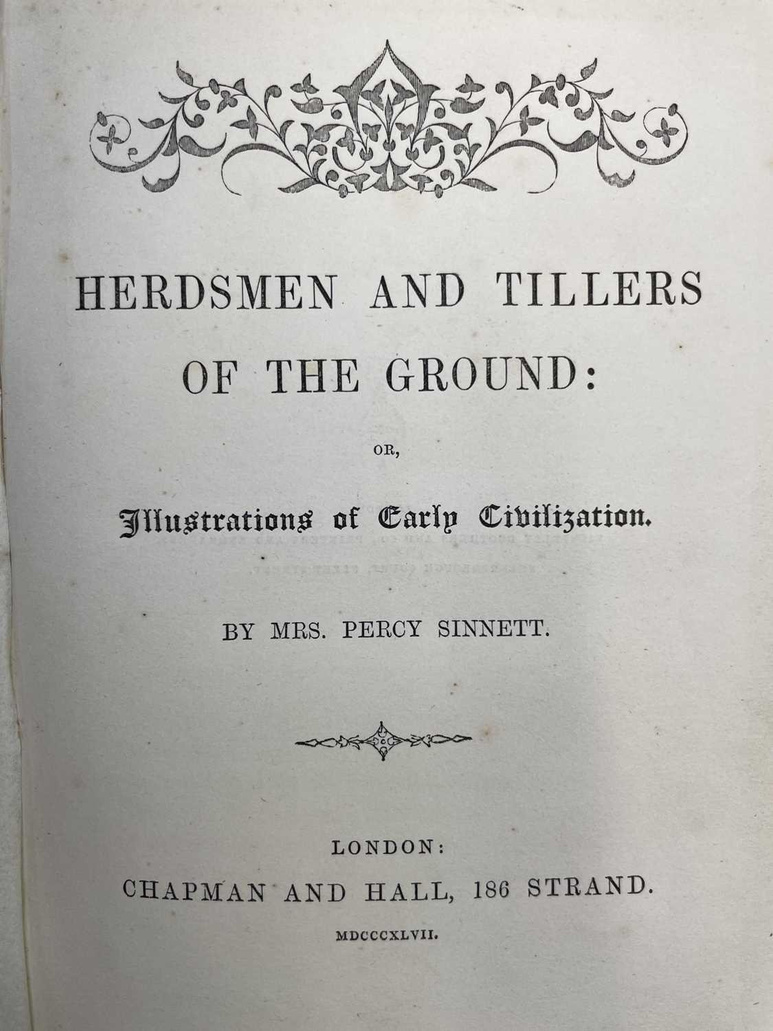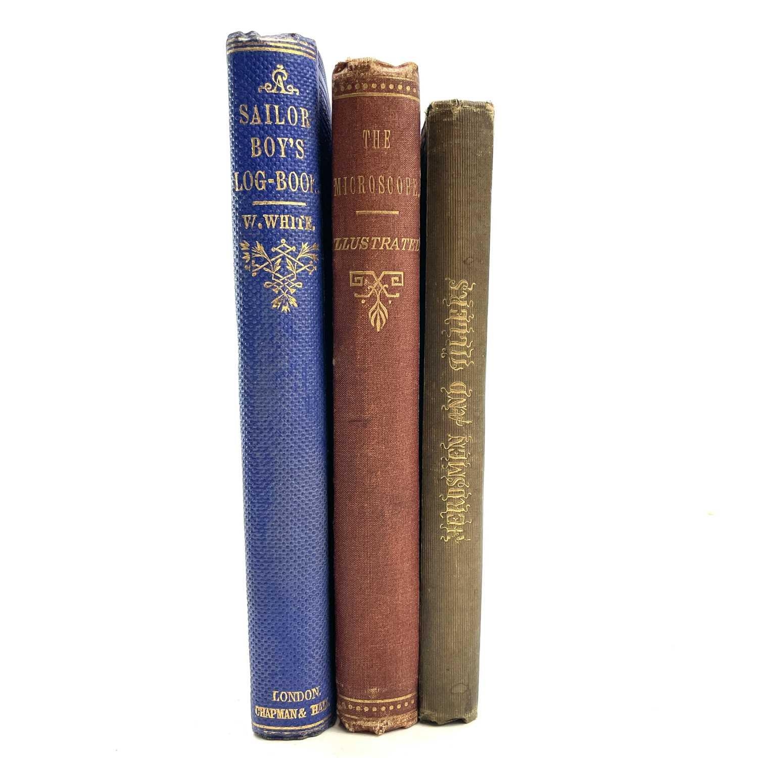 Mrs PERCY SINNETT. 'Herdsmen and Tillers of the Ground,' original cloth, hand coloured frontis engraving, hand coloured engravings complete, Chapman and Hall, 1847; WALTER WHITE. 'A Sailor-Boy's Log Book from Portsmouth to the Peiho,' original cloth, engraved frontis, Chapman And Hall, 1862; Hon Mrs WARD. 'The Microscope....,' fourth edition, original cloth, coloured illustrations, Groombridge and Sons, 1876. (3)