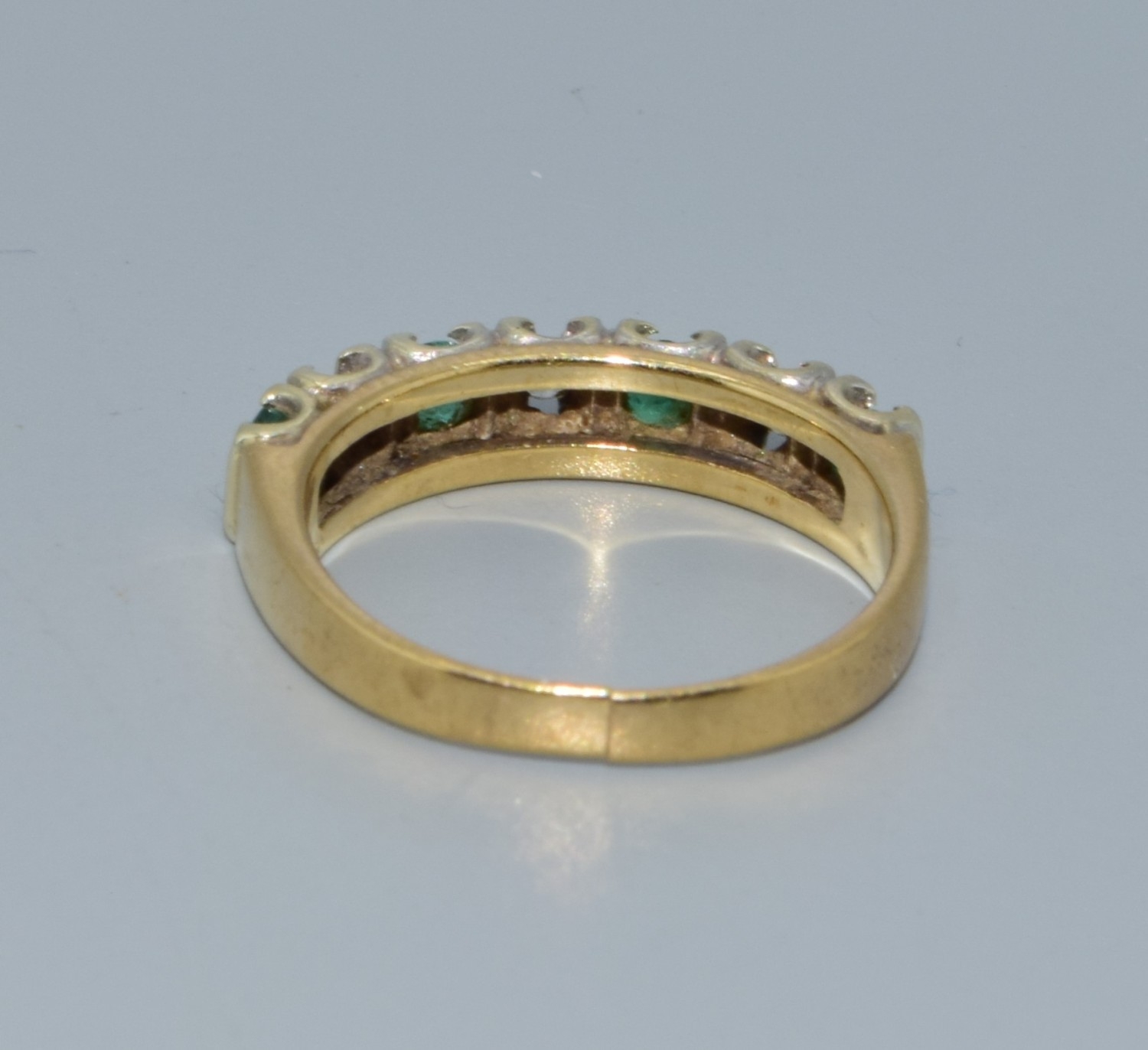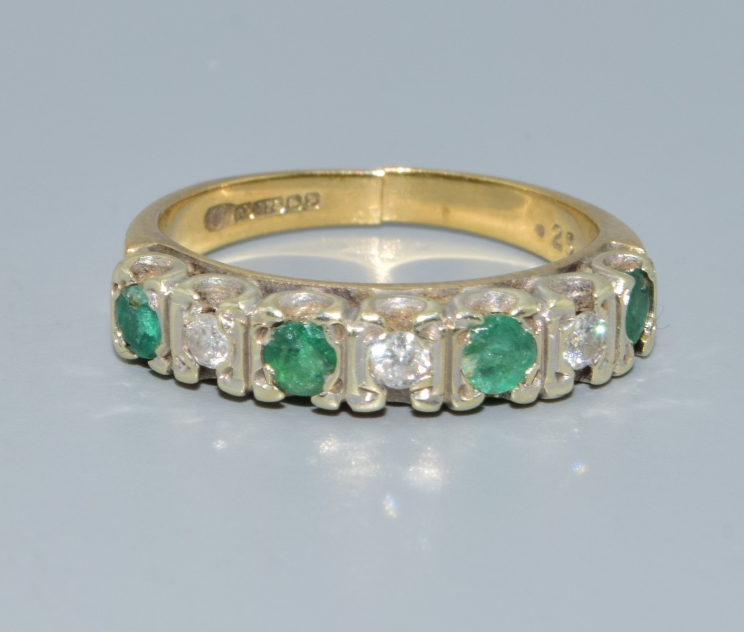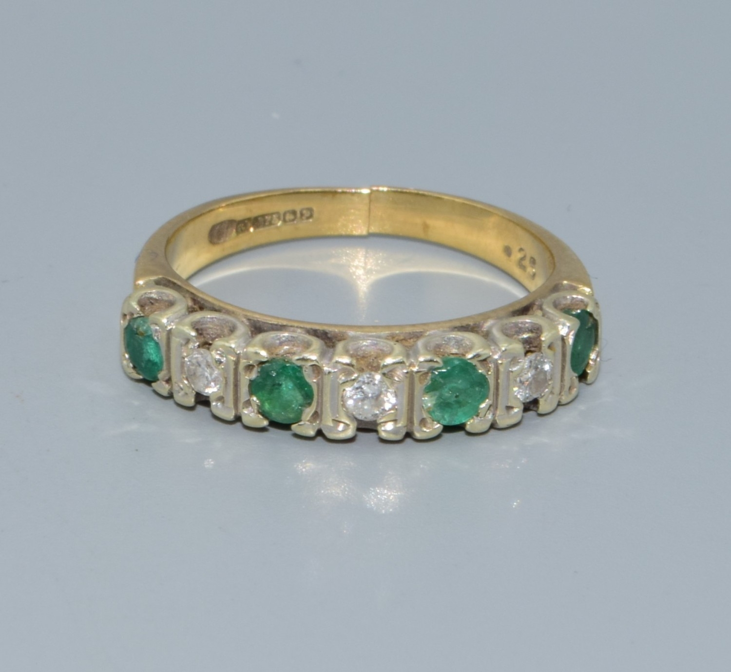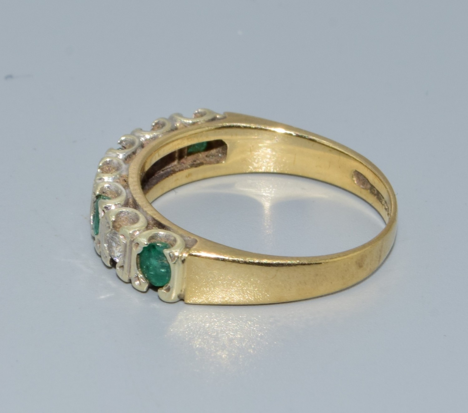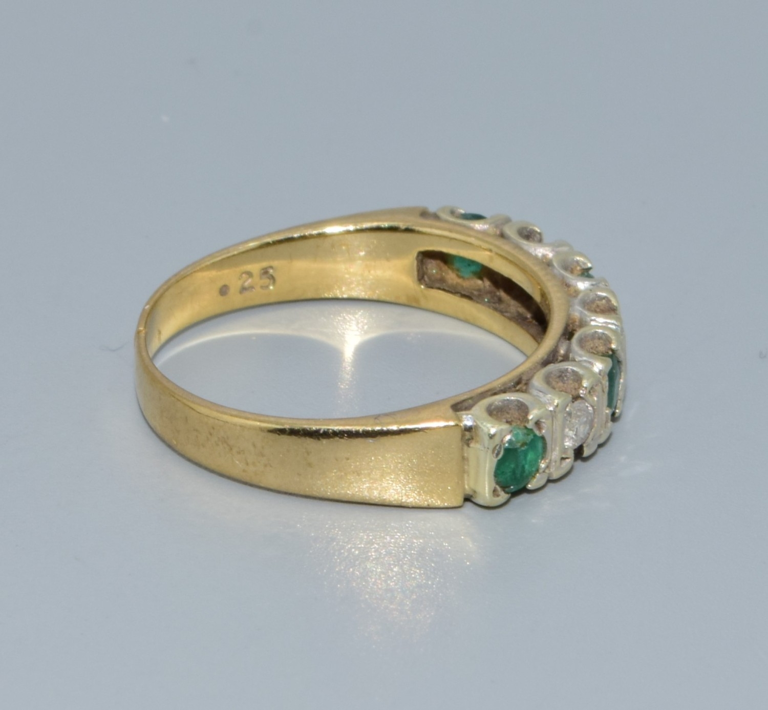 9ct gold ladies Diamond and Emerald 1/2 eternity ring hallmarked as 0.25ct size L been cut to resize
