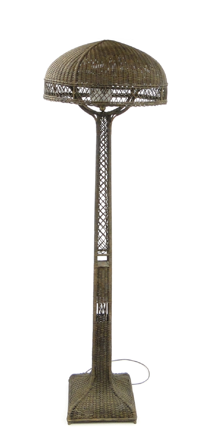 Liberty style wicker electric standard lamp with dome shade, 185cm high