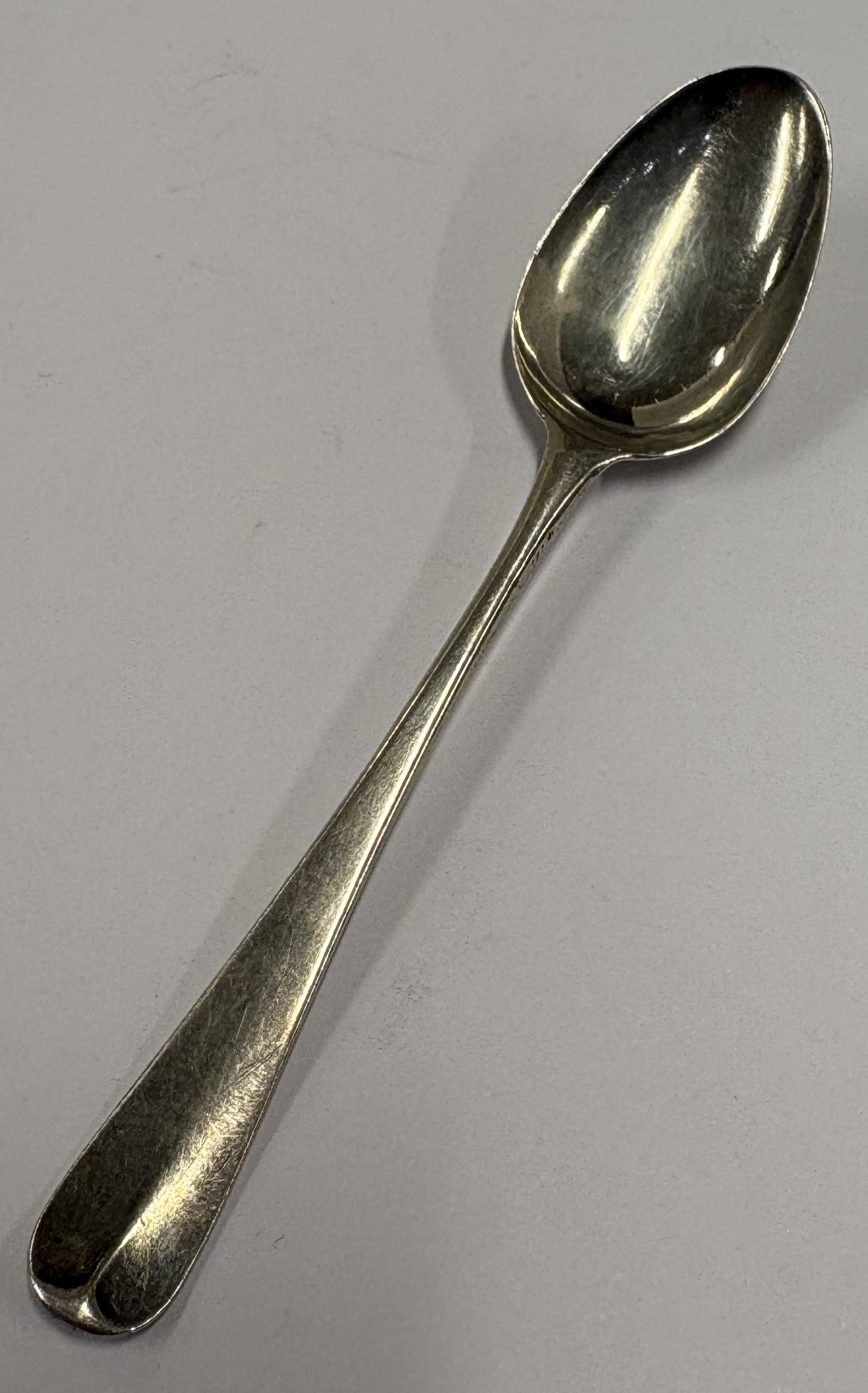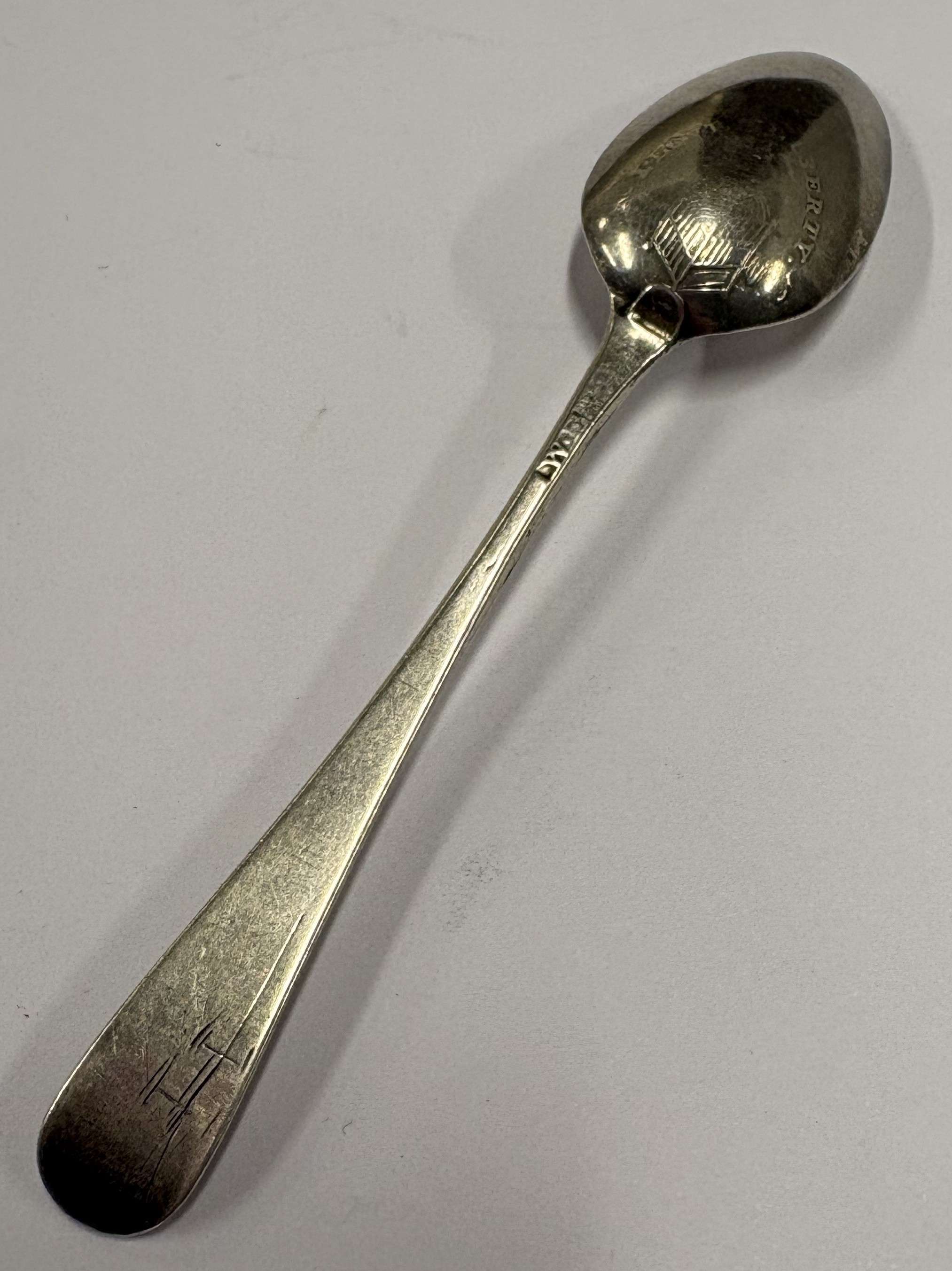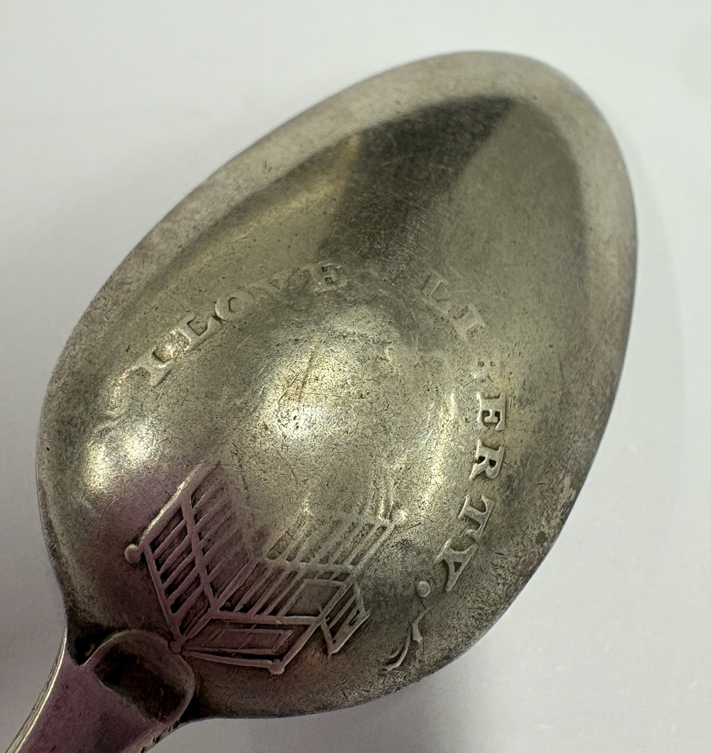 An 18th Century silver picture back spoon, embossed 'I Love Liberty'. Circa 1770. Approx. 12 grams. Est. £40 - £60.