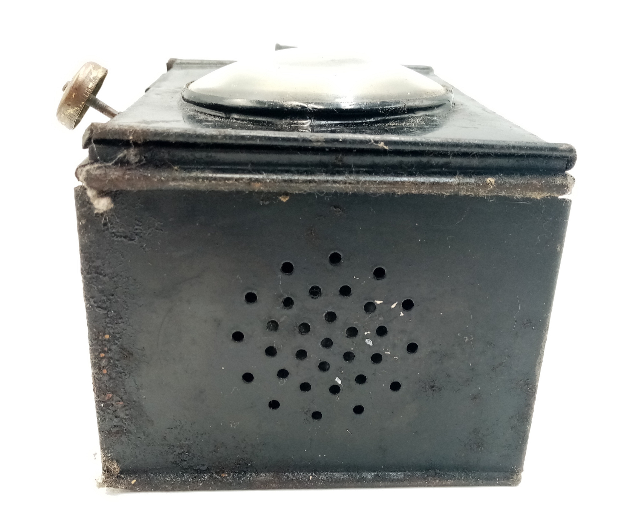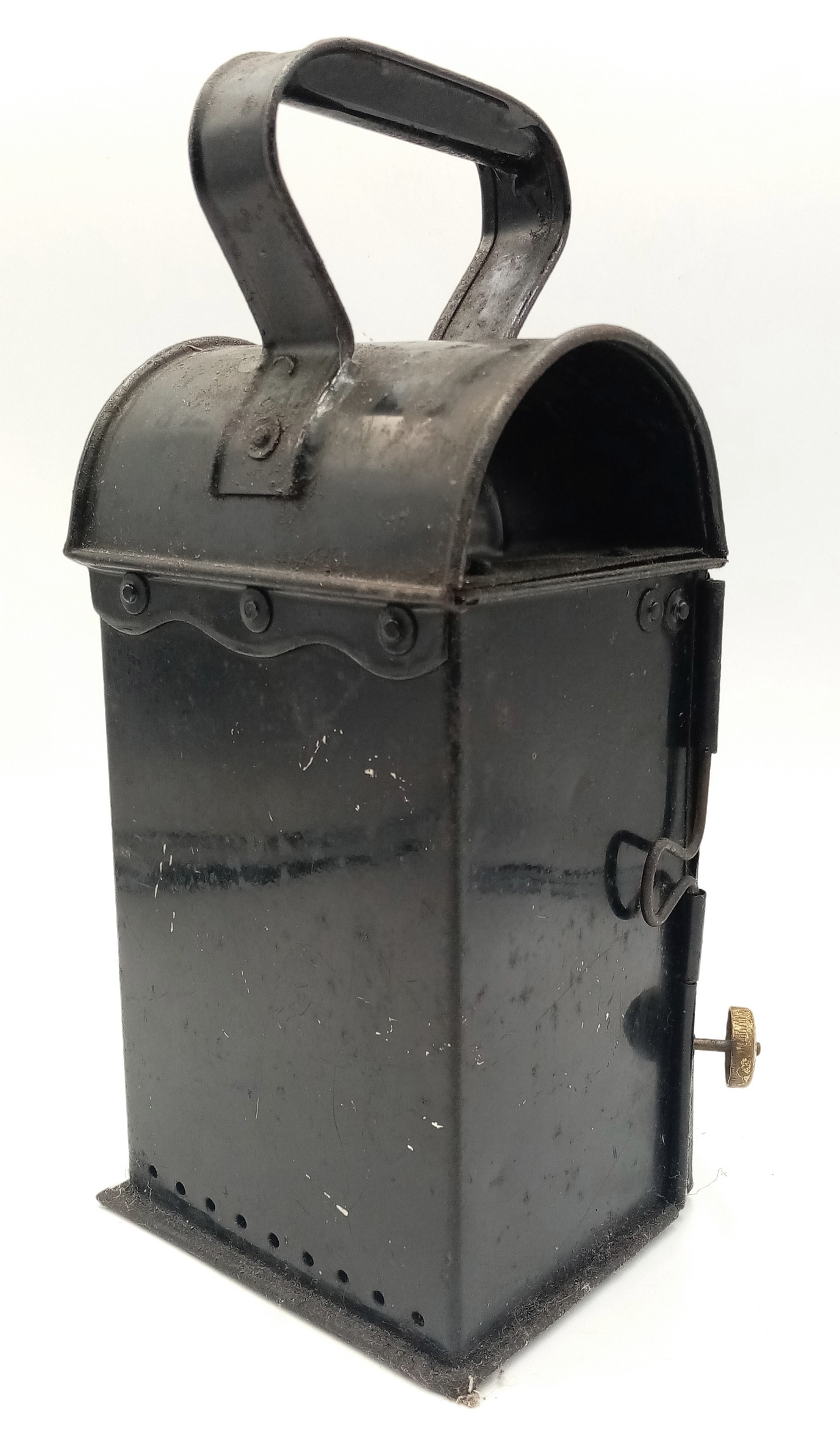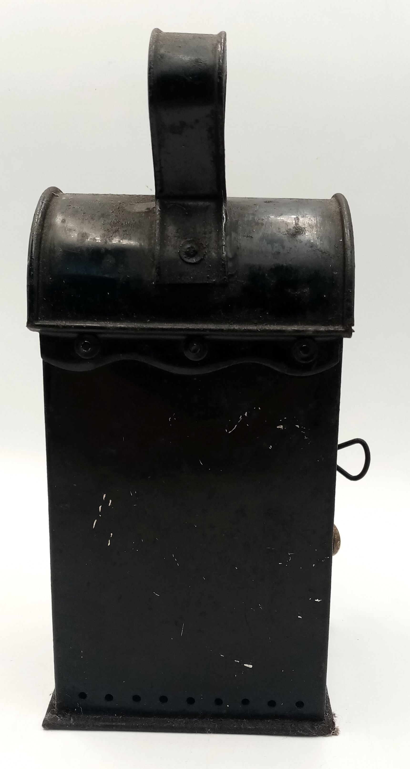 A WW2 Period (1940’s) Metal Railway Lamp. 25cm Tall. 11cm Wide. A true vintage piece, ideal for WW2 or Railway Collectors and could also be upcycled to a modern lamp.